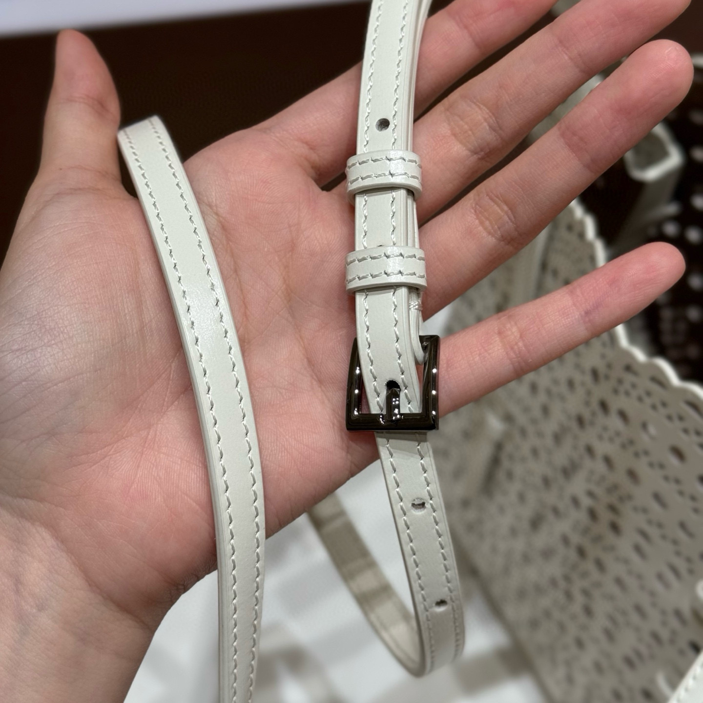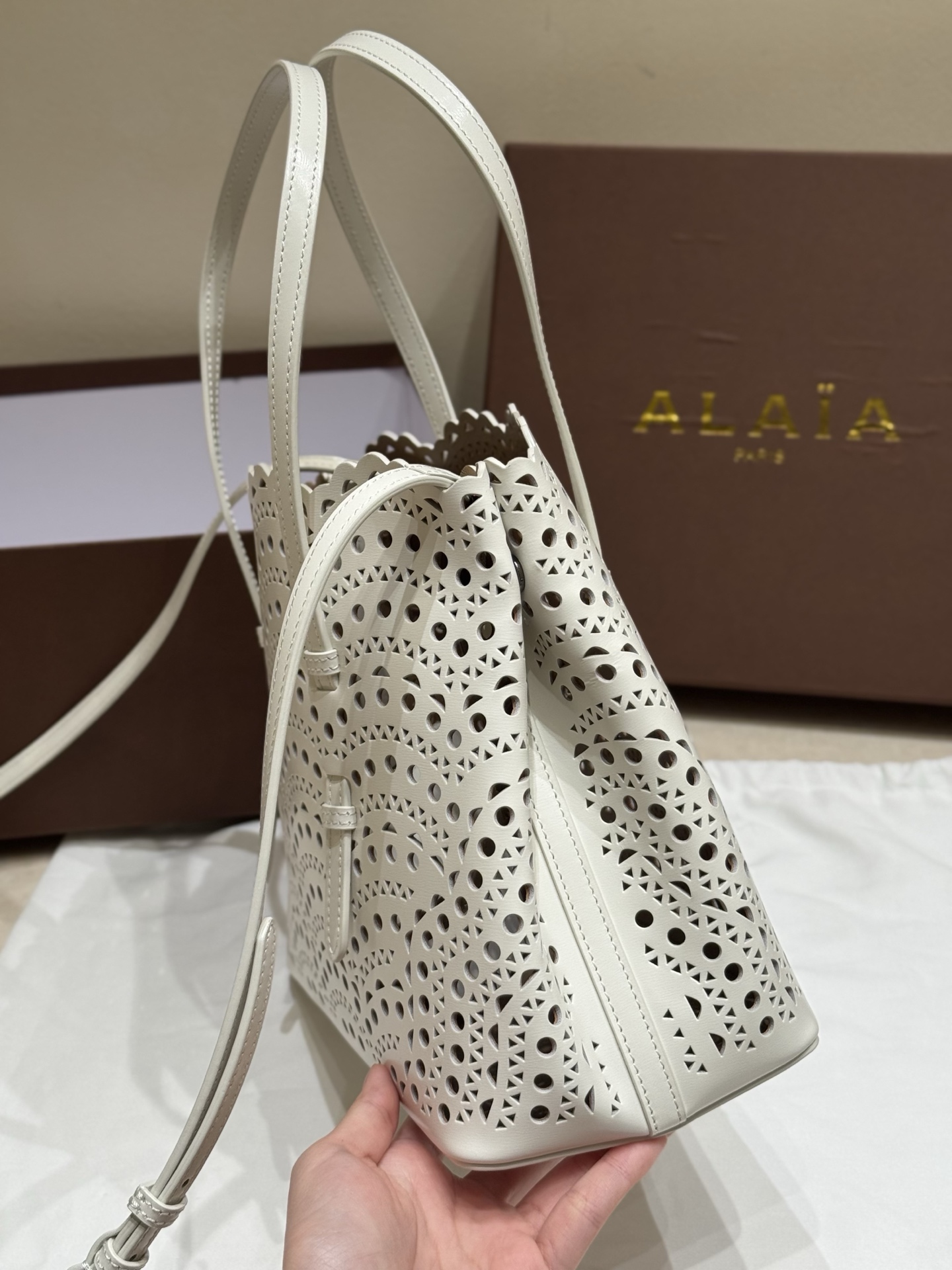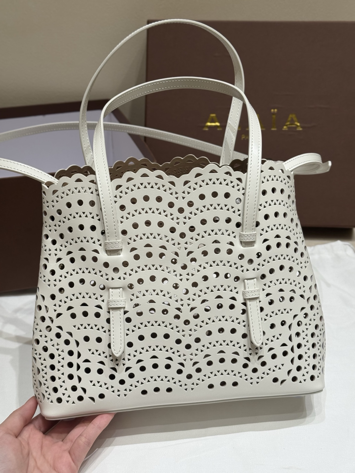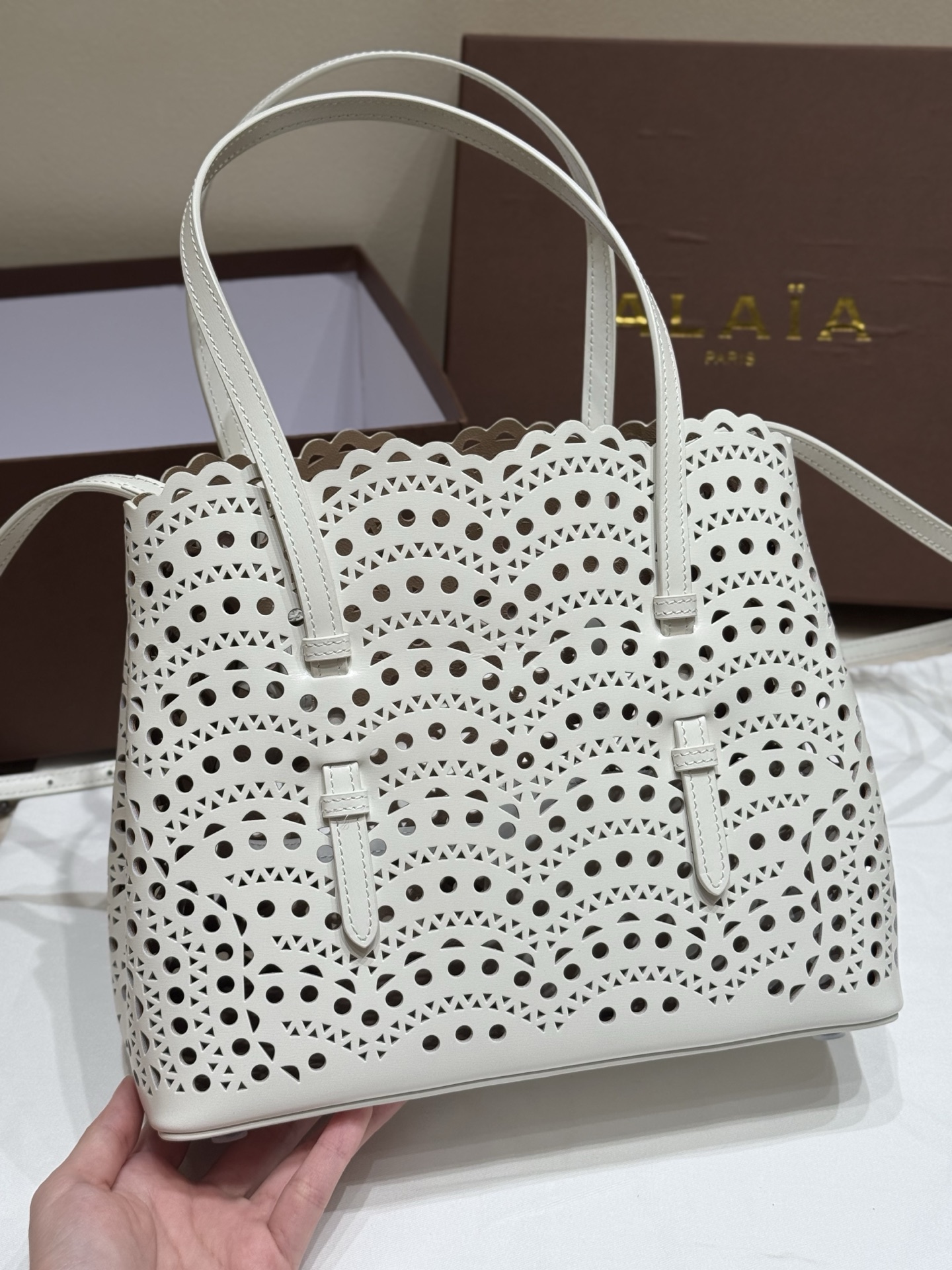 NIGO Alaia MINA 20 BAG IN VIENNE WAVE CALFSKIN Women's Solid Color Openwork Design Button Closure Wave Calfskin Shoulder Bag Handbag Bags #nigo77381