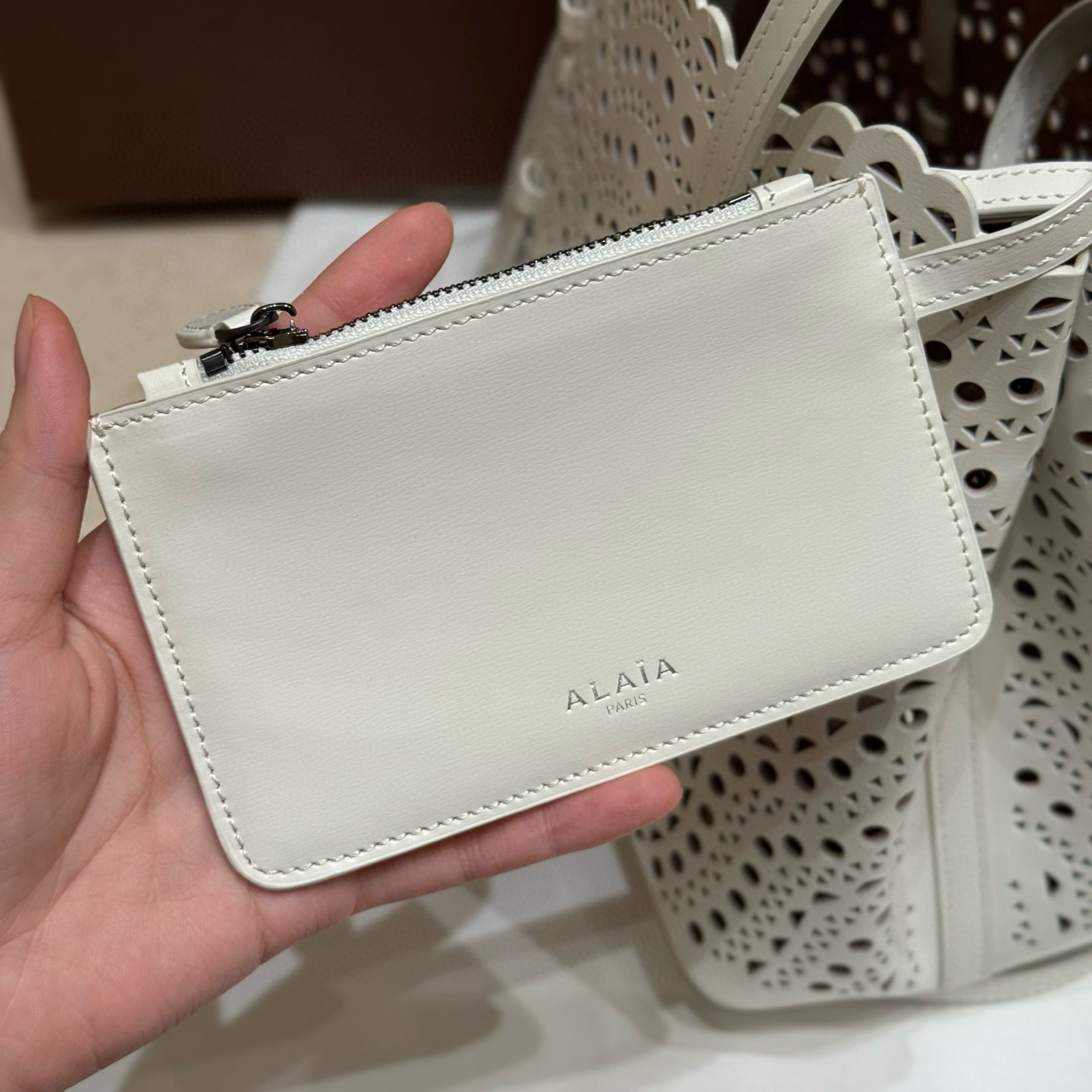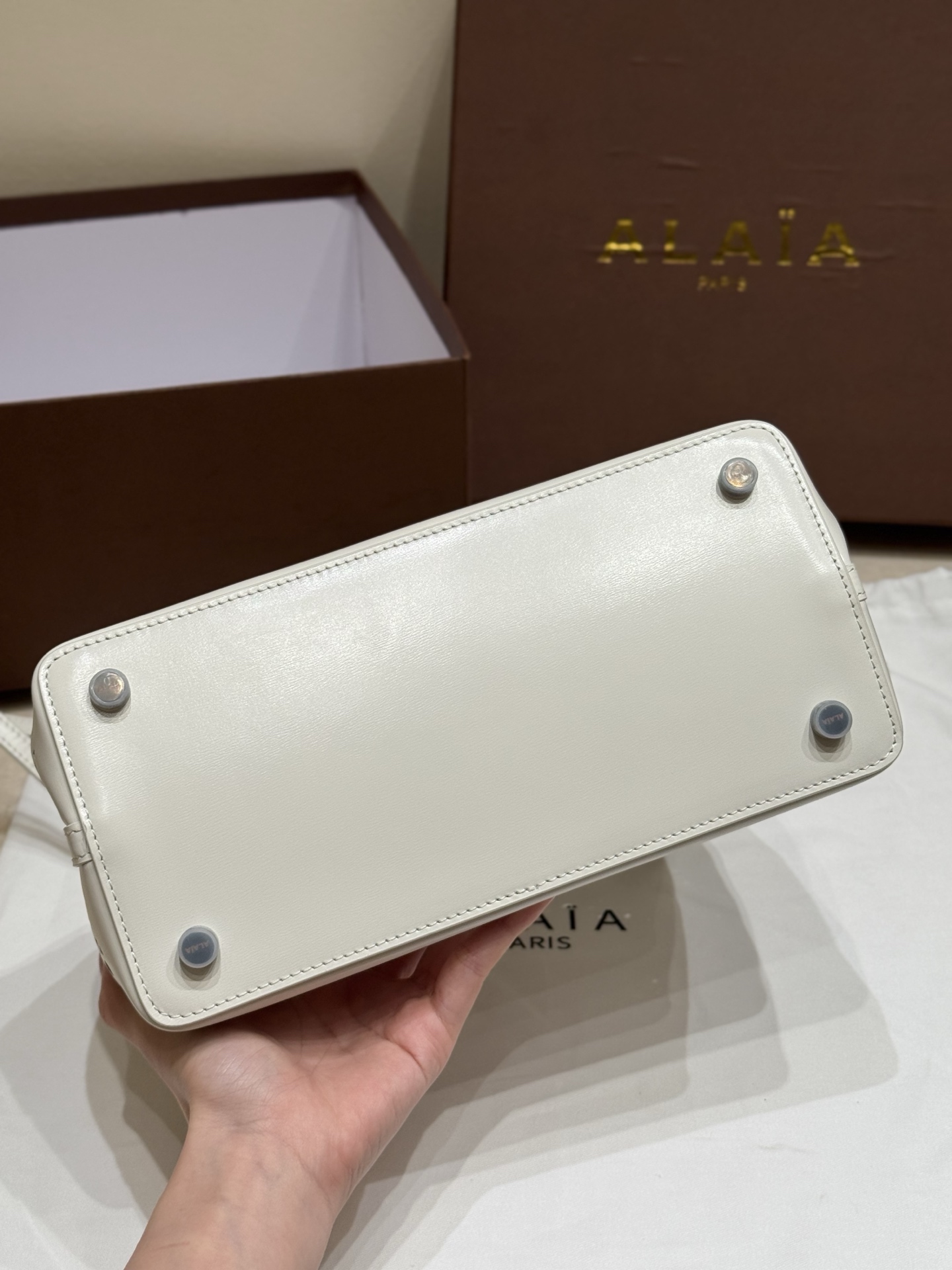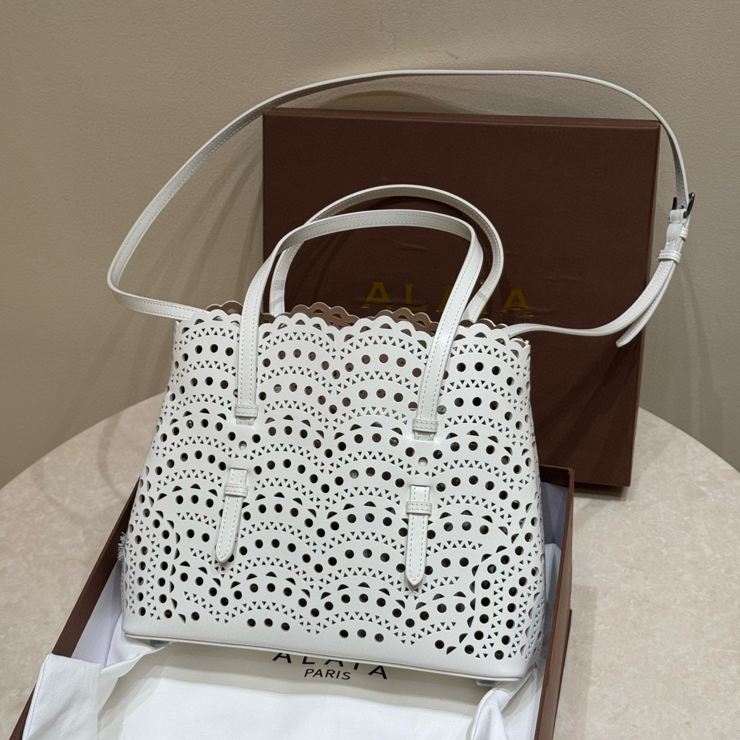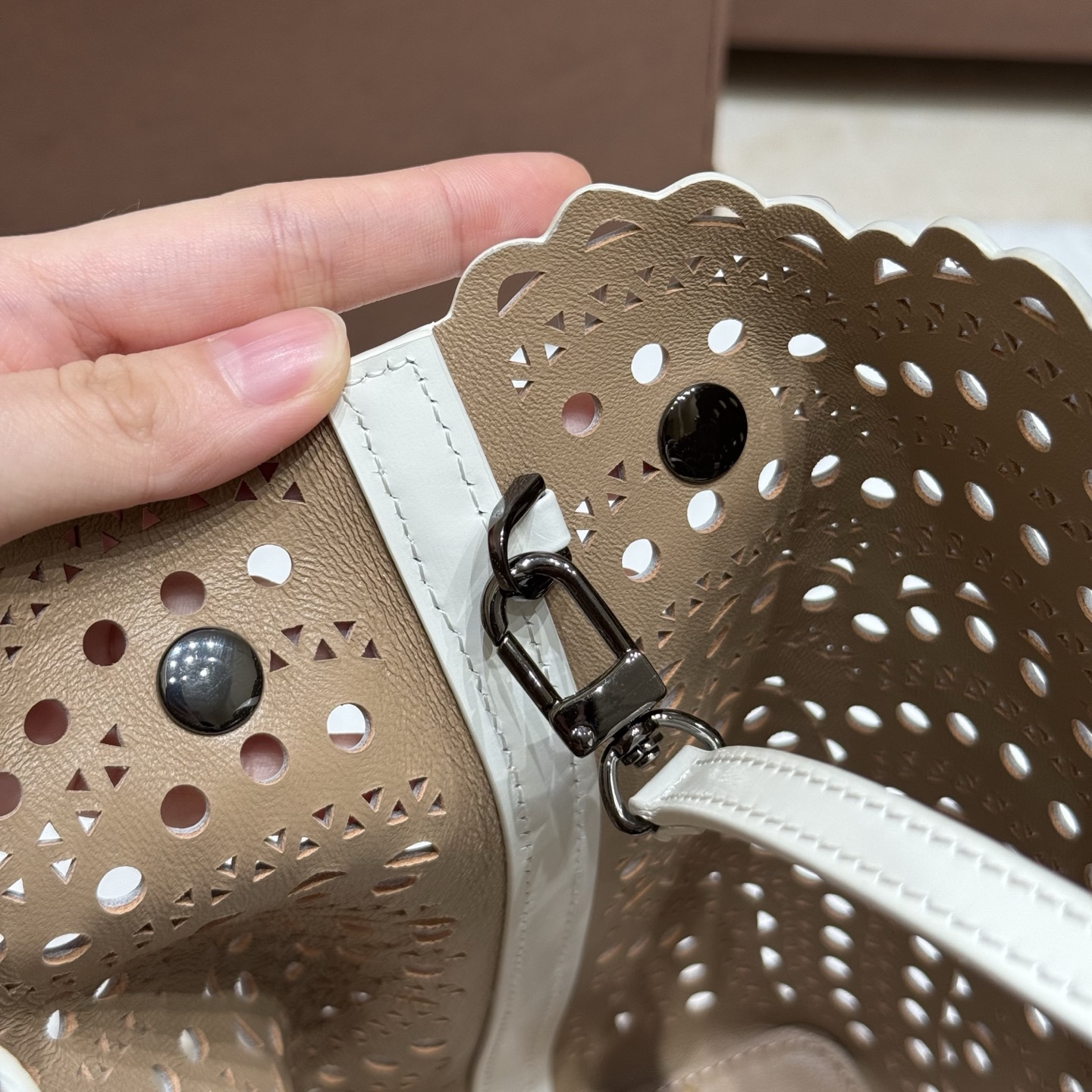 NIGO Alaia MINA 20 BAG IN VIENNE WAVE CALFSKIN Women's Solid Color Openwork Design Button Closure Wave Calfskin Shoulder Bag Handbag Bags #nigo77381