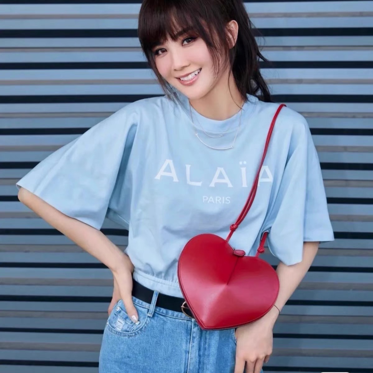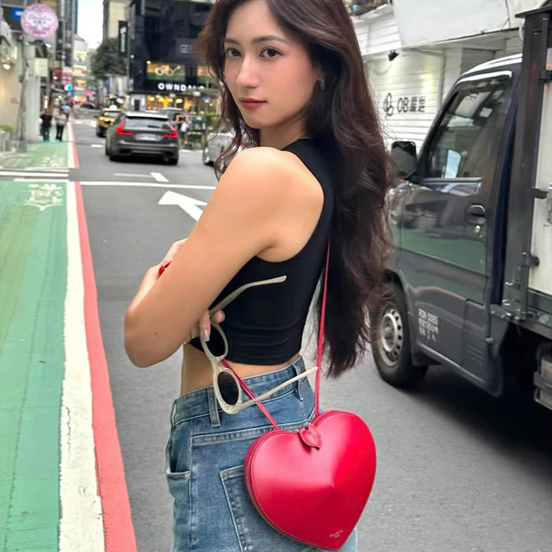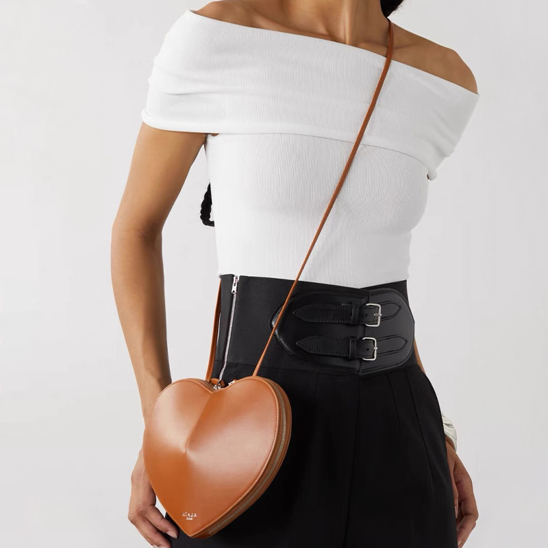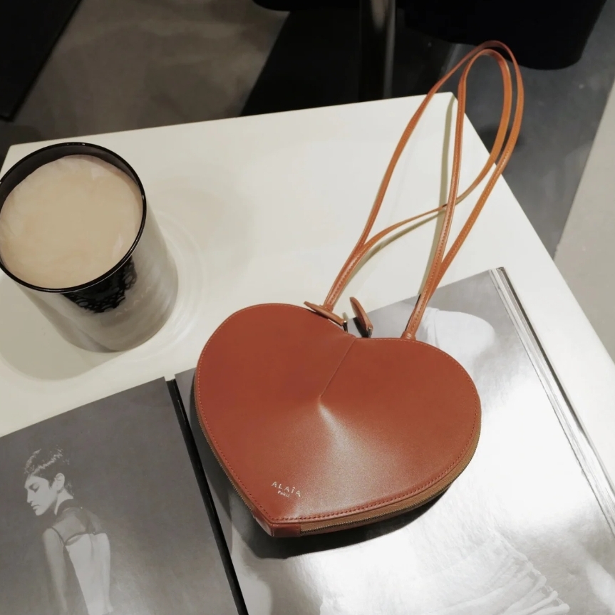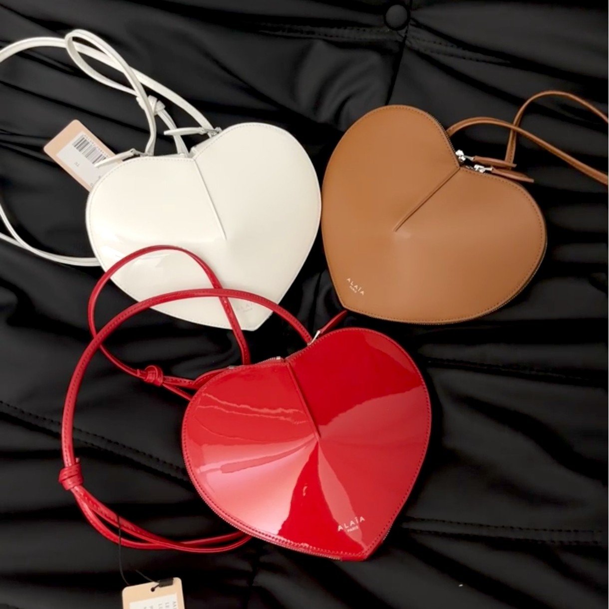NIGO Alaia Women's Coeur Logo Printed Solid Color Zipper Closure Adjustable Shoulder Strap Leather Three-Dimensional Love Handbag Casual Shoulder Crossbody Bag Ngvp #nigo8331