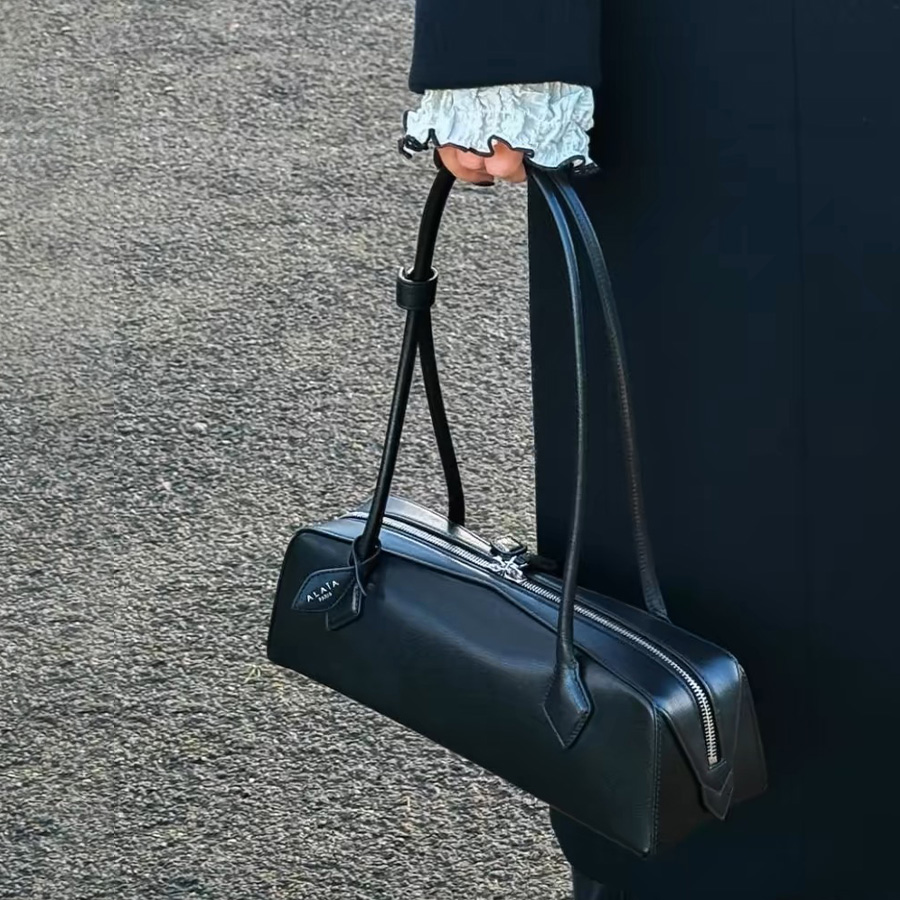 NIGO Alaia Women's Le-Teckel Goatskin Long Handle Handbag Solid Color Zipper Casual Shoulder Bag Ngvp #nigo8478