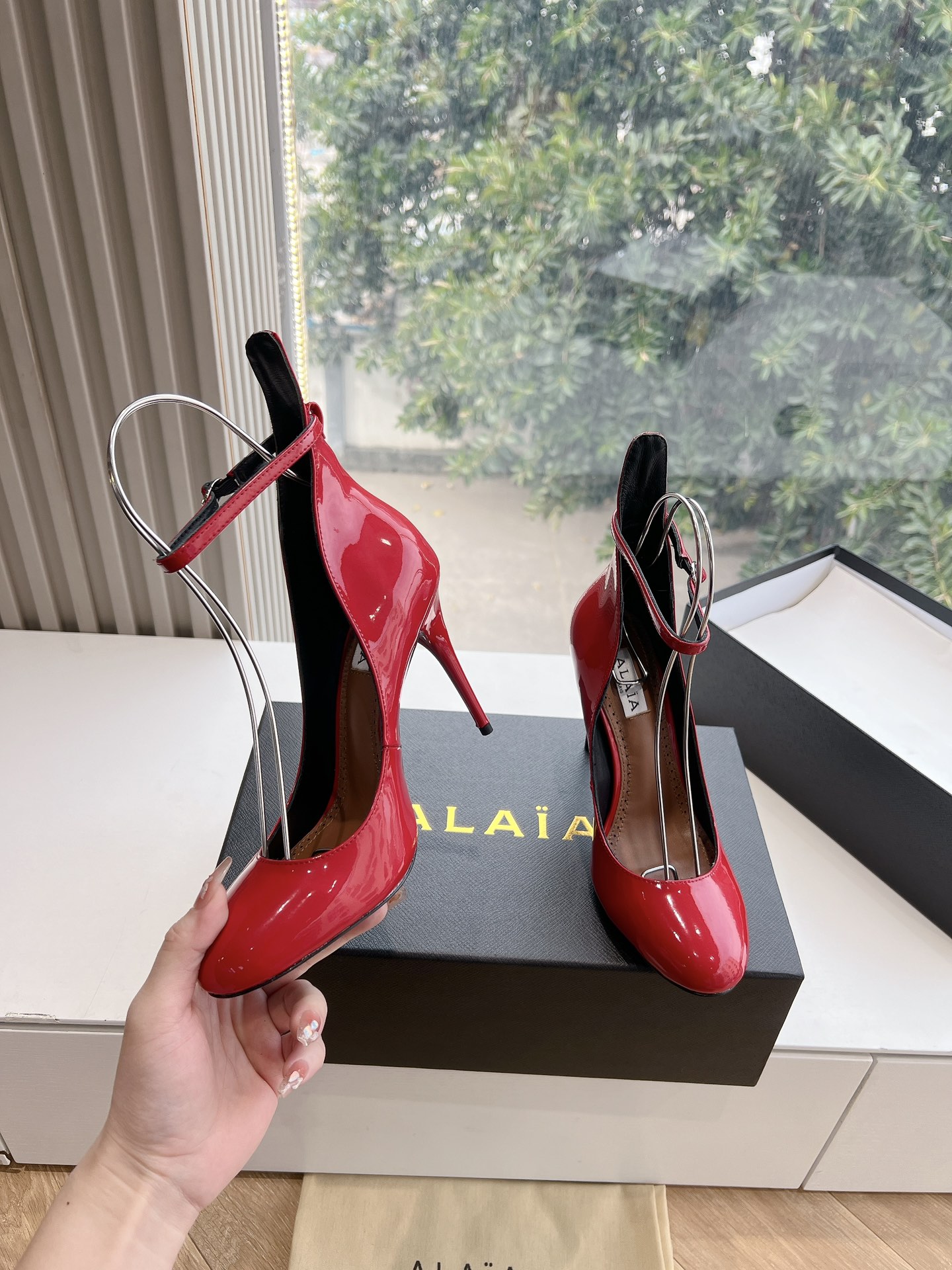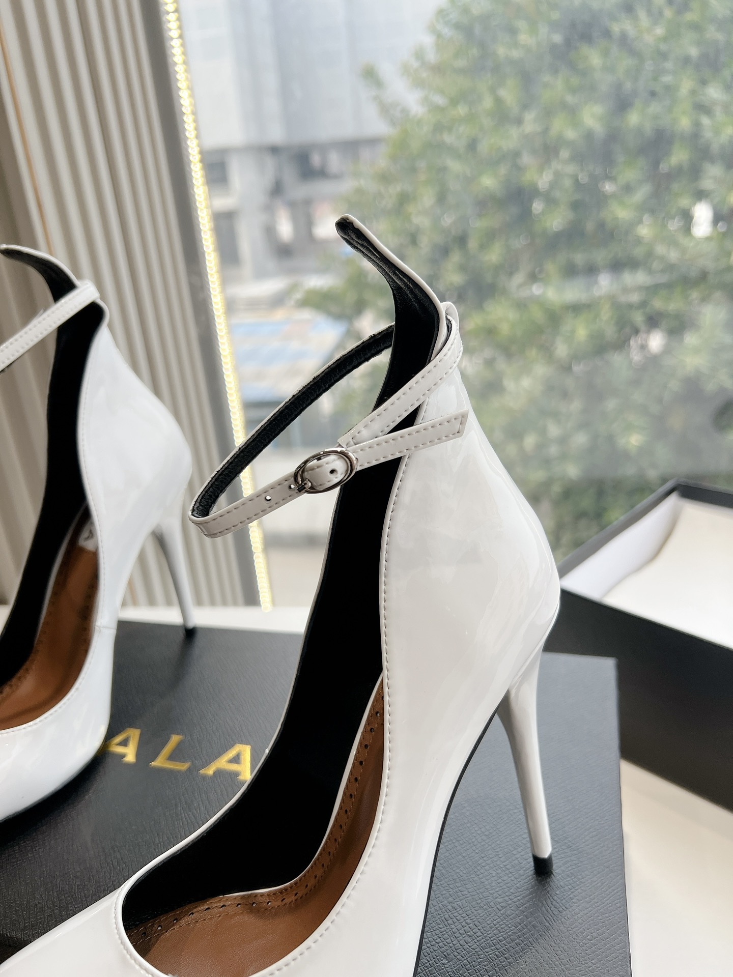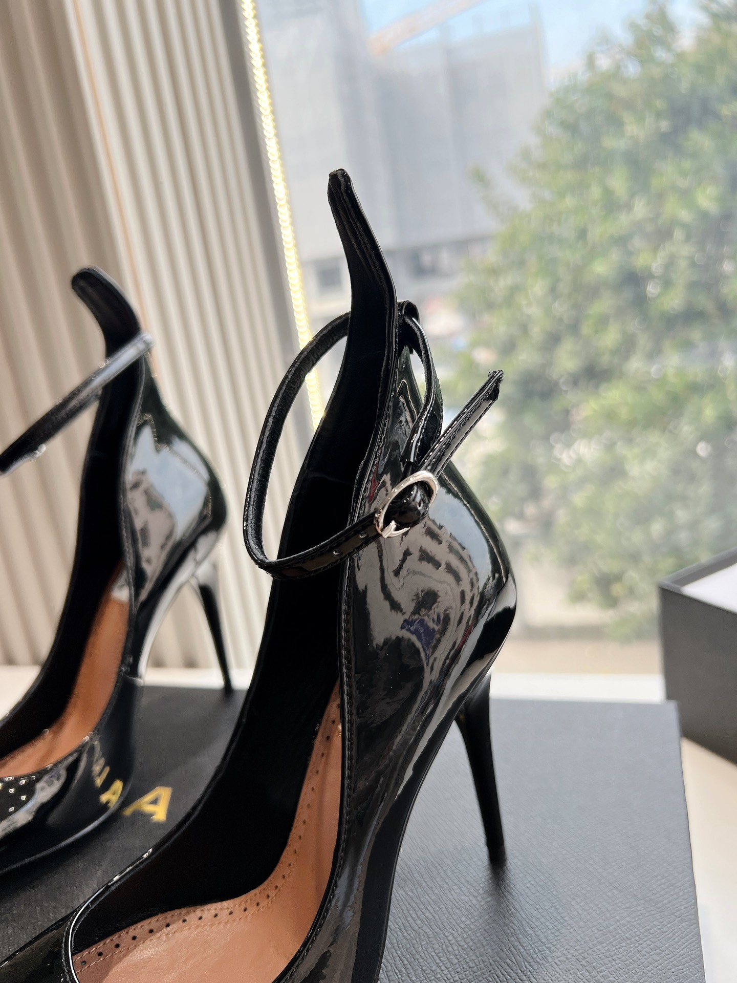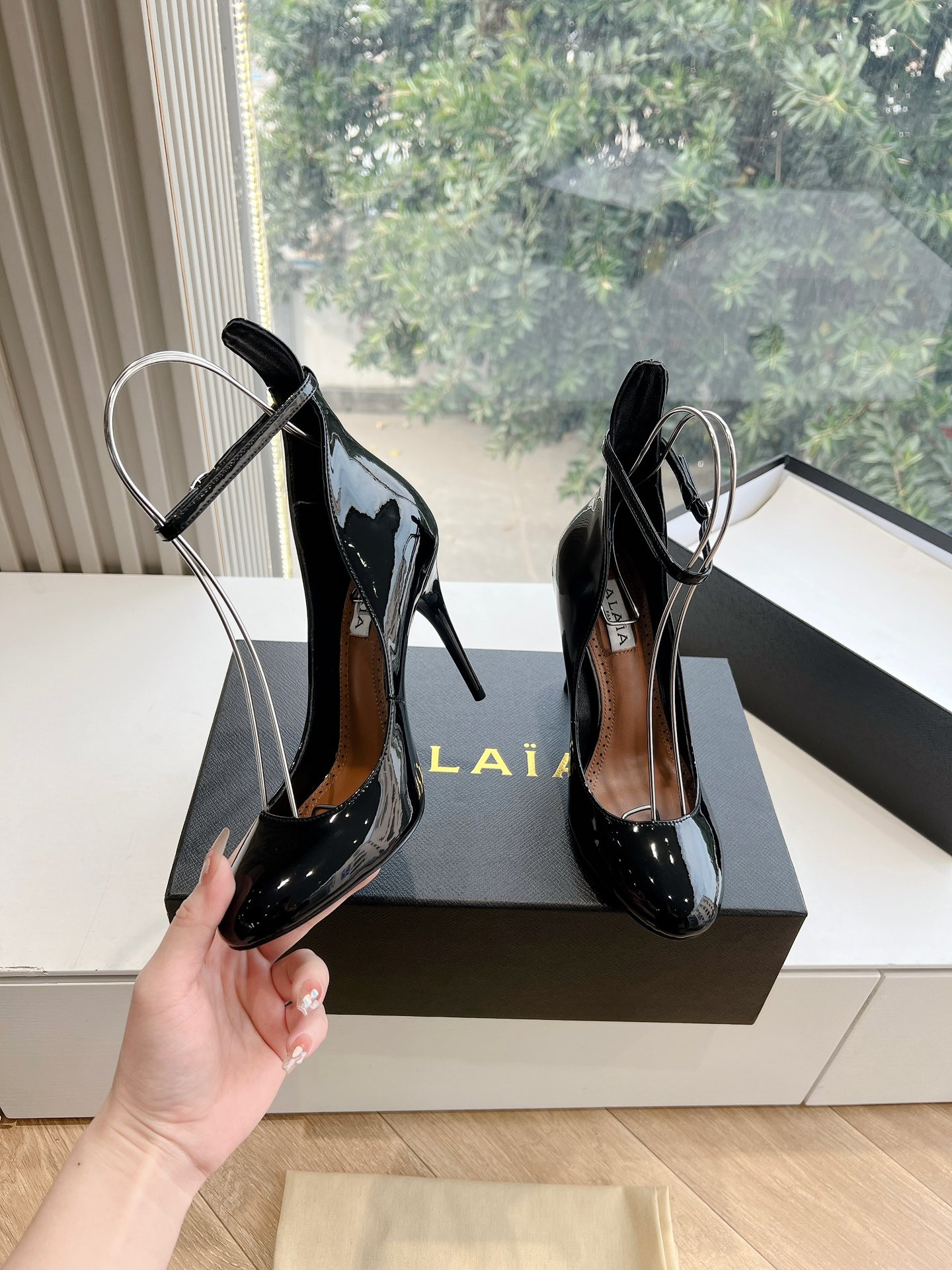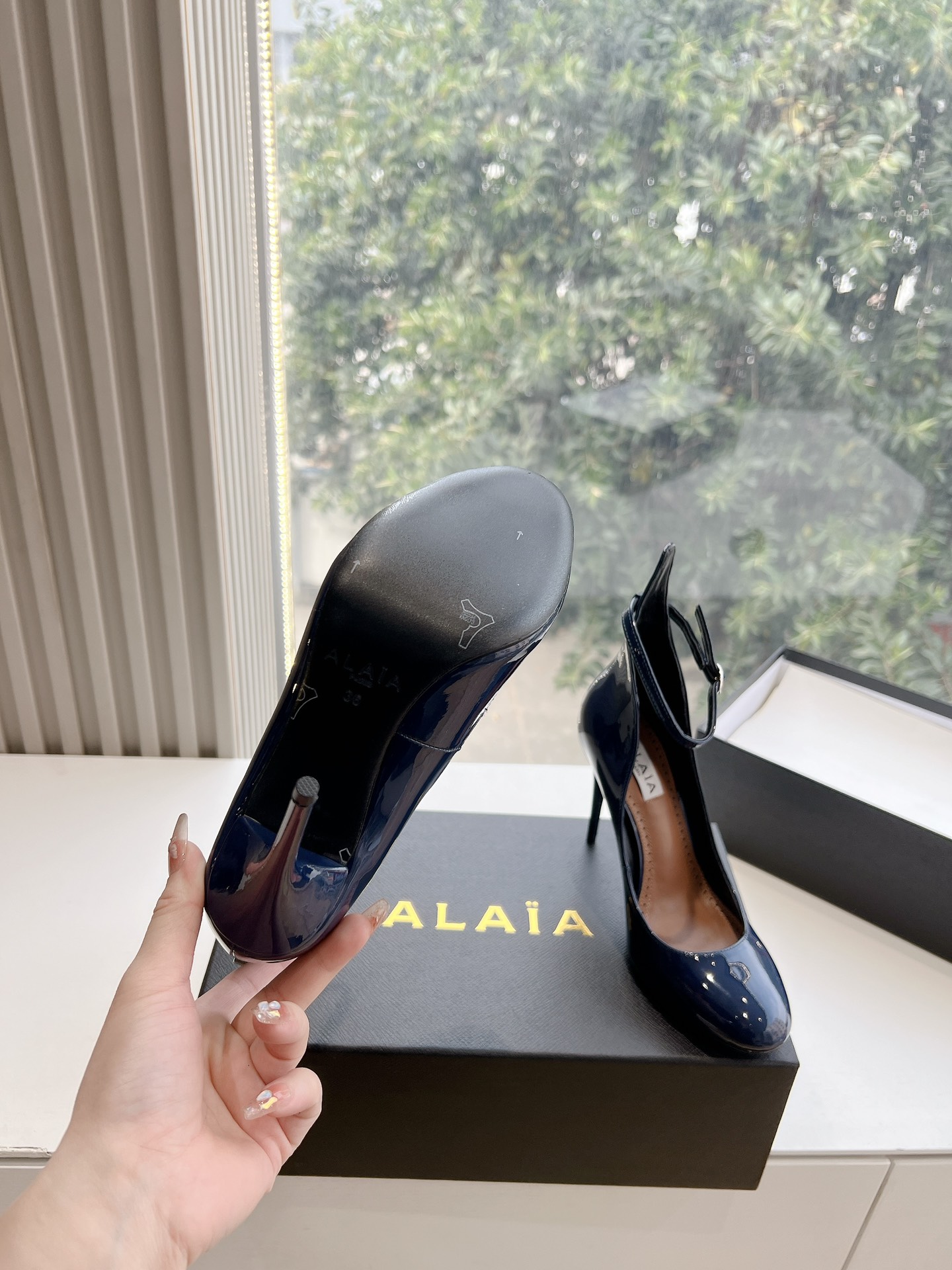 NIGO Alaia Women's Spring And Summer Glossy Sheepskin Buckle Casual Solid Color Fine Heel High Heel Shoes #nigo75572