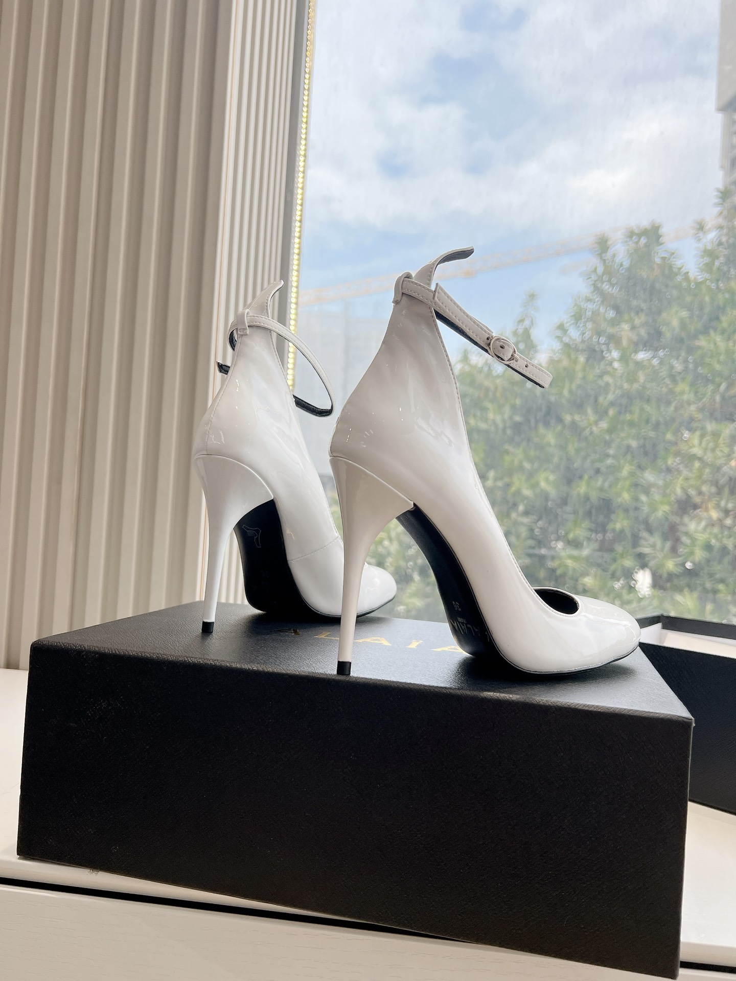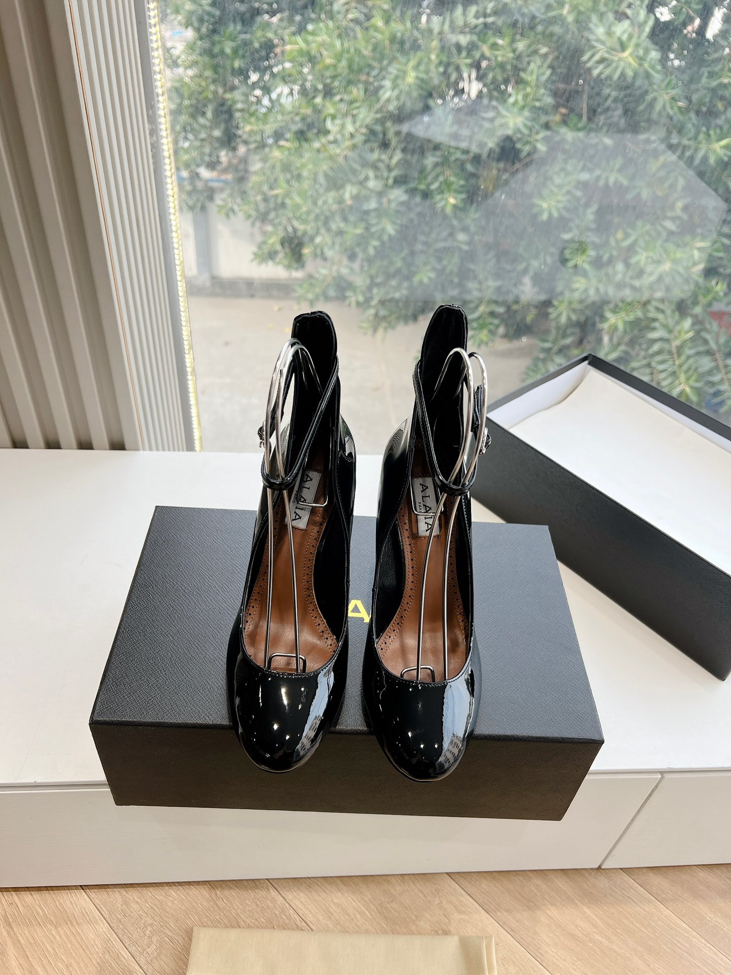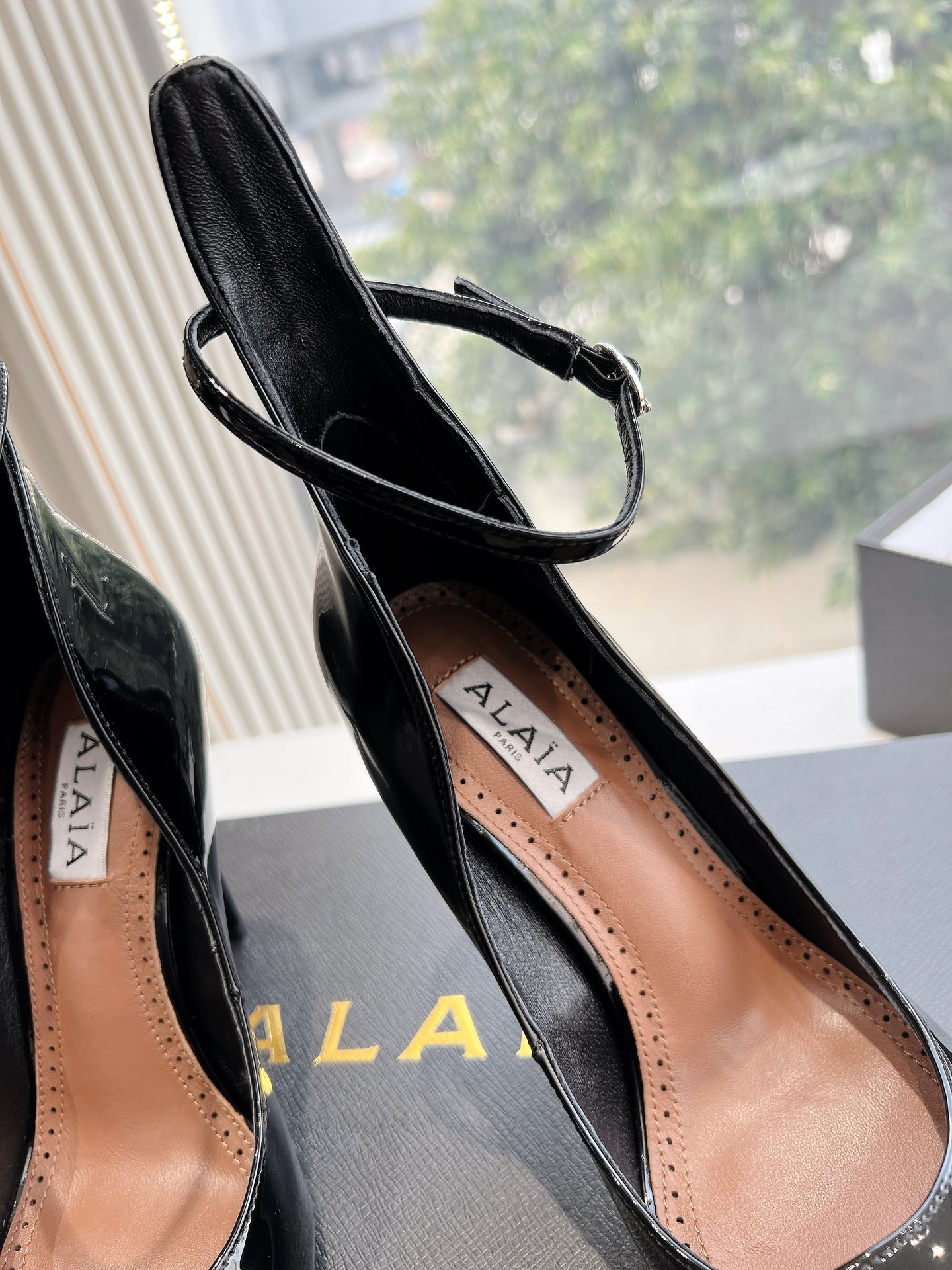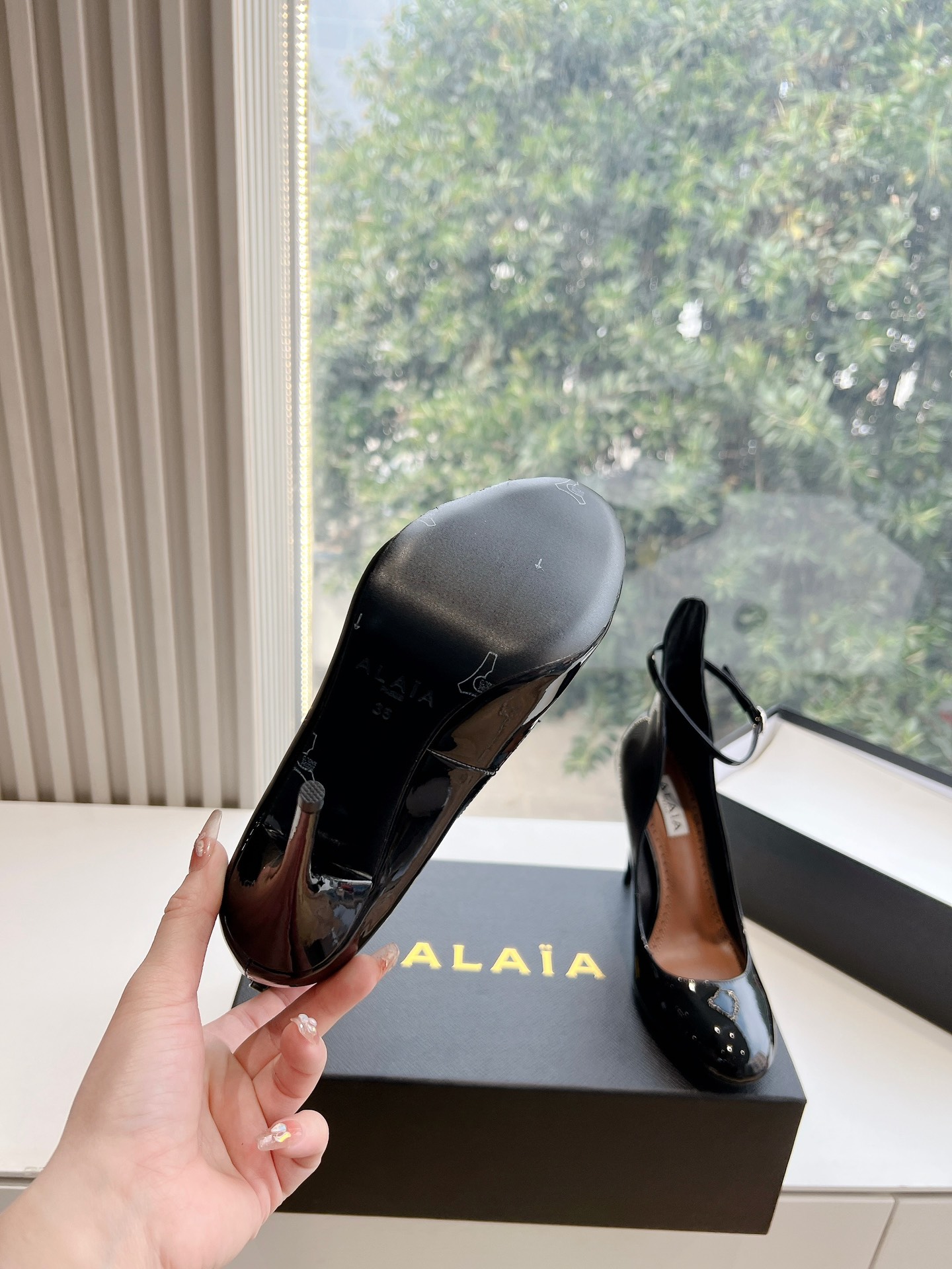 NIGO Alaia Women's Spring And Summer Glossy Sheepskin Buckle Casual Solid Color Fine Heel High Heel Shoes #nigo75572