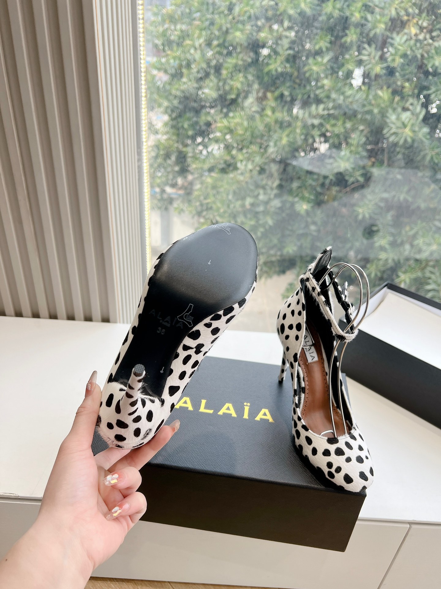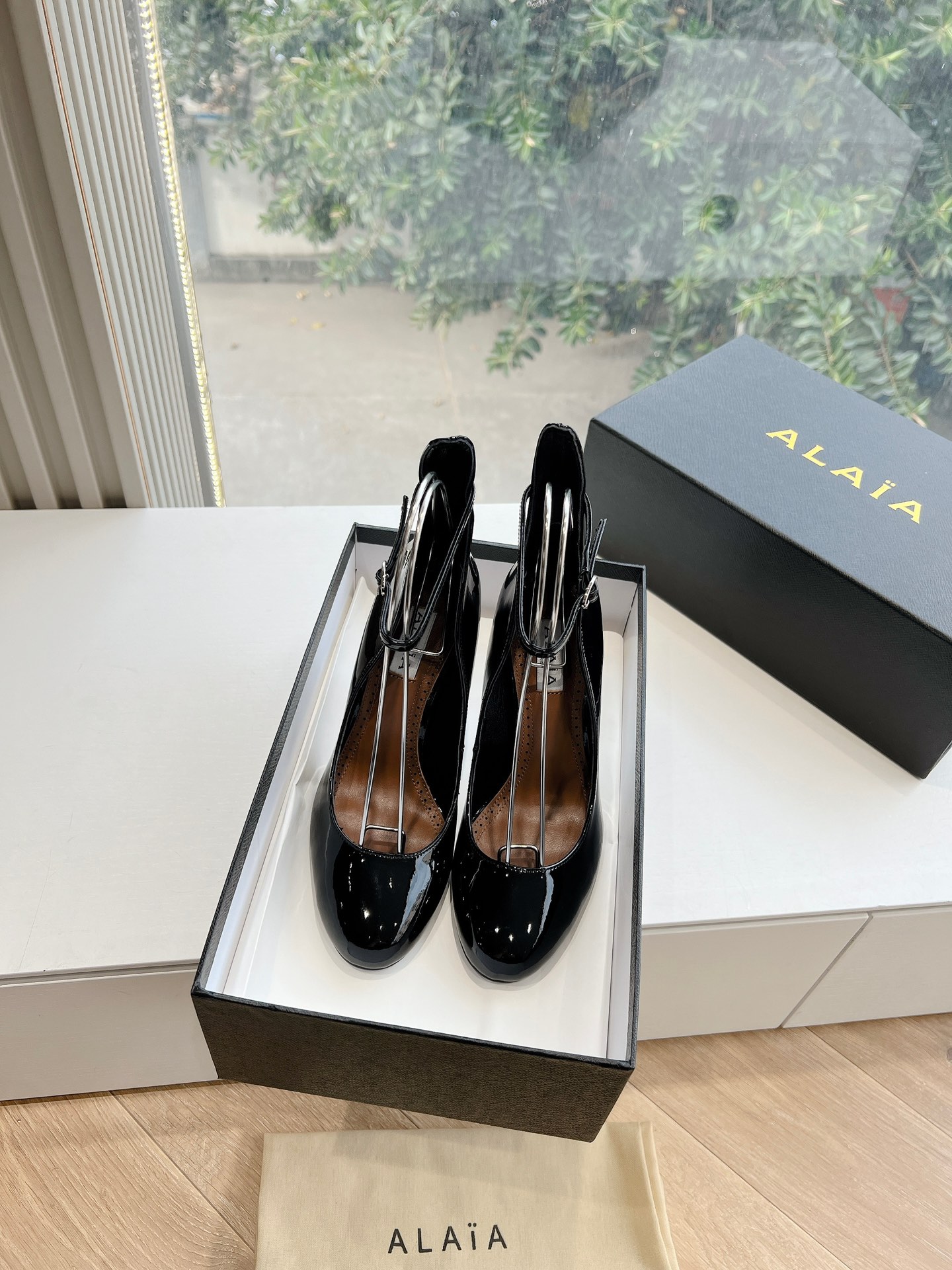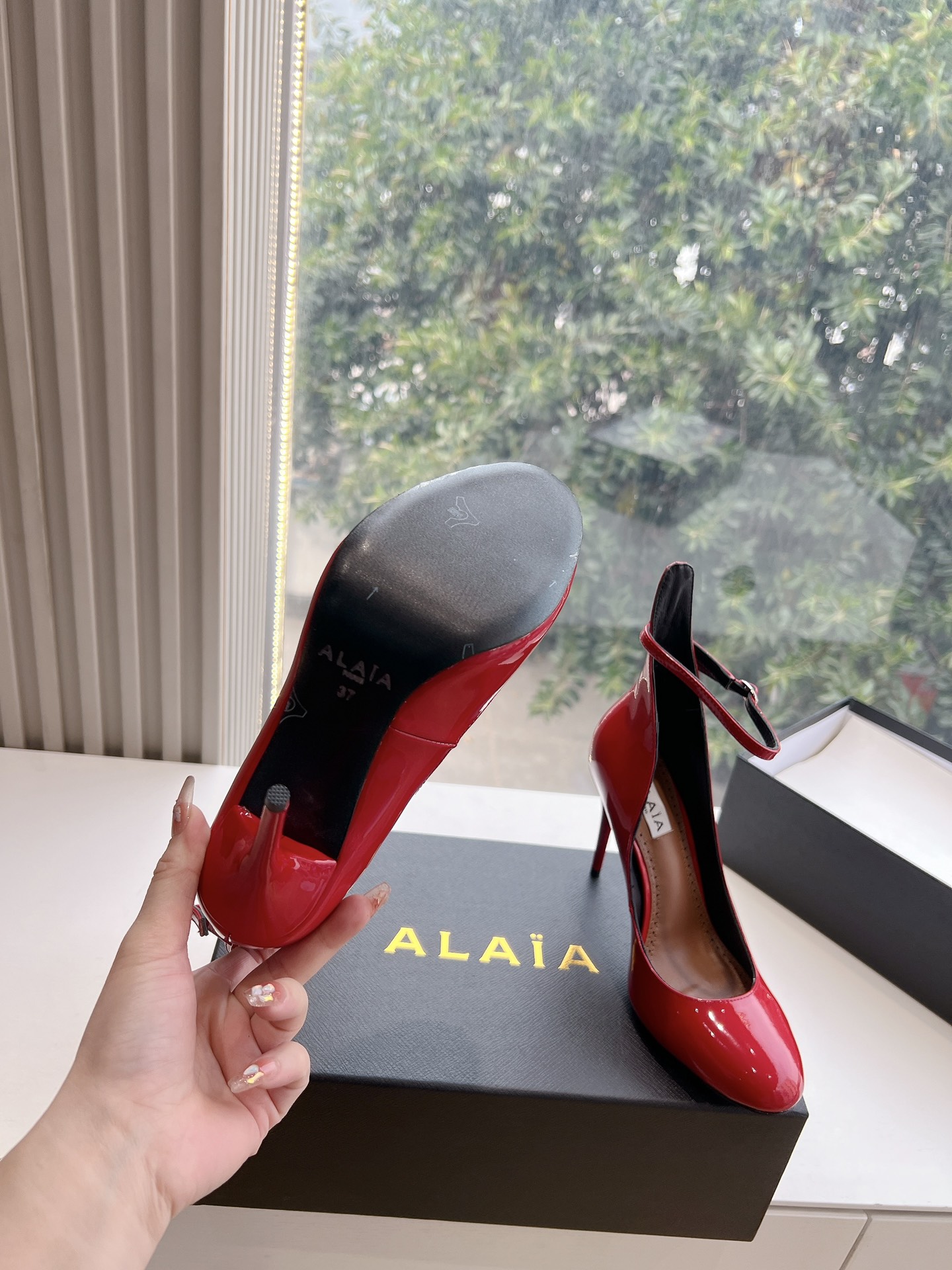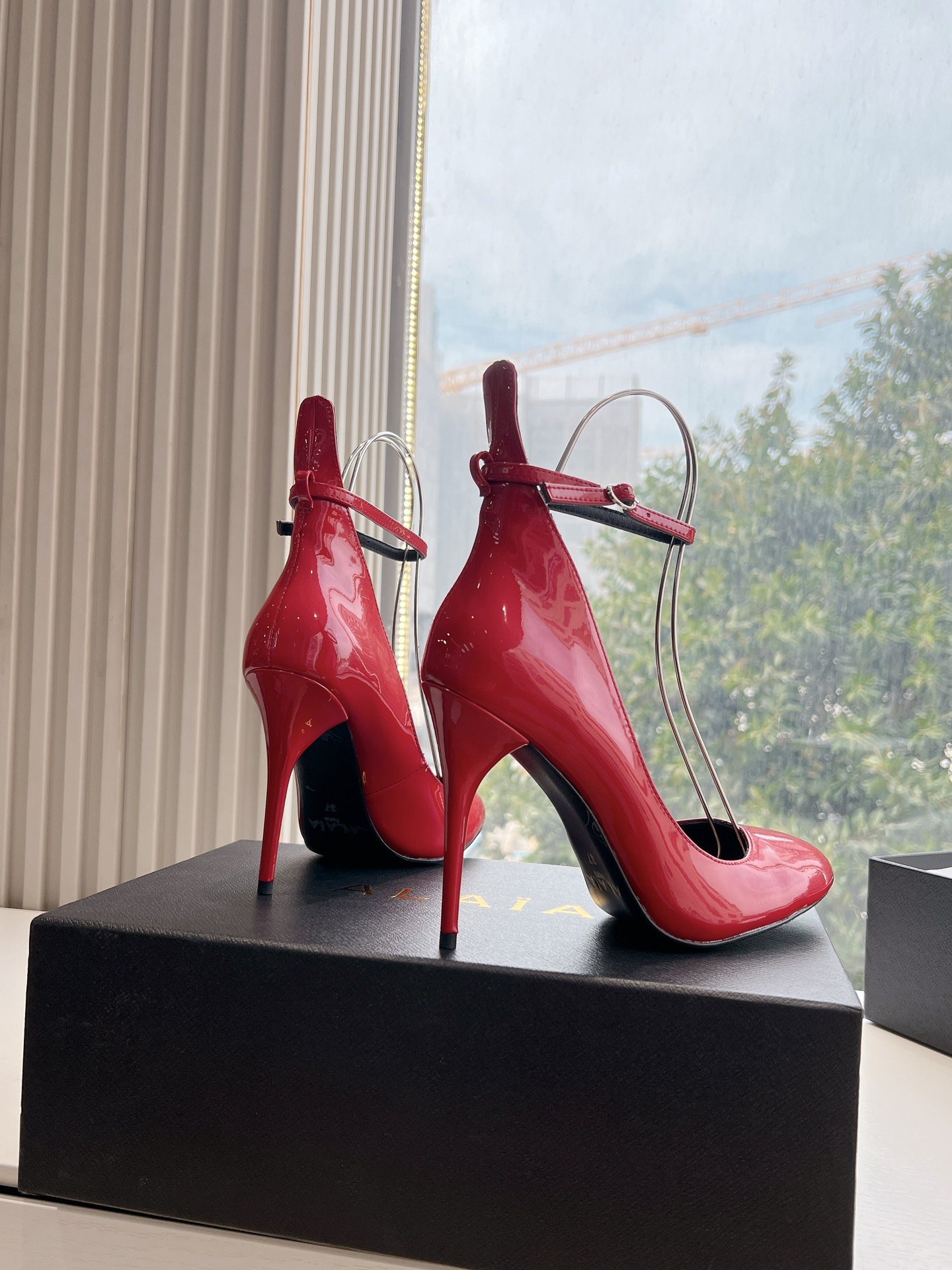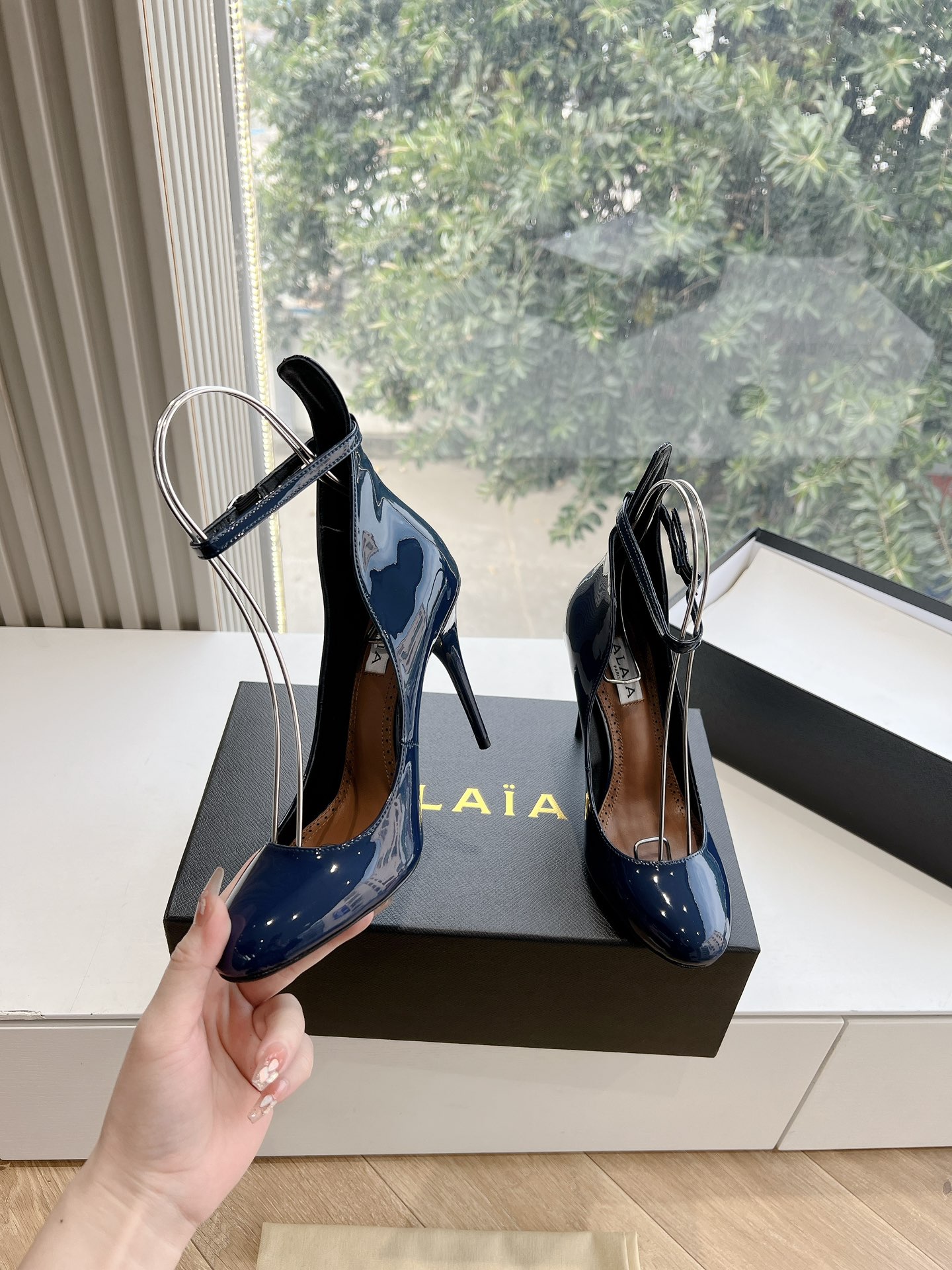 NIGO Alaia Women's Spring And Summer Glossy Sheepskin Buckle Casual Solid Color Fine Heel High Heel Shoes #nigo75572