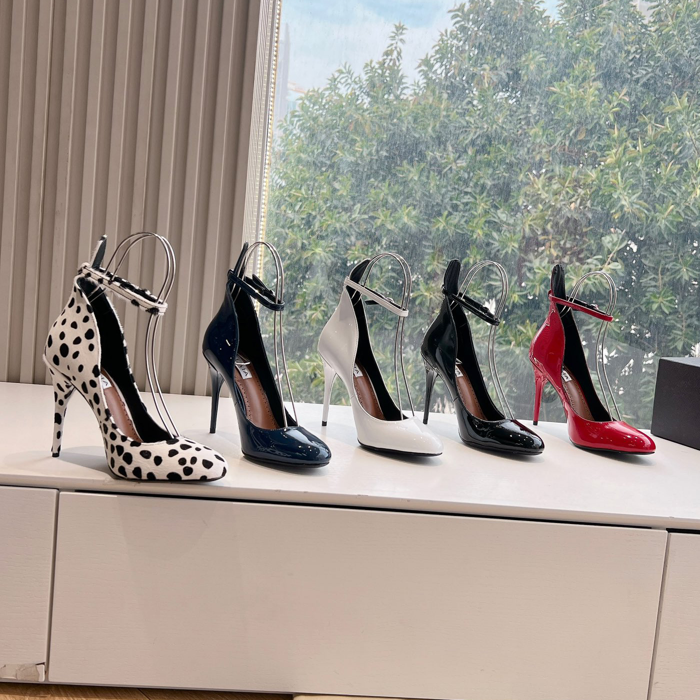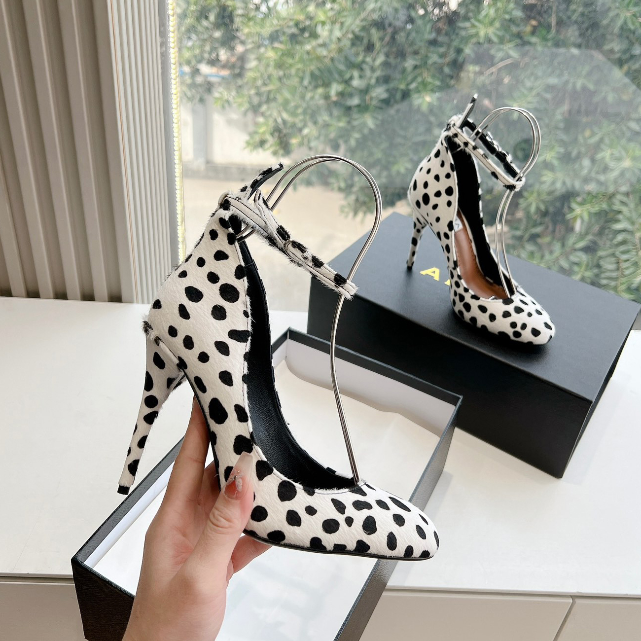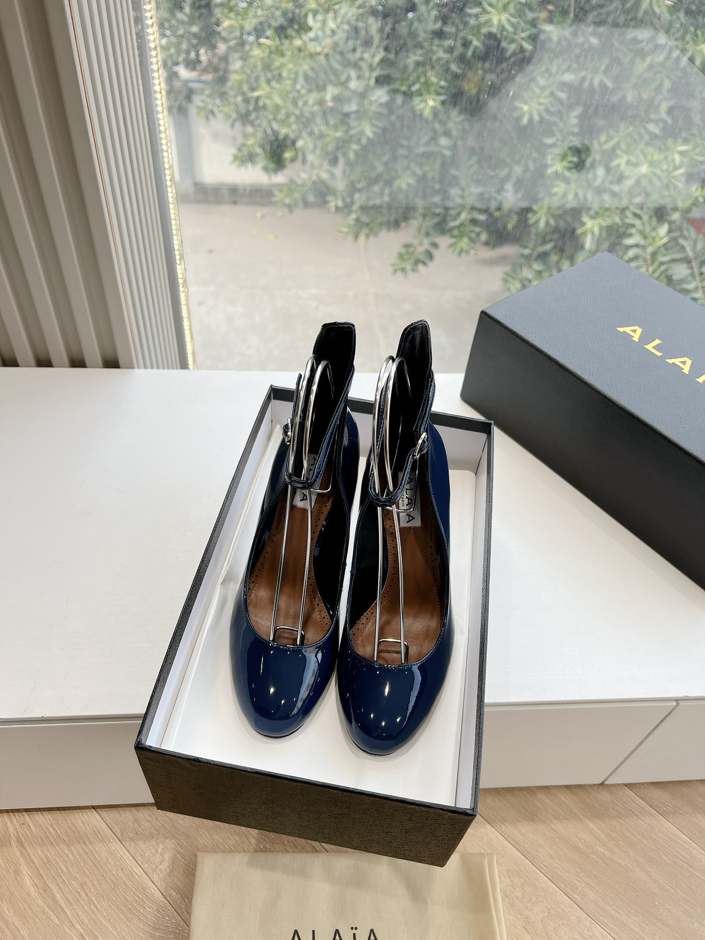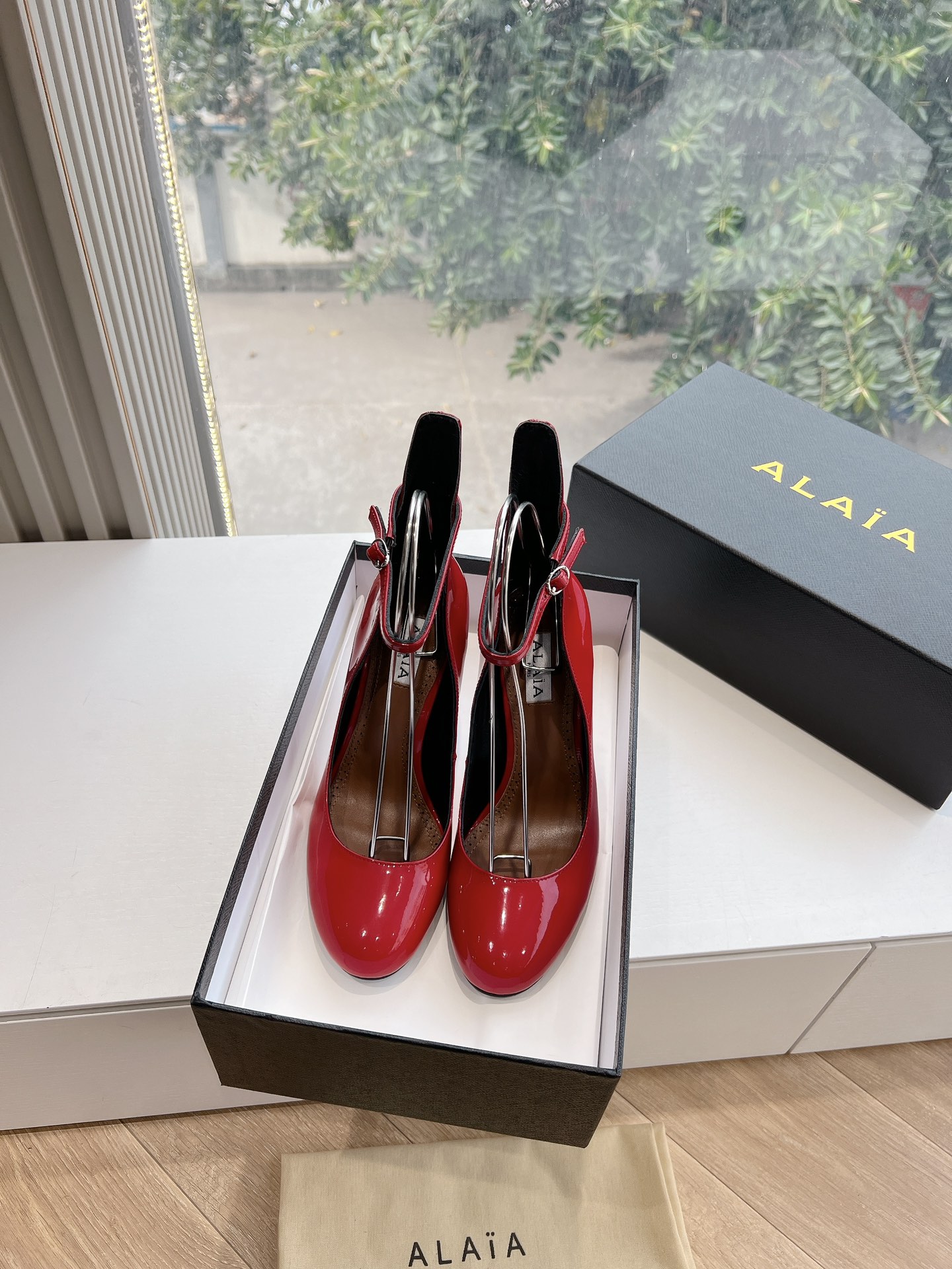 NIGO Alaia Women's Spring And Summer Glossy Sheepskin Buckle Casual Solid Color Fine Heel High Heel Shoes #nigo75572