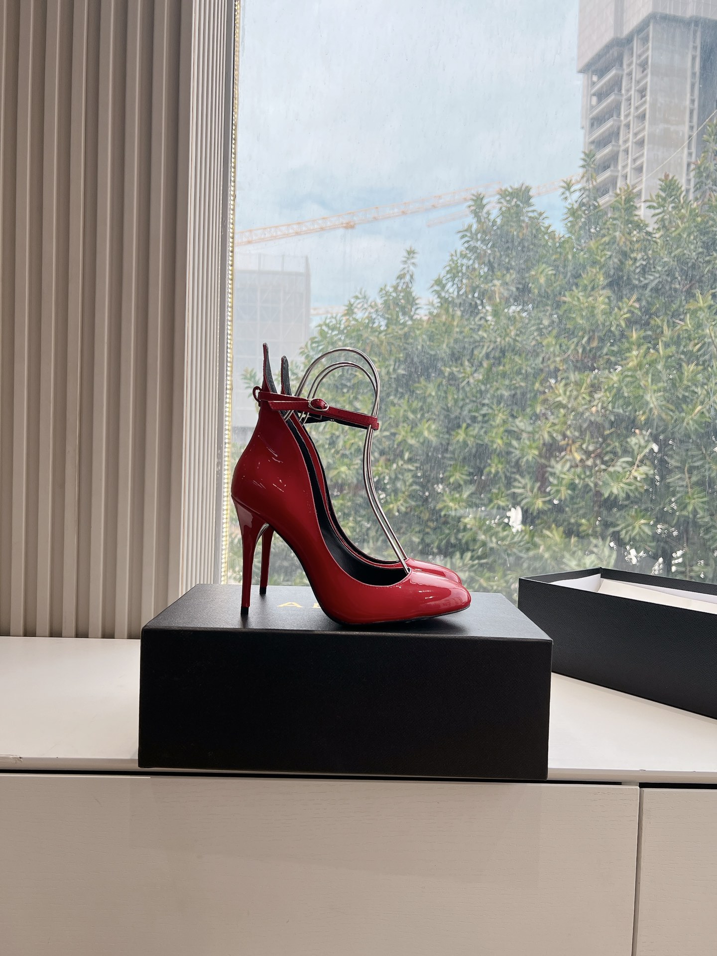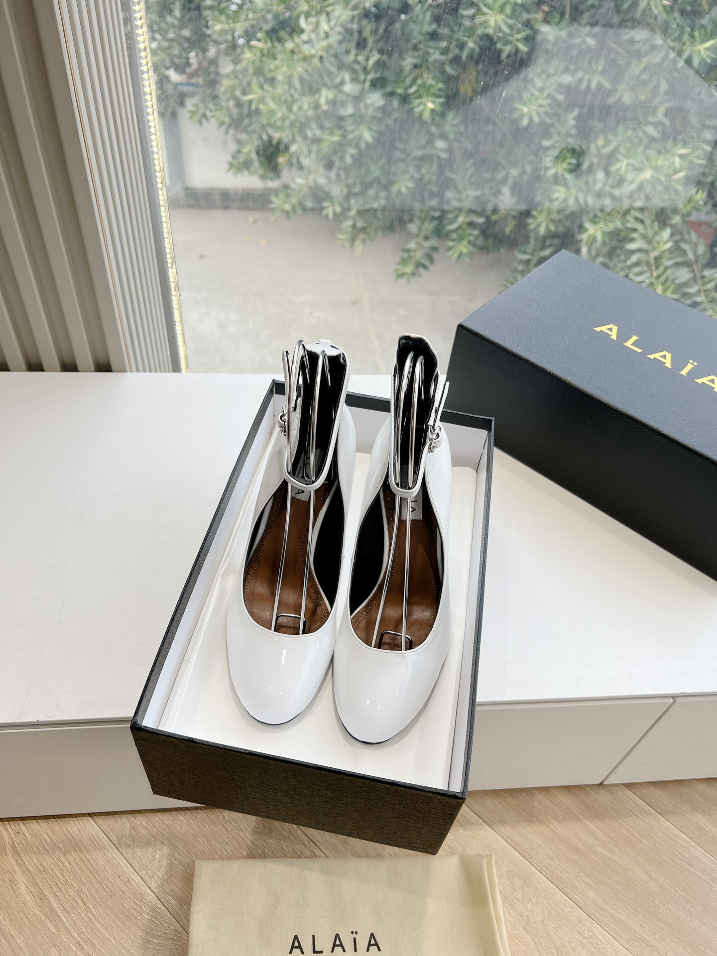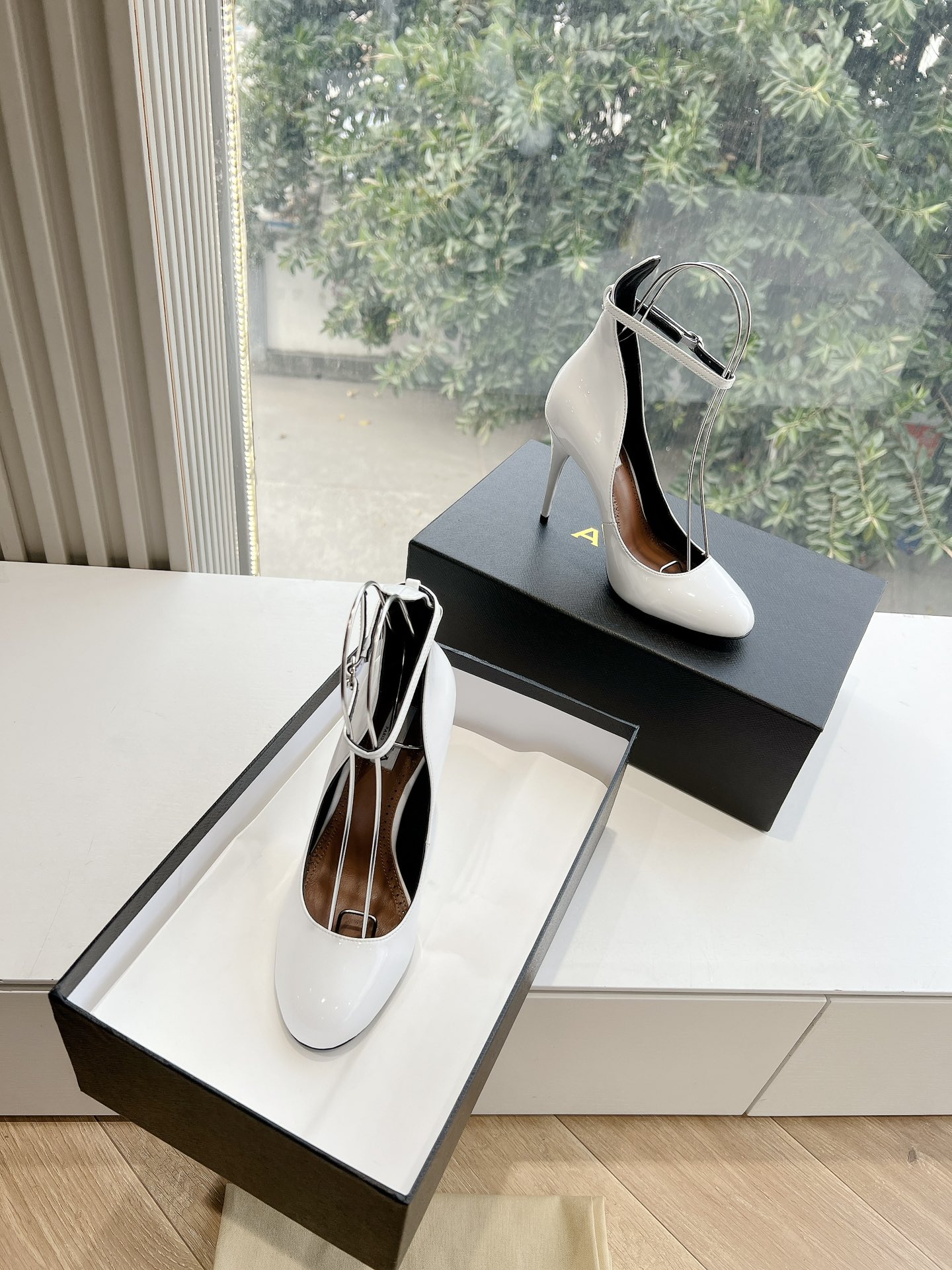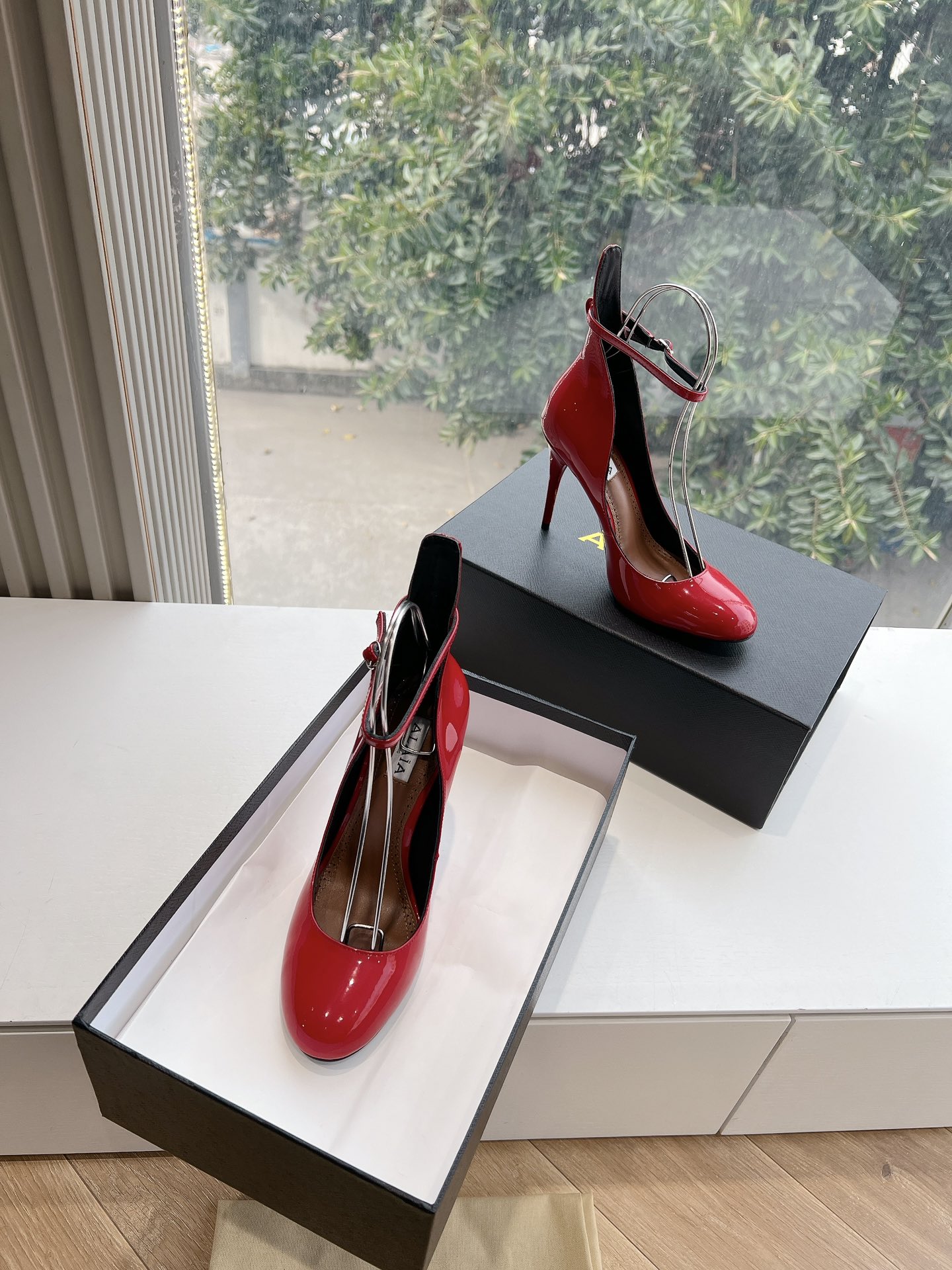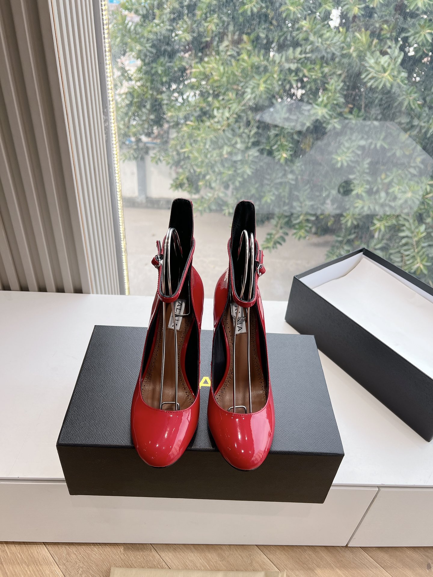 NIGO Alaia Women's Spring And Summer Glossy Sheepskin Buckle Casual Solid Color Fine Heel High Heel Shoes #nigo75572