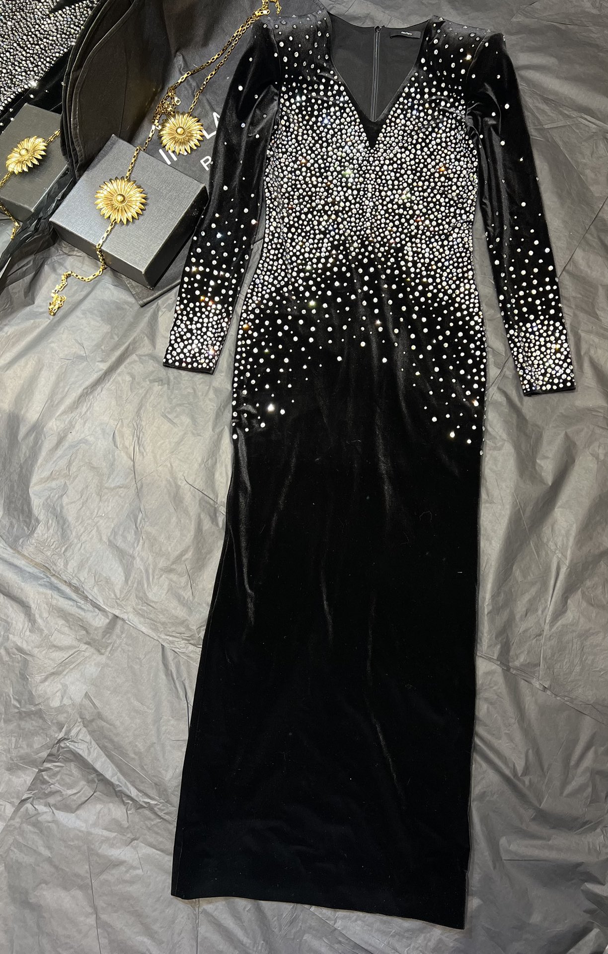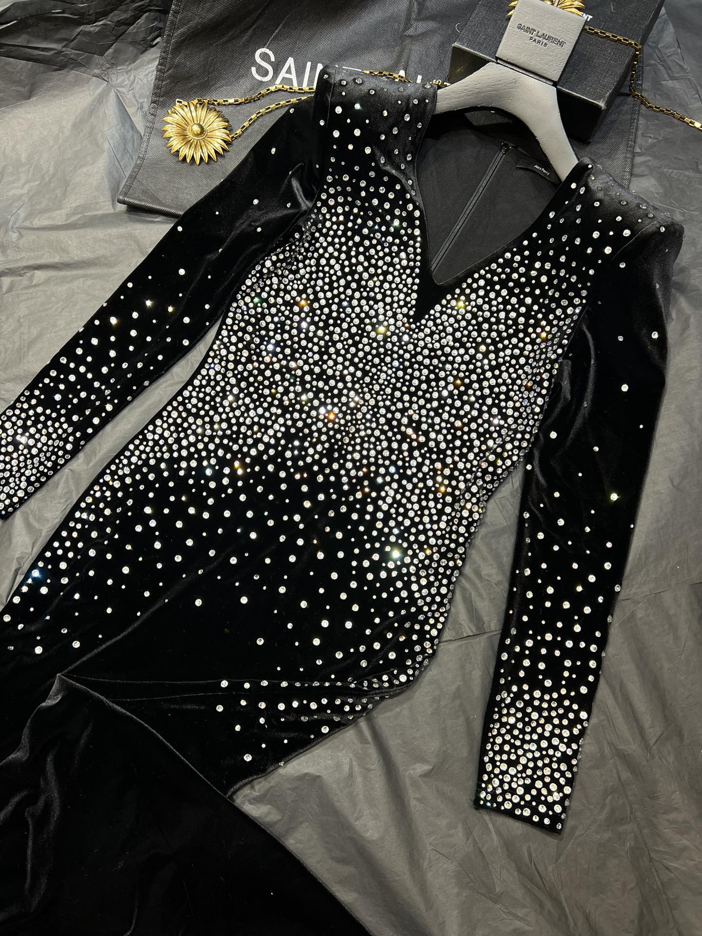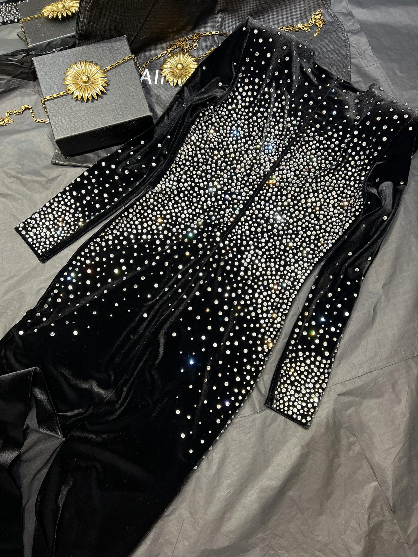 NIGO Alex Perry Women's Spring And Autumn Sexy V-neck Fashion Hot Drilling Velvet Long Sleeve Solid Color Dresses Ngvp #nigo1138