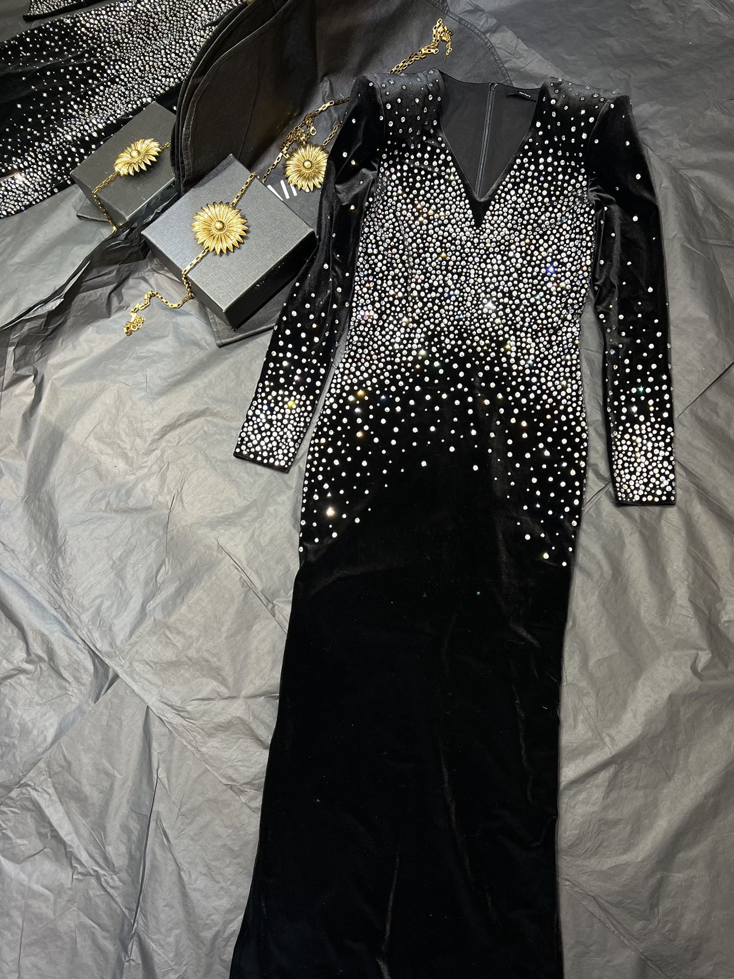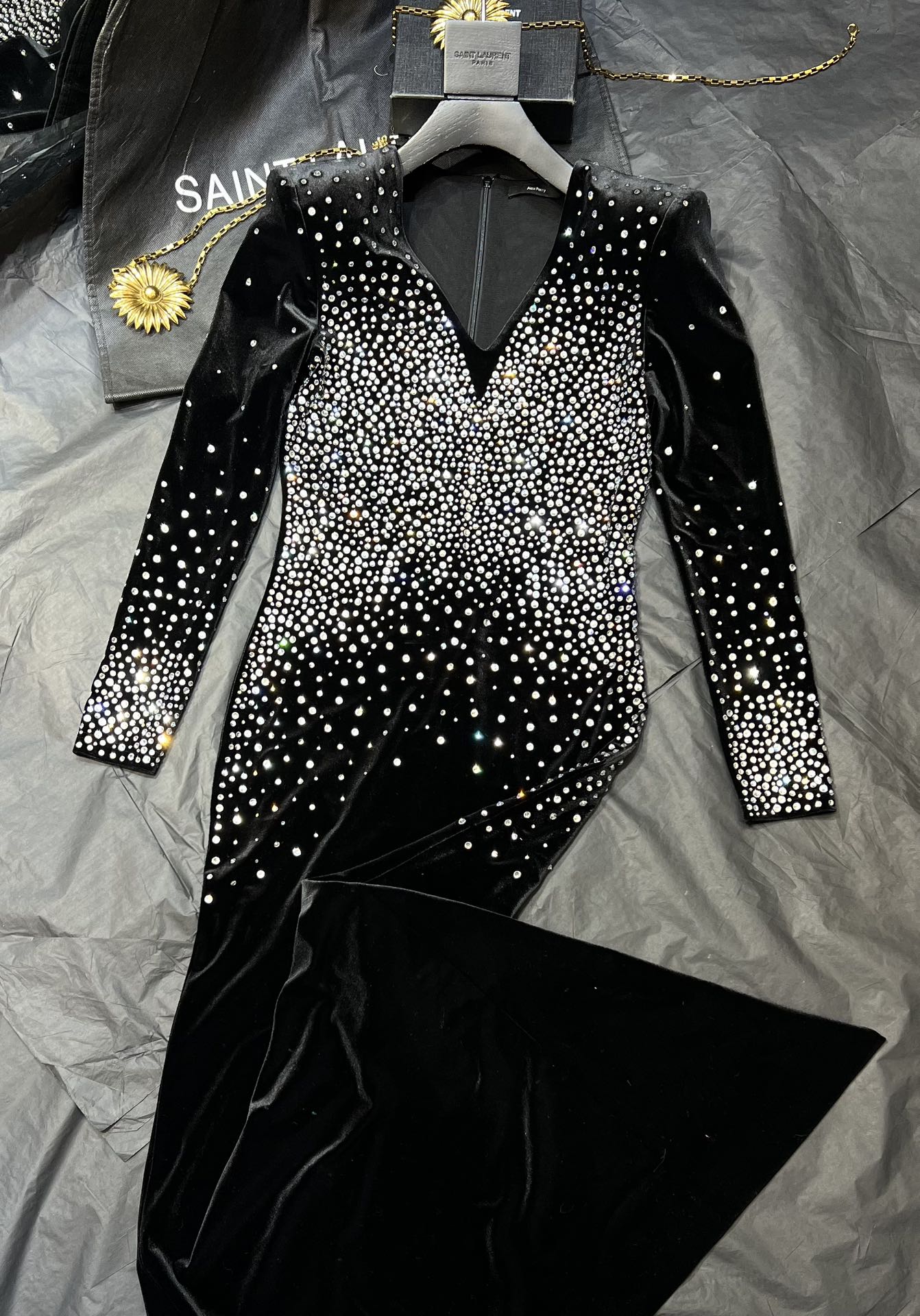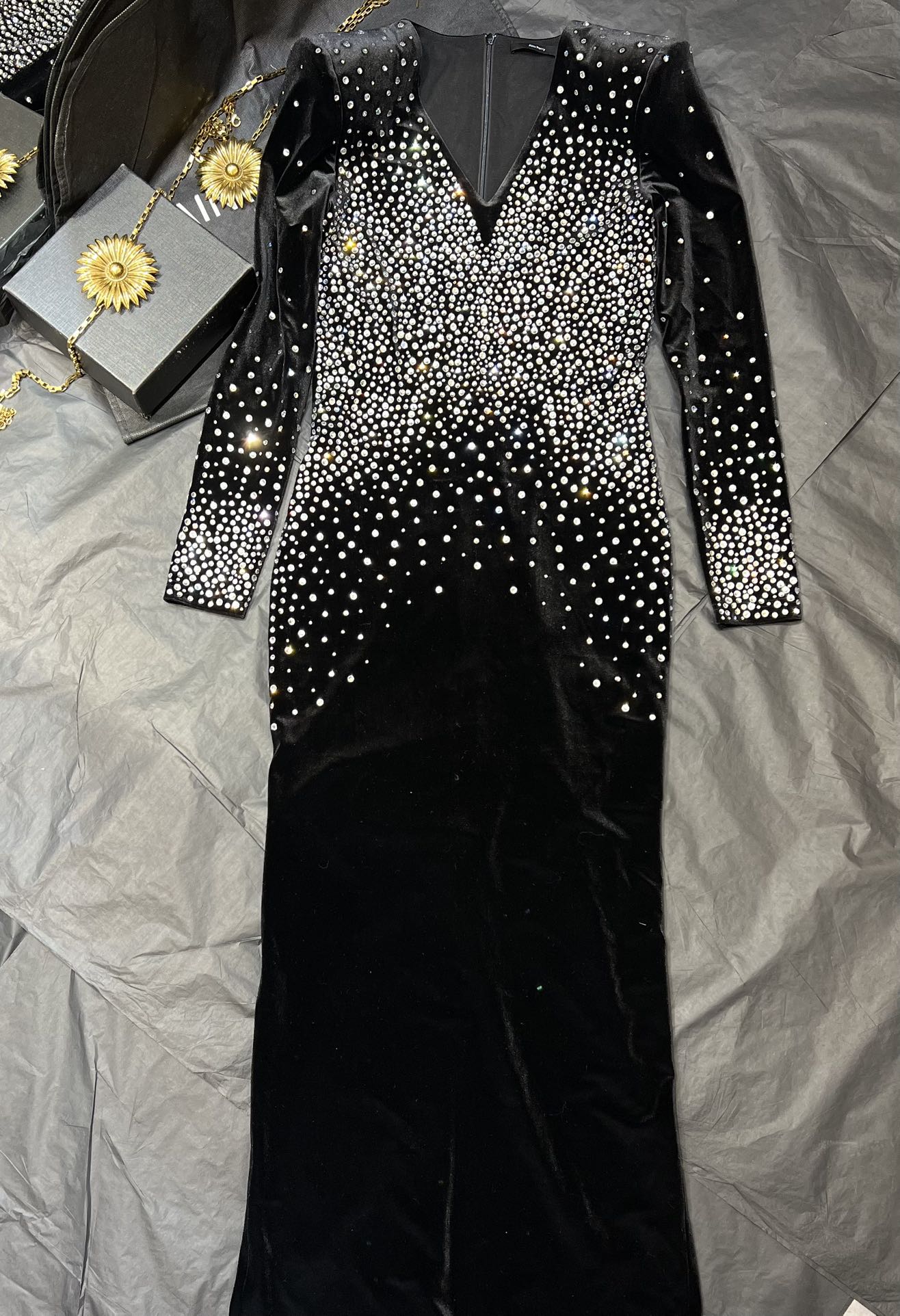 NIGO Alex Perry Women's Spring And Autumn Sexy V-neck Fashion Hot Drilling Velvet Long Sleeve Solid Color Dresses Ngvp #nigo1138