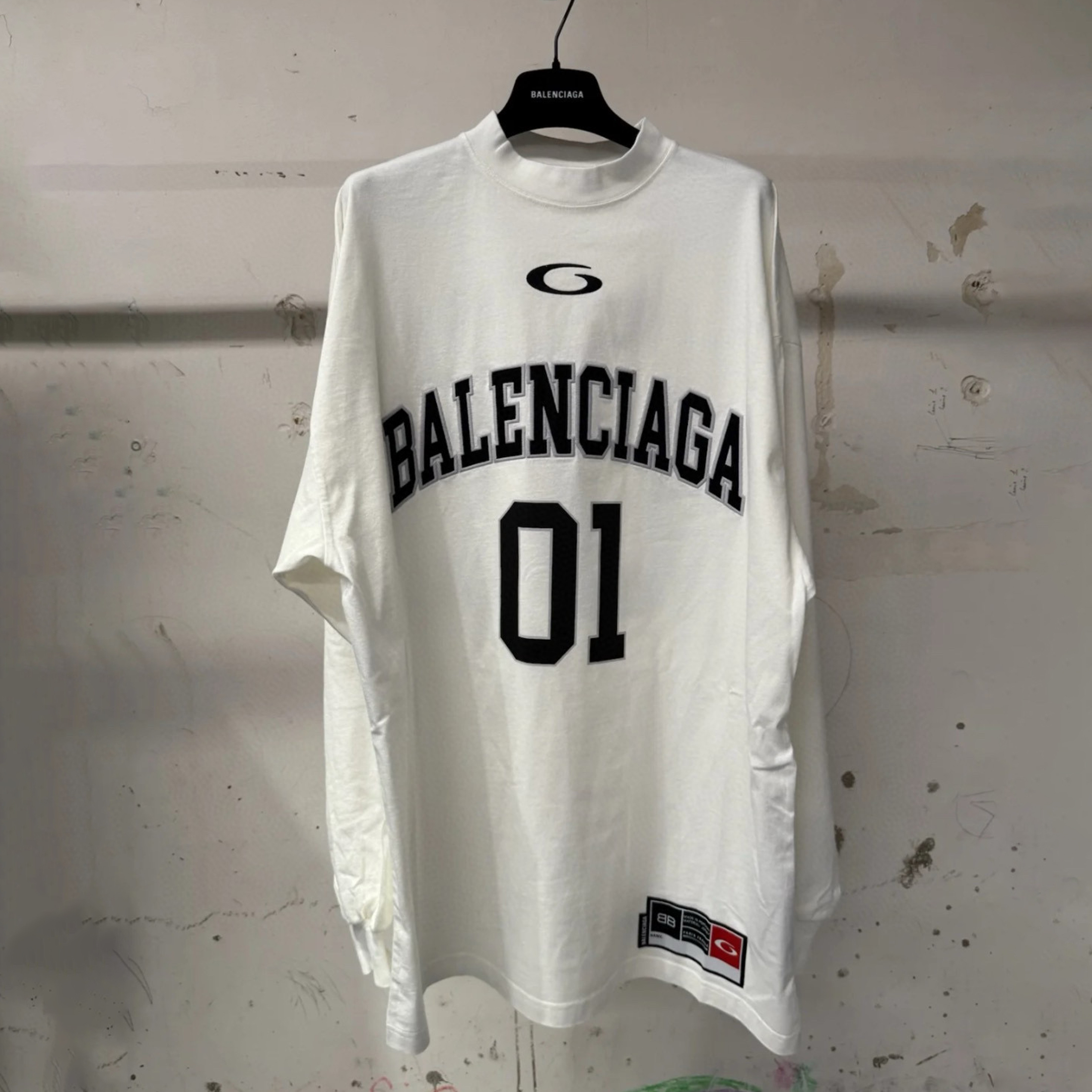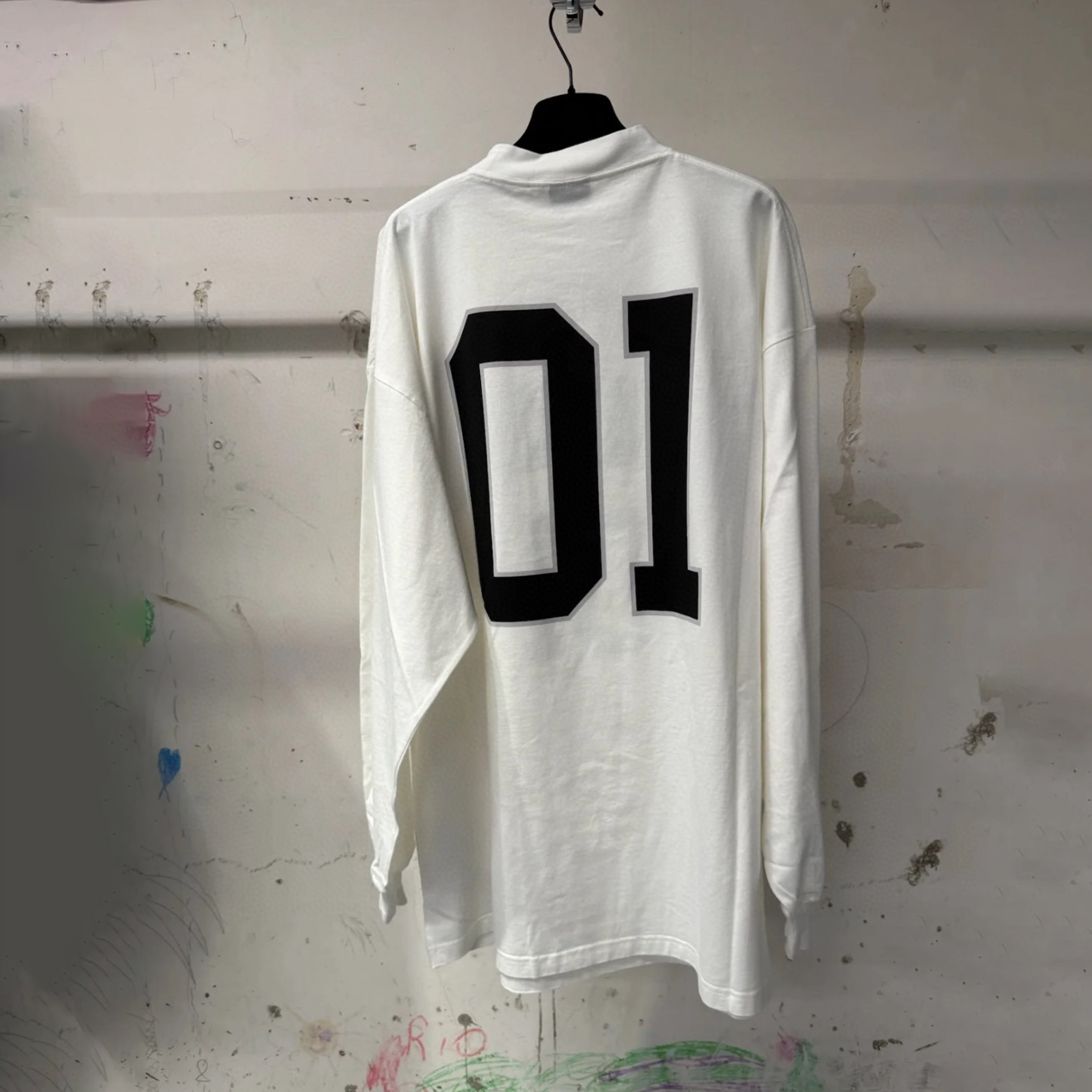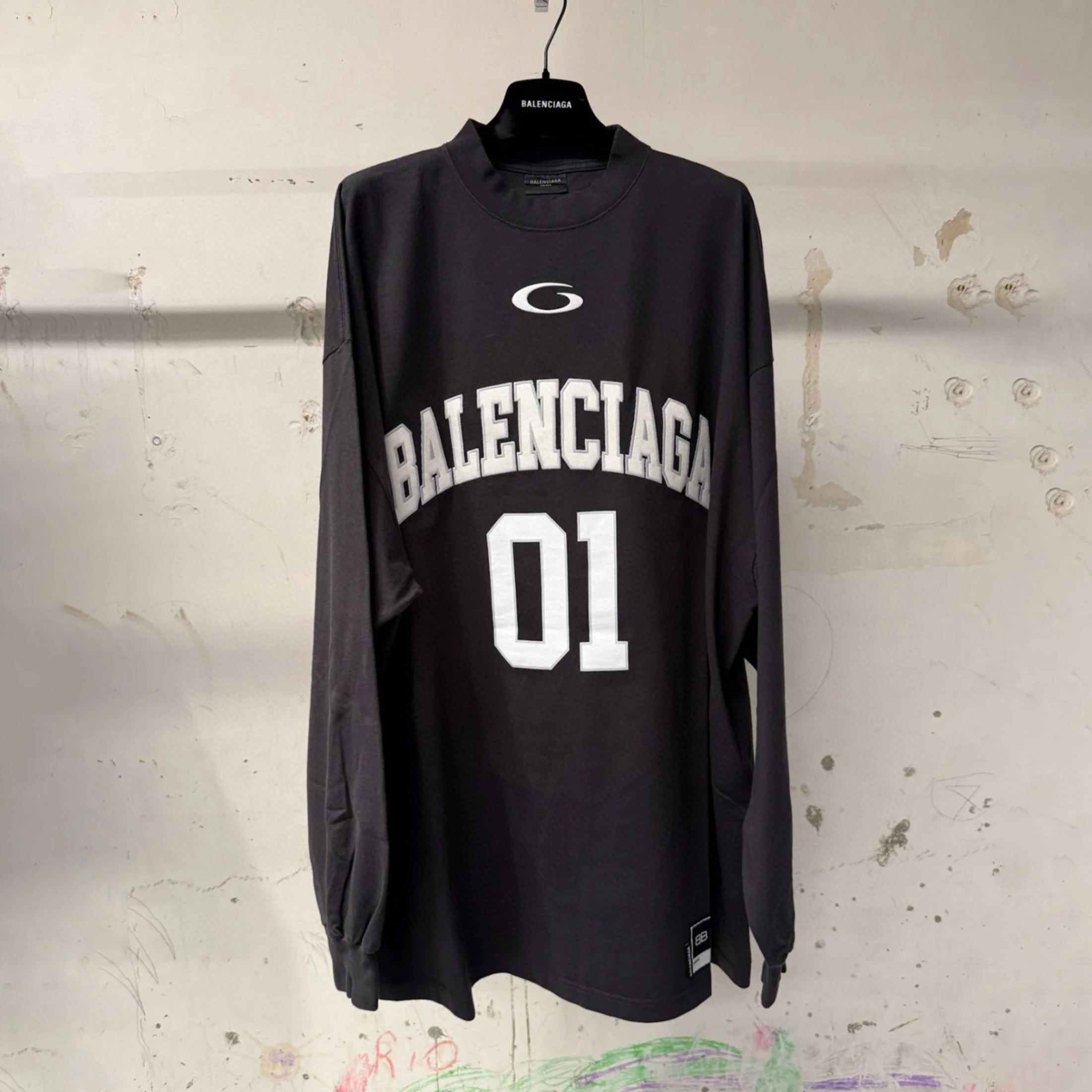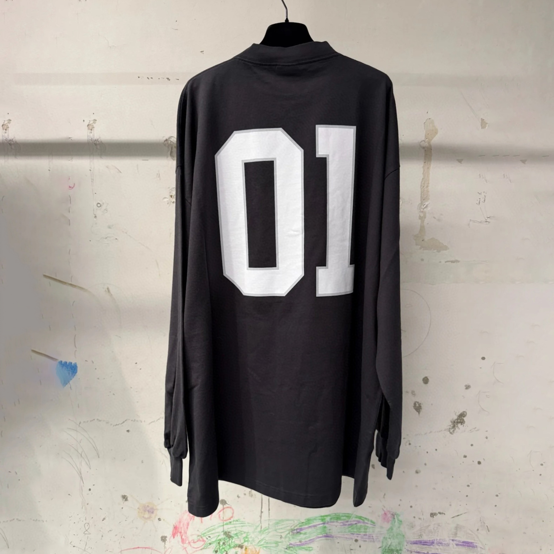 NIGO Balenciaga Basketball Series Men’s Washed Black White Vintage Plain Knit Oversized Fit Long Sleeve T-shirt Vintage 01 Jersey High Street T-shirt Top Spring Summer #nigo71858