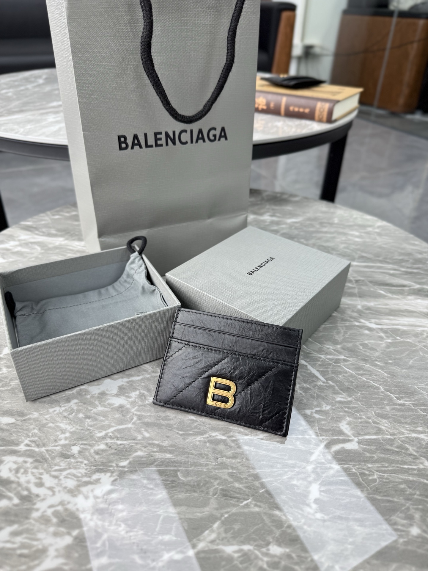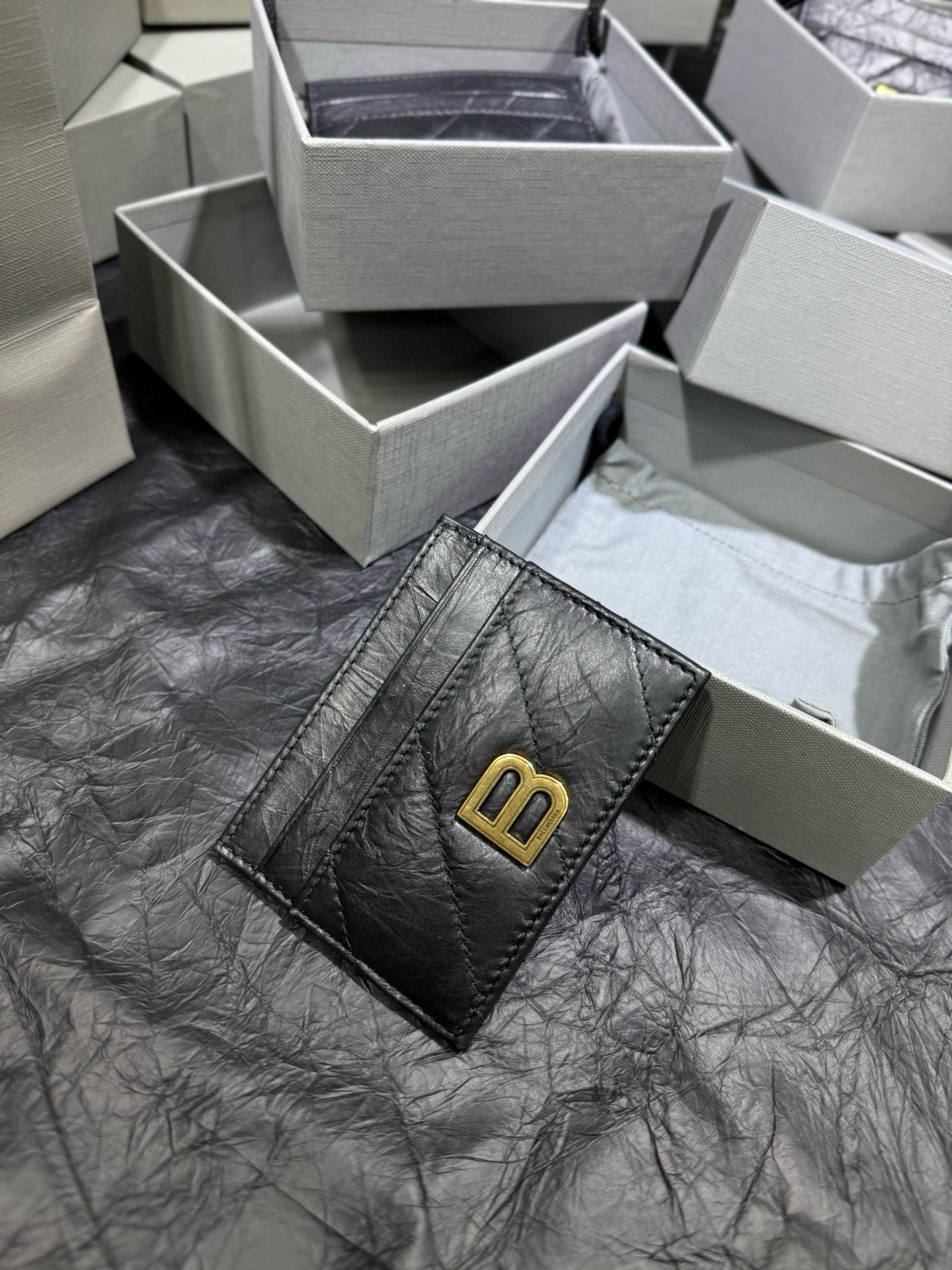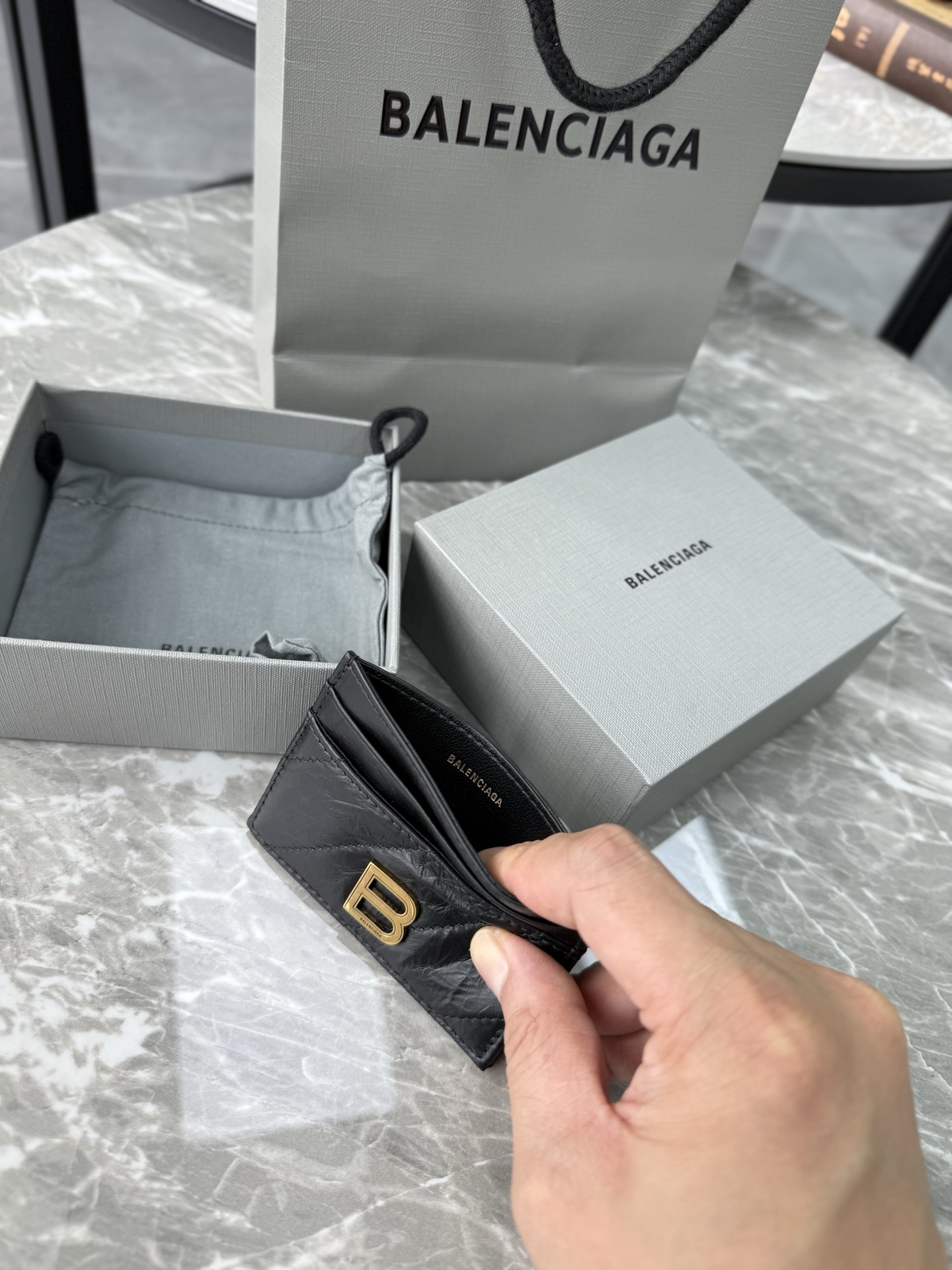 NIGO Balenciaga CRUSH Unisex Fashion Classic Solid-color Embossed B Logo Metal Accessories Card Holder Wallet Bag Bags 766467210J11000 #nigo78543