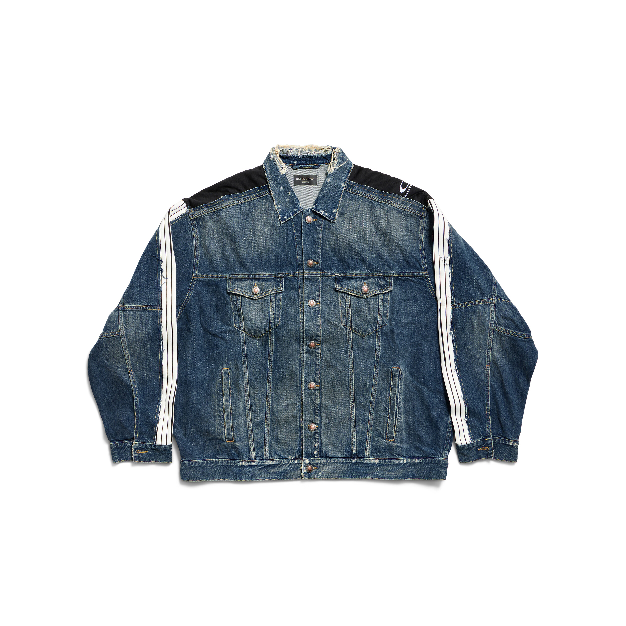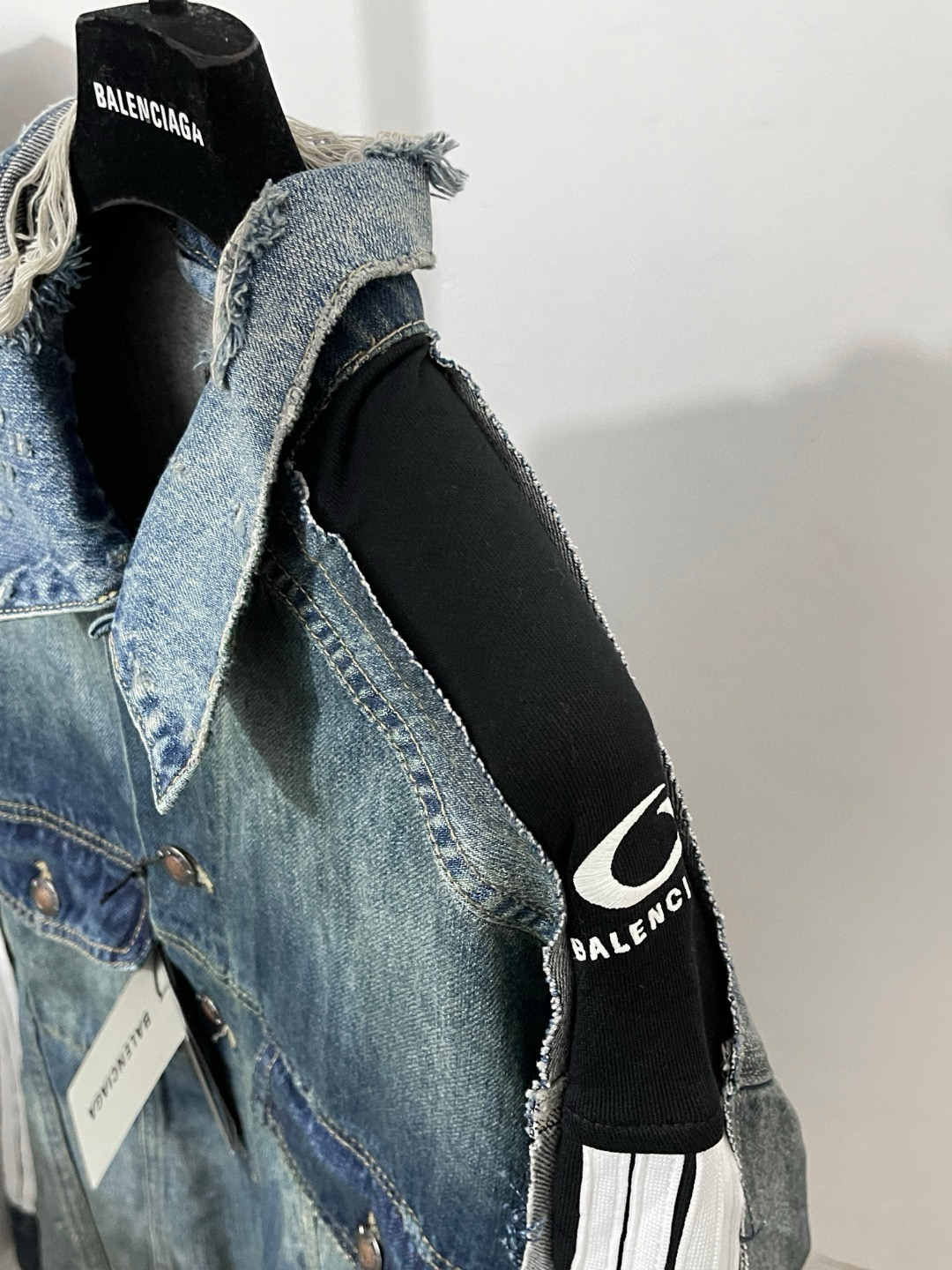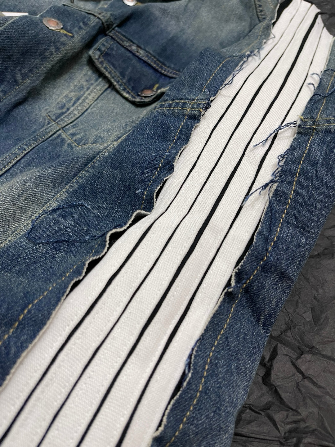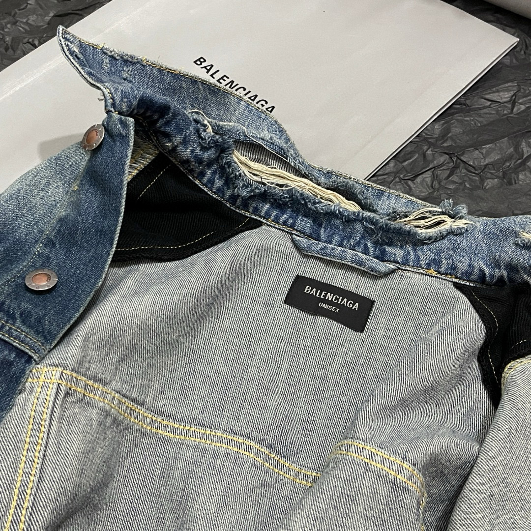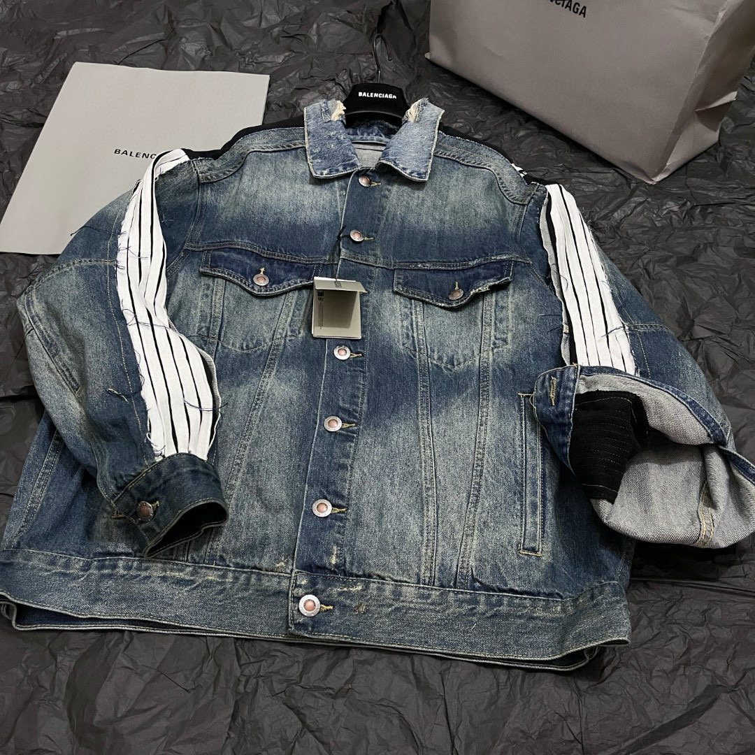 NIGO Balenciaga CUT- UP Men's Spring/fall Fashion Casual Washed Vintage Knit Fabric Lapel Single Breasted Denim Jacket With Zipper Or Button Closure Pair With Relaxed Fit Slouchy Jeans Suit Set #nigo79511