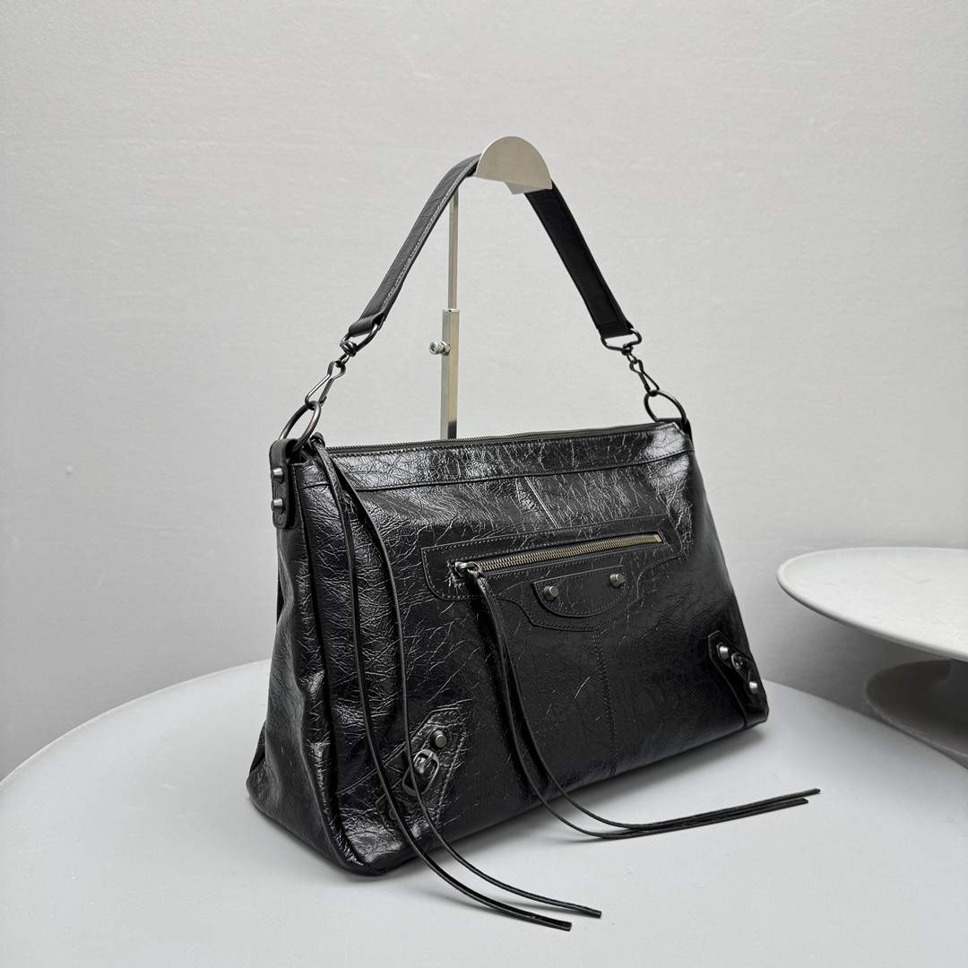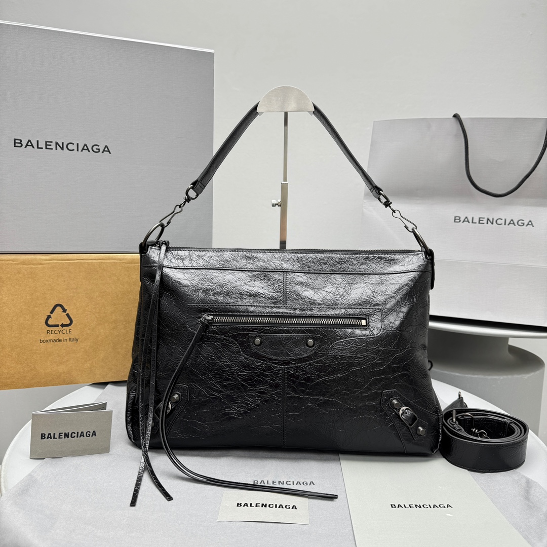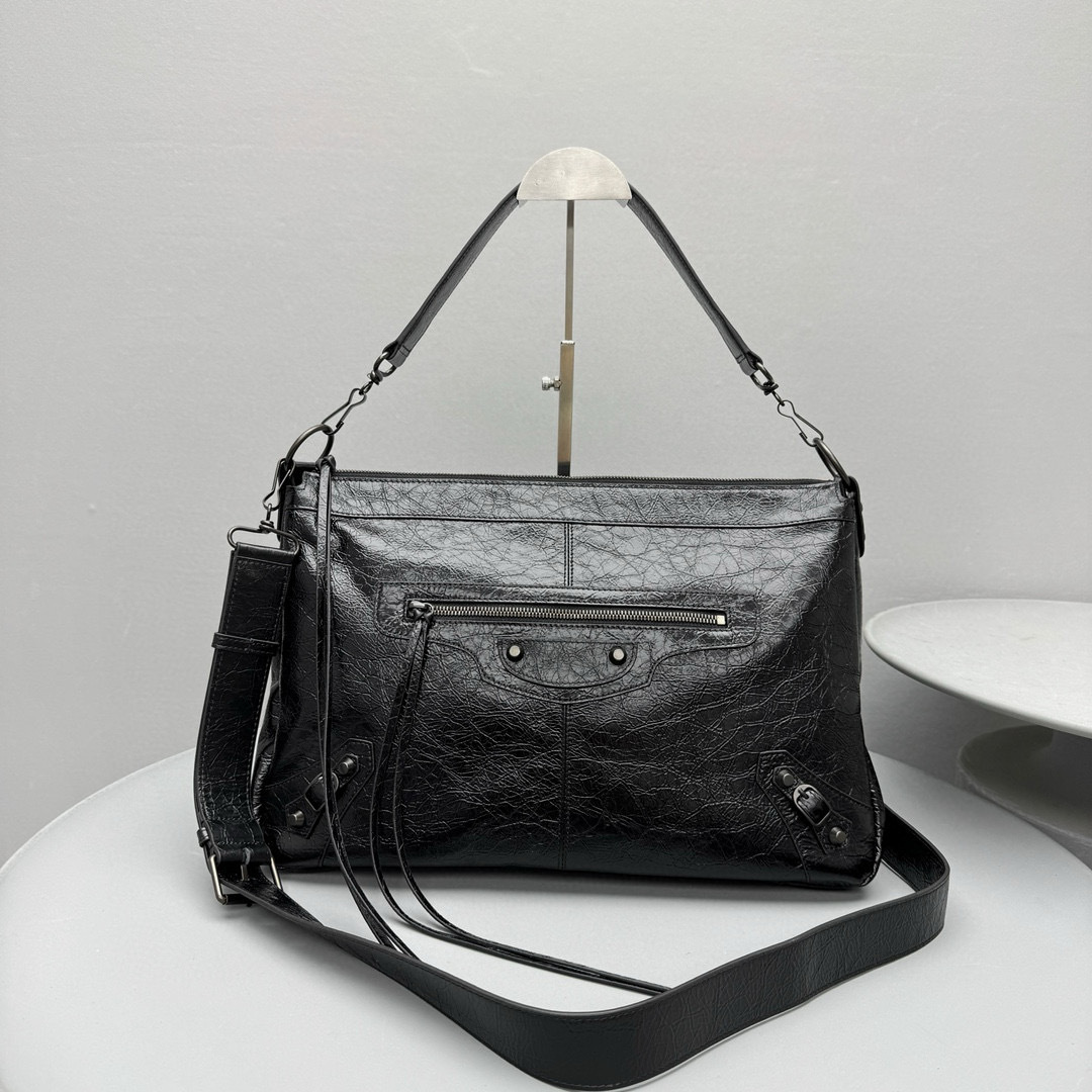 NIGO Balenciaga LE CITY MOTO Men's And Women's Fashion Solid Color Leather Zipper Closure Large Capacity Adjustable Shoulder Strap Biker Bag Travel Tote Shoulder Bag Bags 8461862ABEK1000 #nigo79568