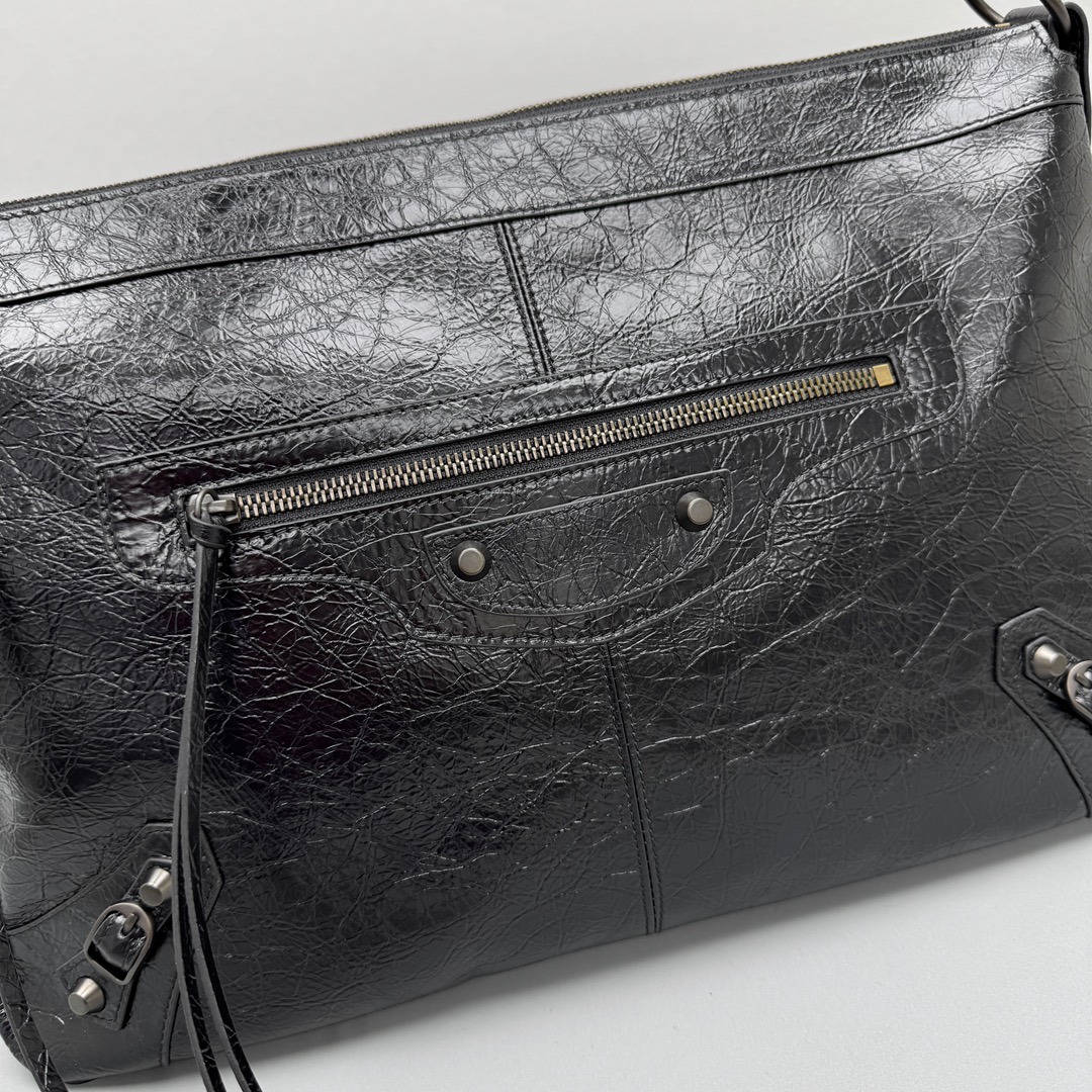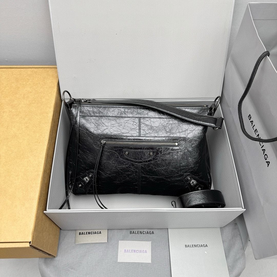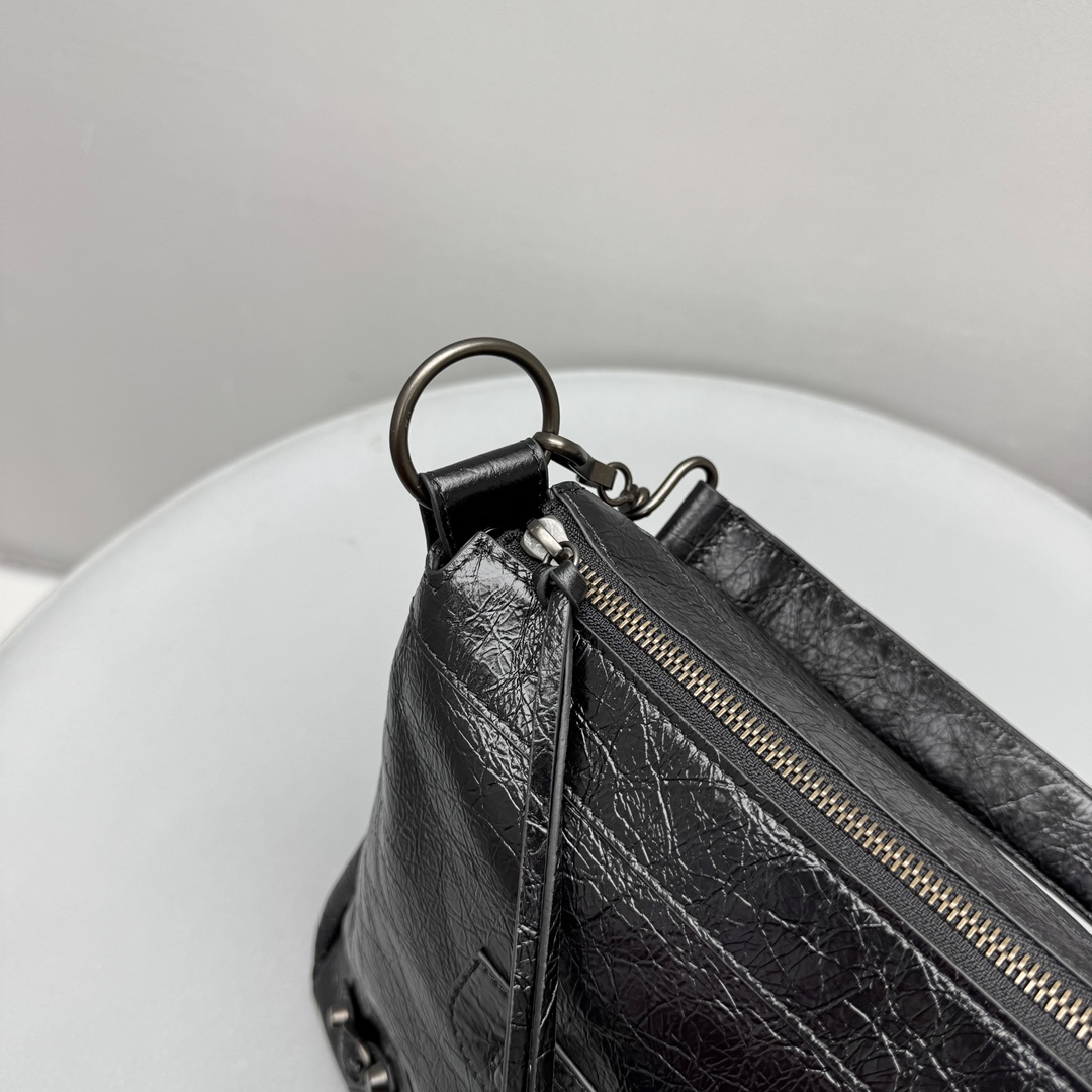 NIGO Balenciaga LE CITY MOTO Men's And Women's Fashion Solid Color Leather Zipper Closure Large Capacity Adjustable Shoulder Strap Biker Bag Travel Tote Shoulder Bag Bags 8461862ABEK1000 #nigo79568