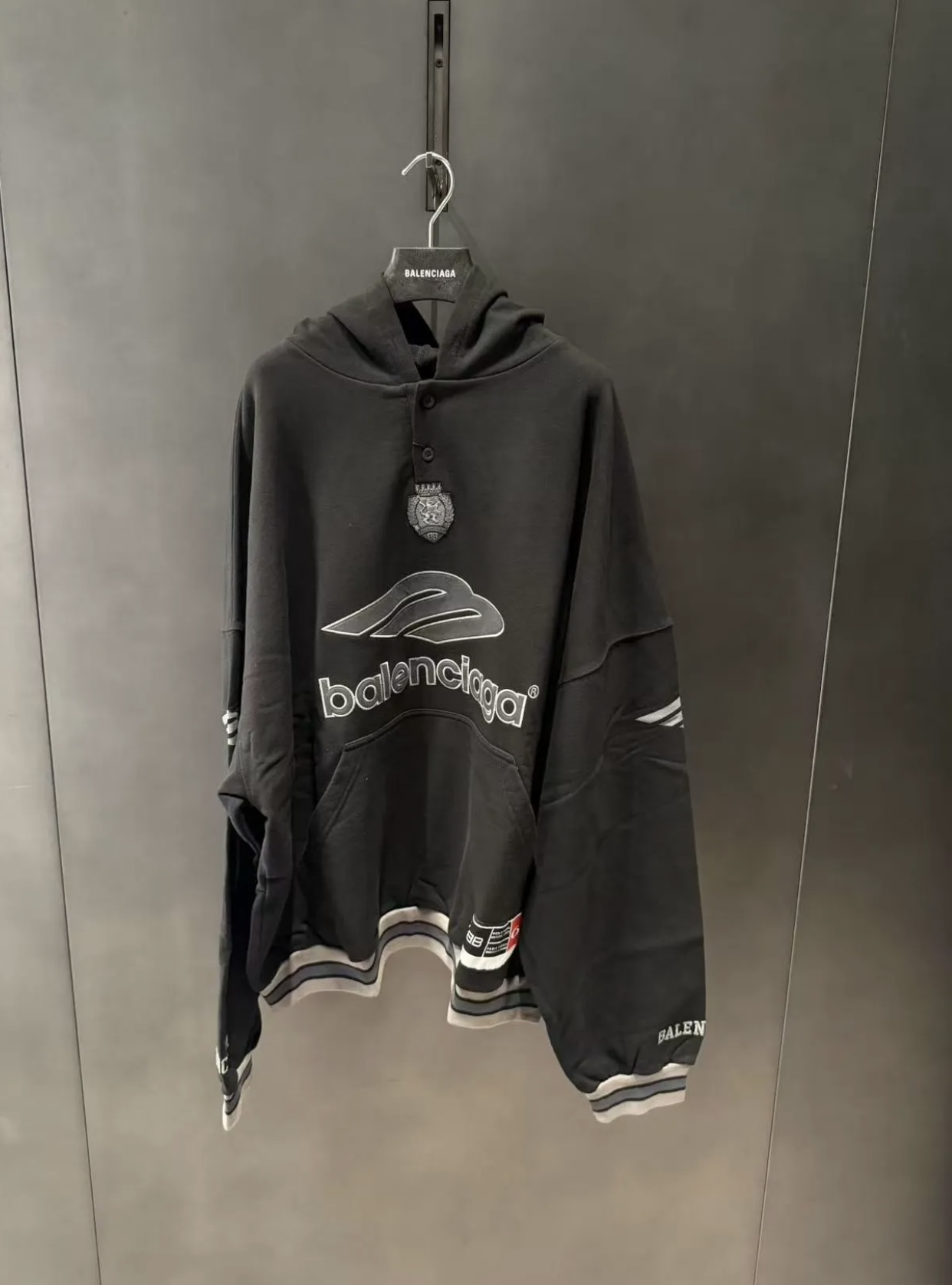 NIGO Balenciaga Men's 3b Football Polo Hoodie in Black anthracite #nigo334489