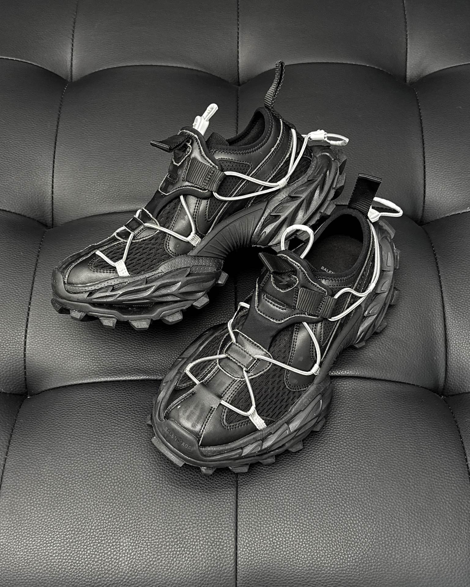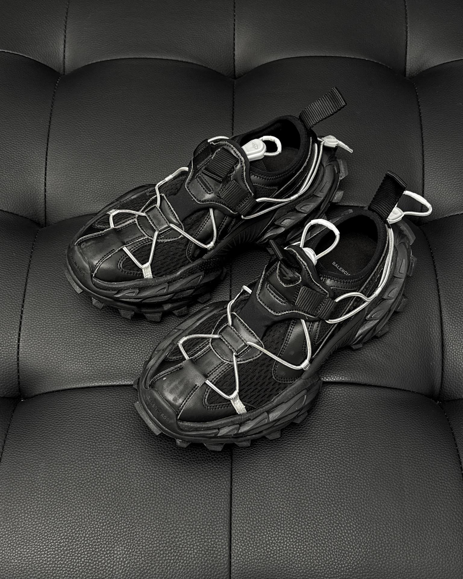 This Balenciaga shoes showcases the brand's exceptional craftsmanship and attention to detail. Crafted from premium leather, in a stunning black colorway, this piece combines timeless luxury with modern style.