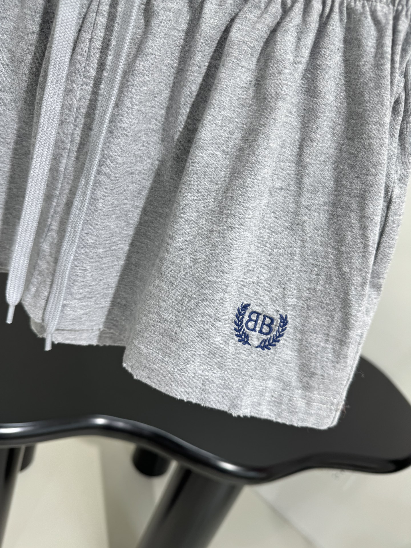 NIGO Balenciaga Men's And Women's Summer Solid Color Embroidered Logo Print Elastic Waist Drawstring Cotton Casual Shorts #nigo77488