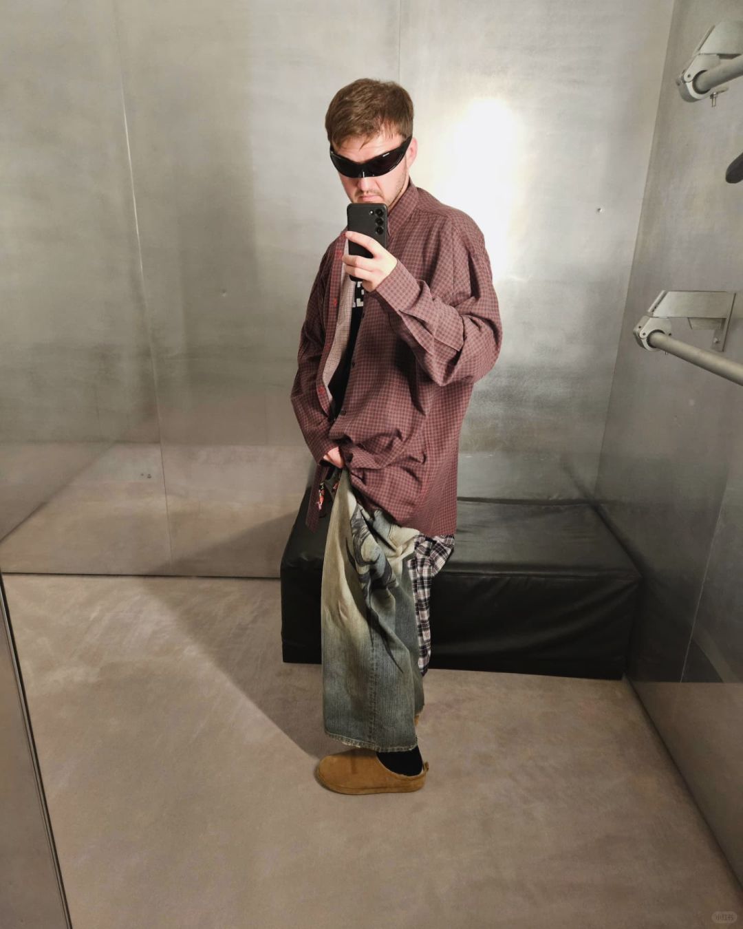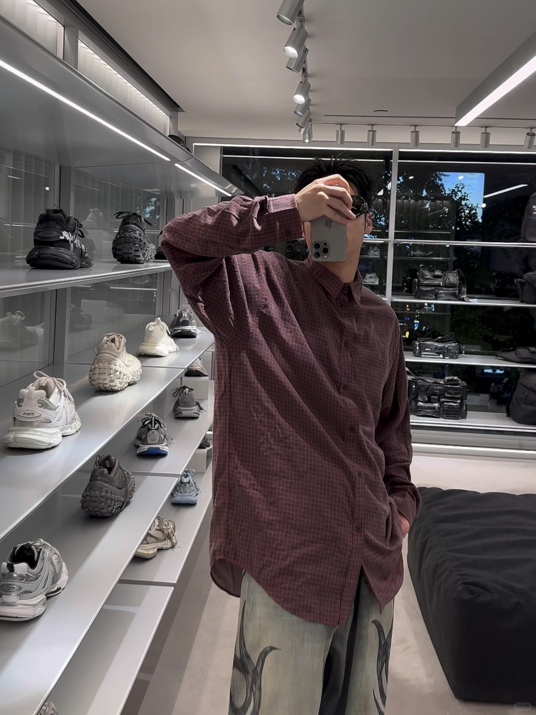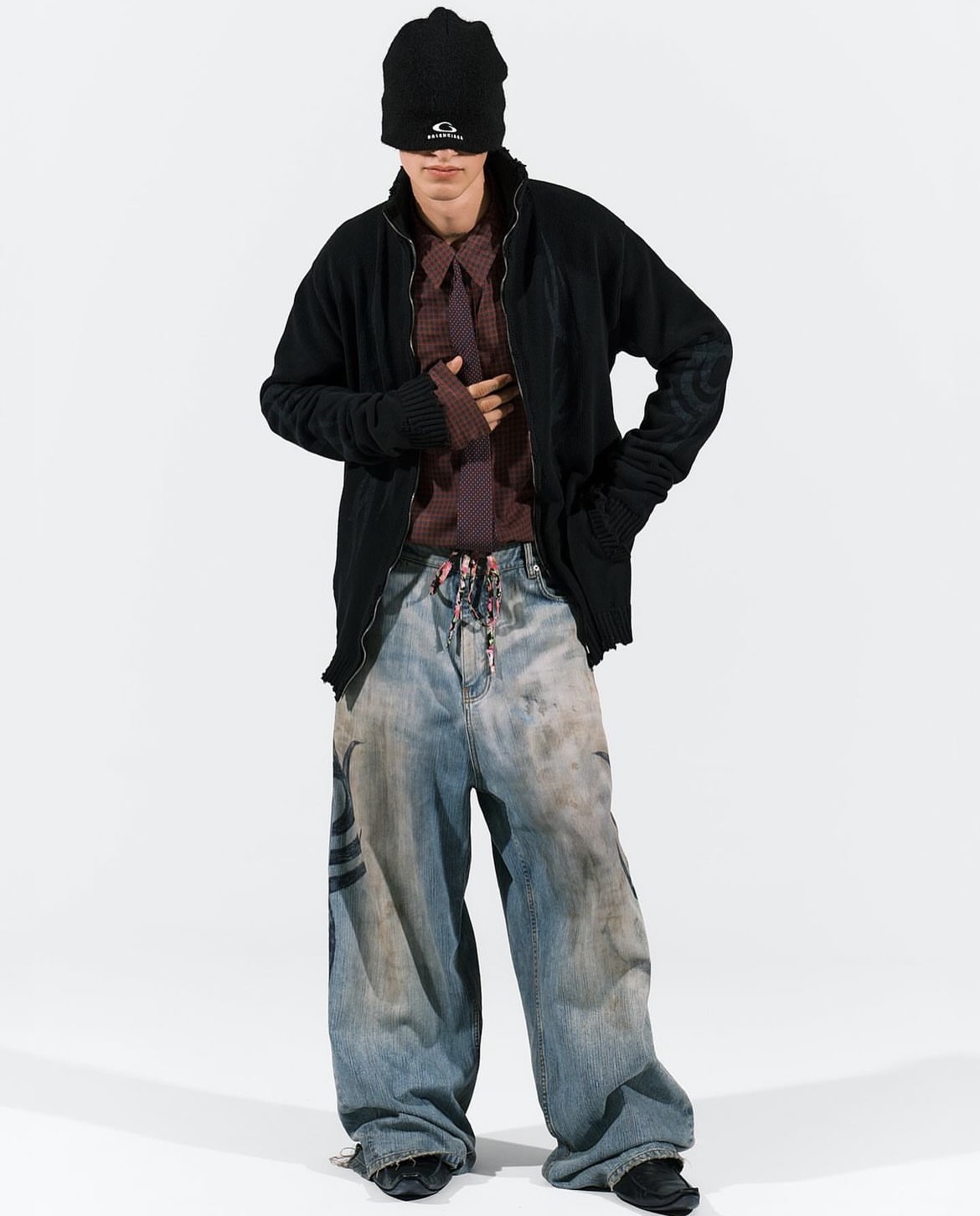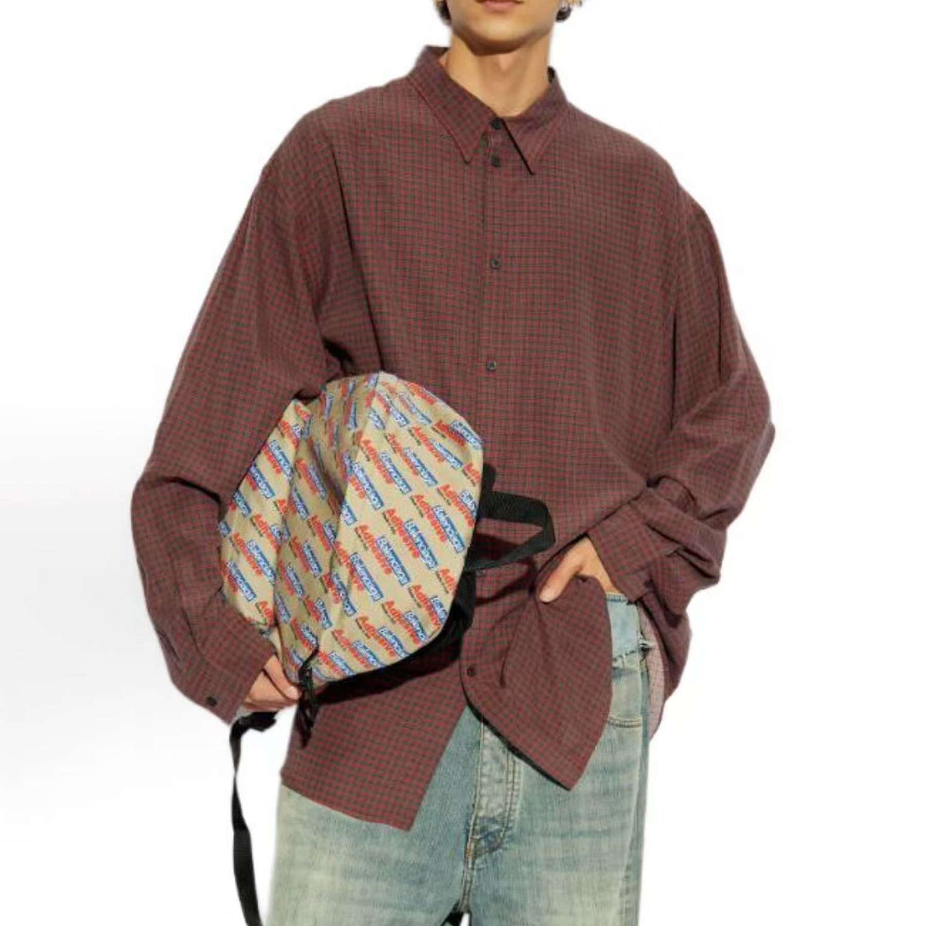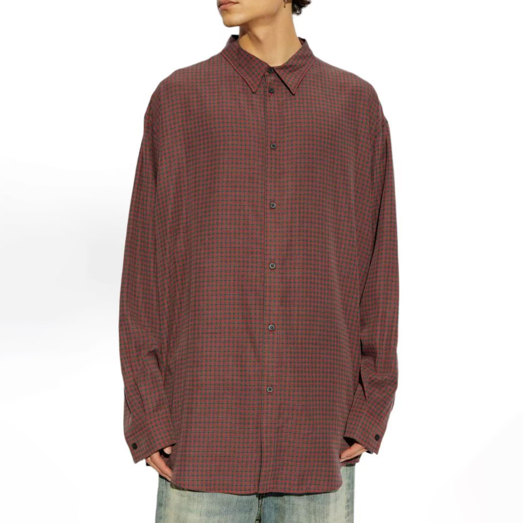 NIGO Balenciaga Men's Fall And Winter Show Models Y2k Vintage Dark Burgundy Plaid Shirt Loose Silhouette Lycra Fiber Single-breasted Lapel Shirt Jacket Ngvp #nigo2471