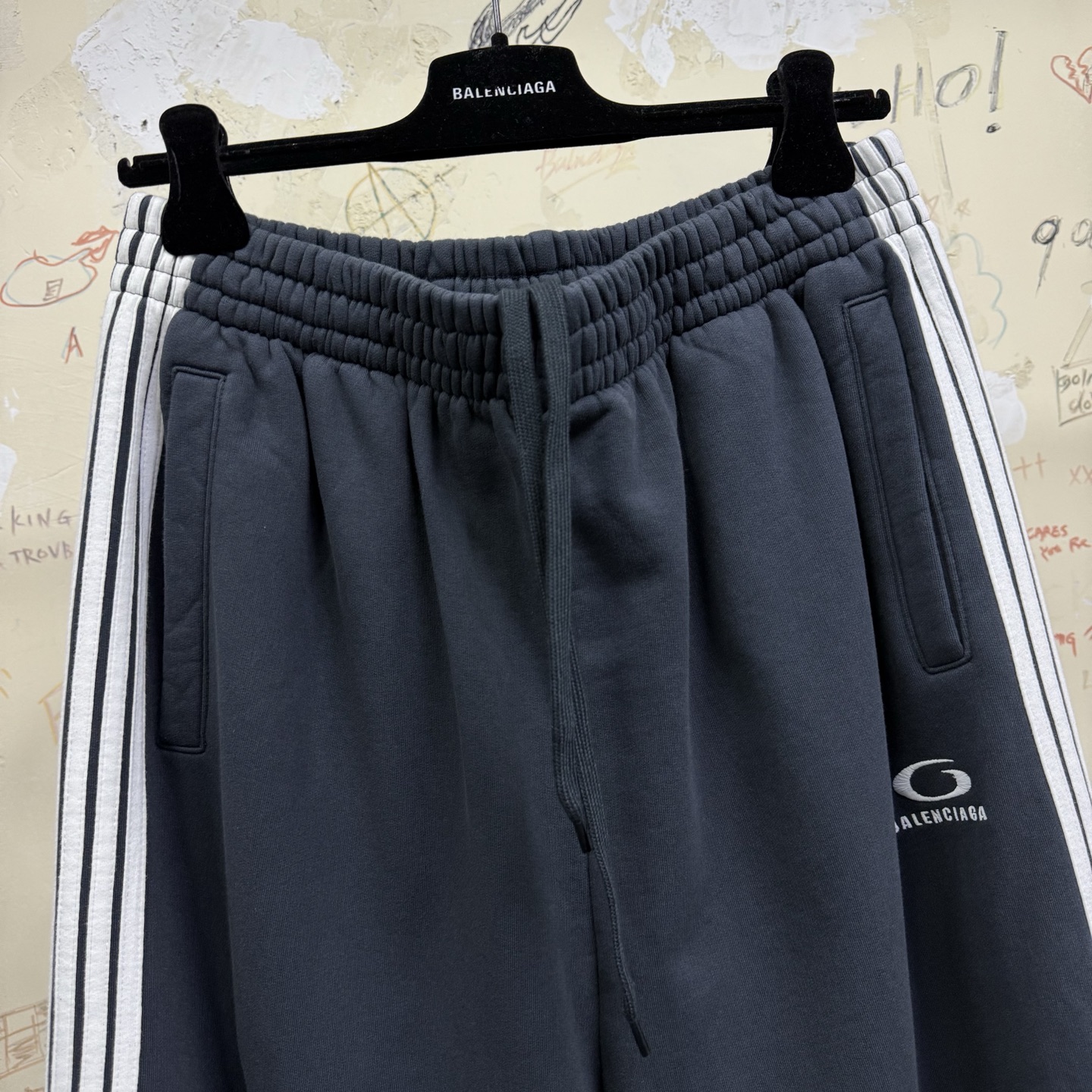NIGO Balenciaga Men's Logo Double-Ring Embroidered Stripe Solid-Color All-Season Athletic Pants Retro Casual Elastic Waist Loose Straight-Leg Trousers Pants #nigo335102