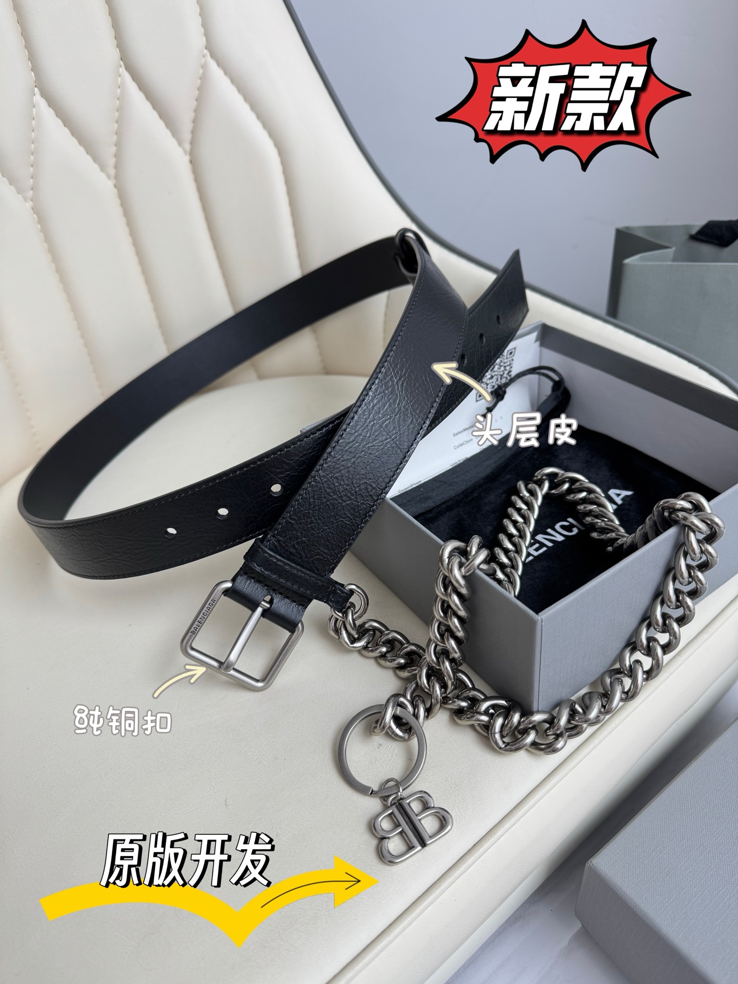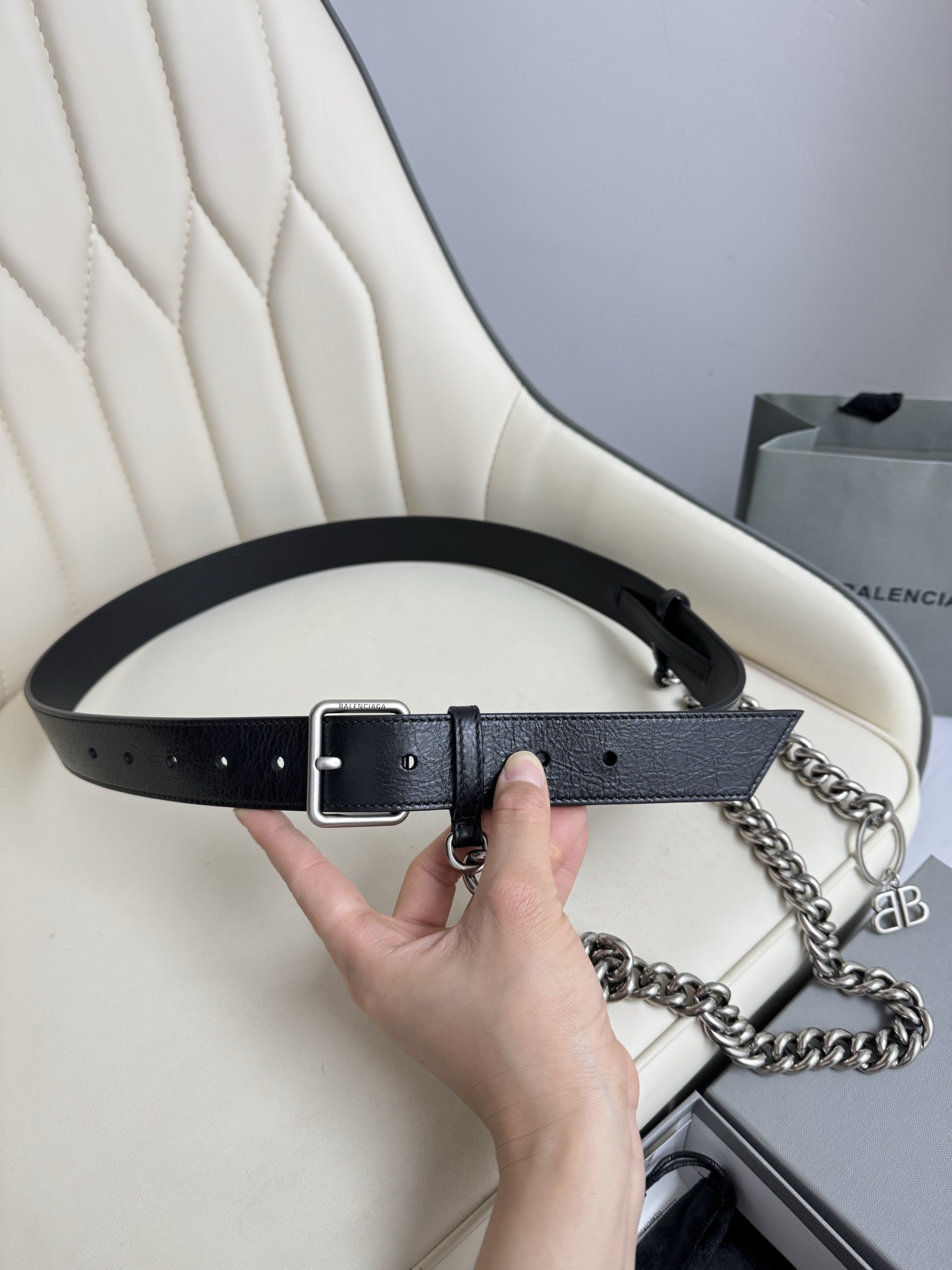 NIGO Balenciaga Men's Logo Monaco Chain Strap Belt Solid Color Width 3.5cm Accessories Ngvp #nigo1379