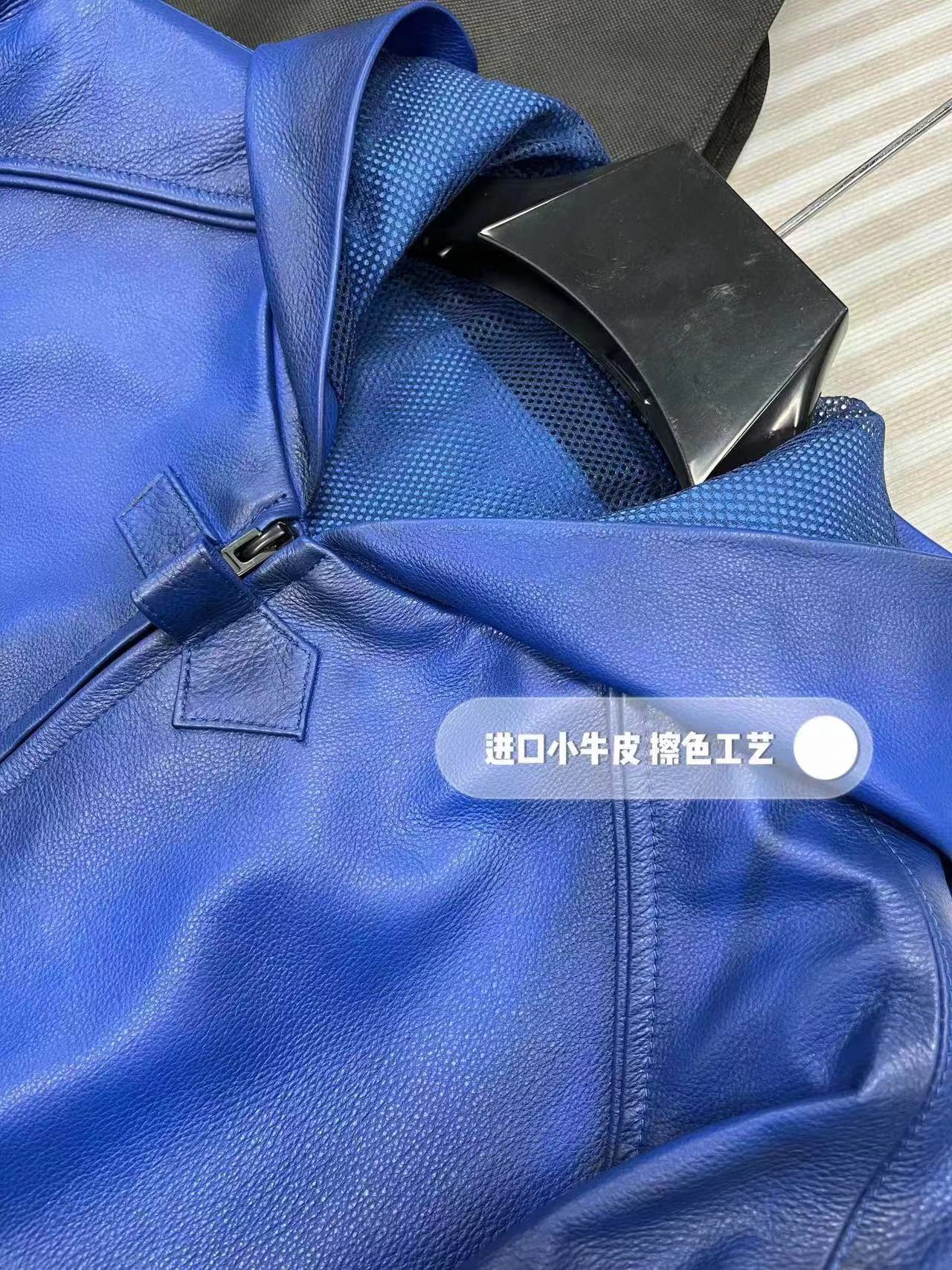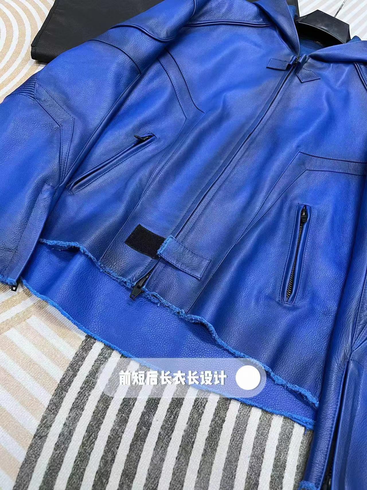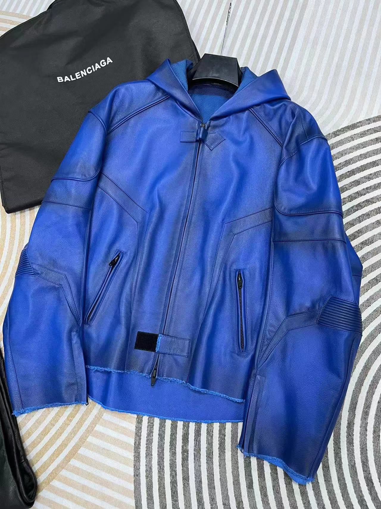 NIGO Balenciaga Men's Spring And Fall Fashion Zipper Blue Cowhide Hooded Long Sleeve Loose Biker Jacket Ngvp #nigo8581