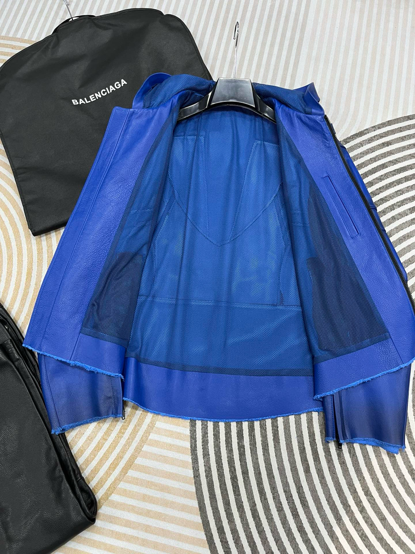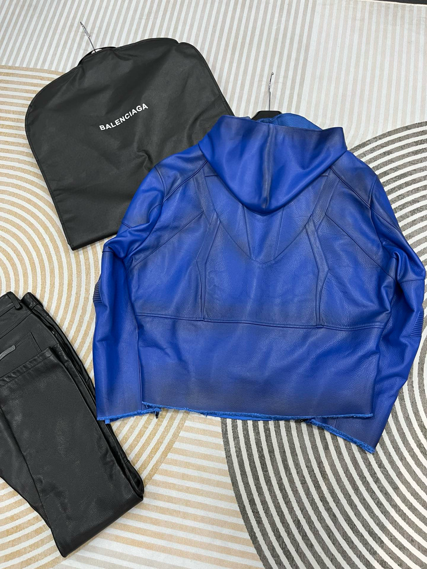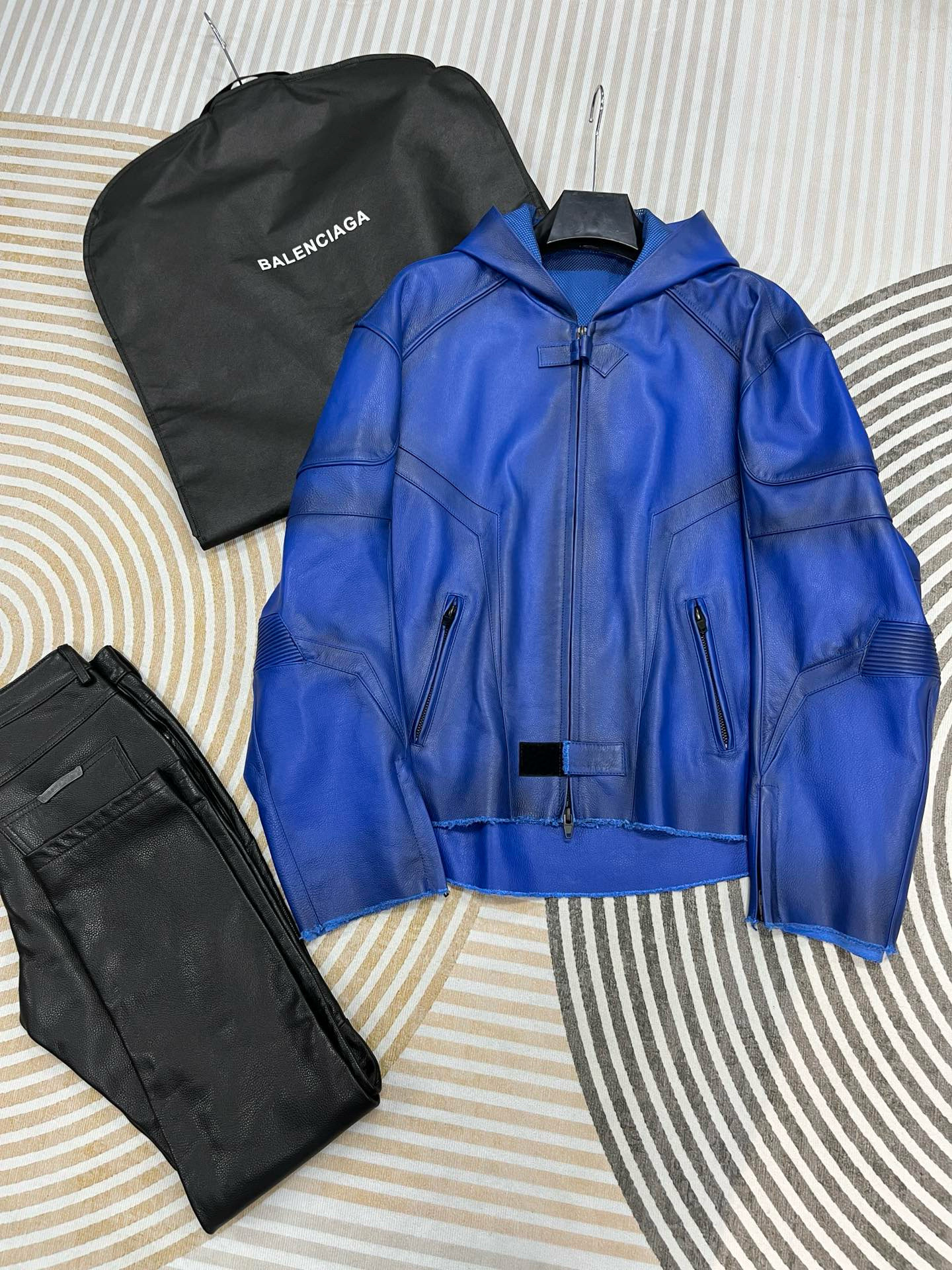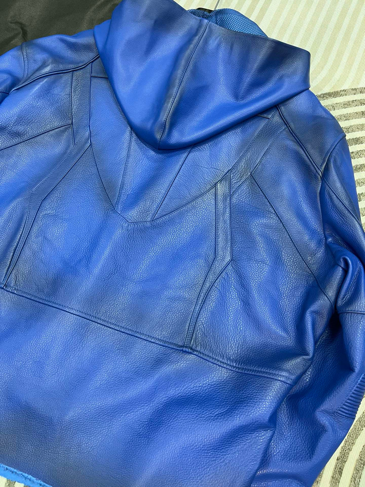 NIGO Balenciaga Men's Spring And Fall Fashion Zipper Blue Cowhide Hooded Long Sleeve Loose Biker Jacket Ngvp #nigo8581