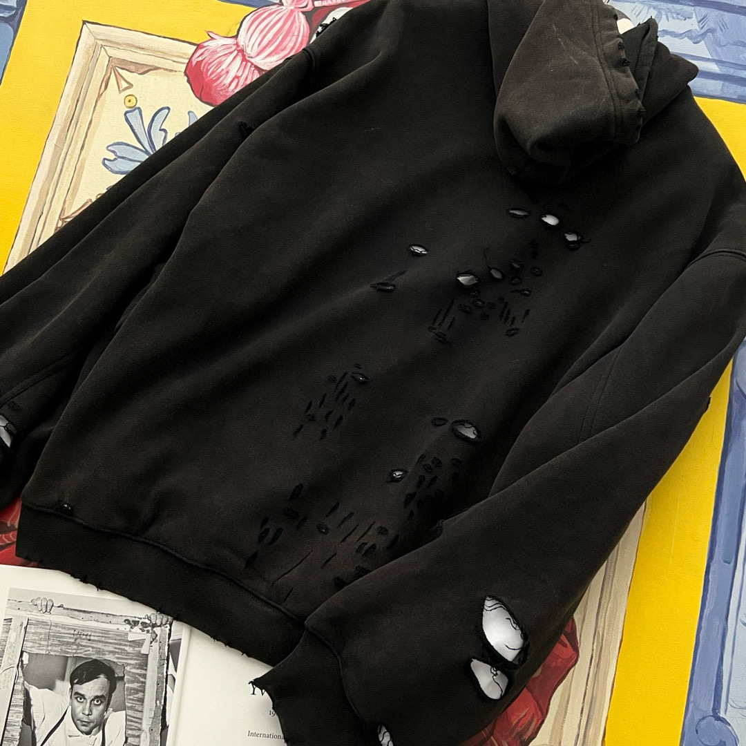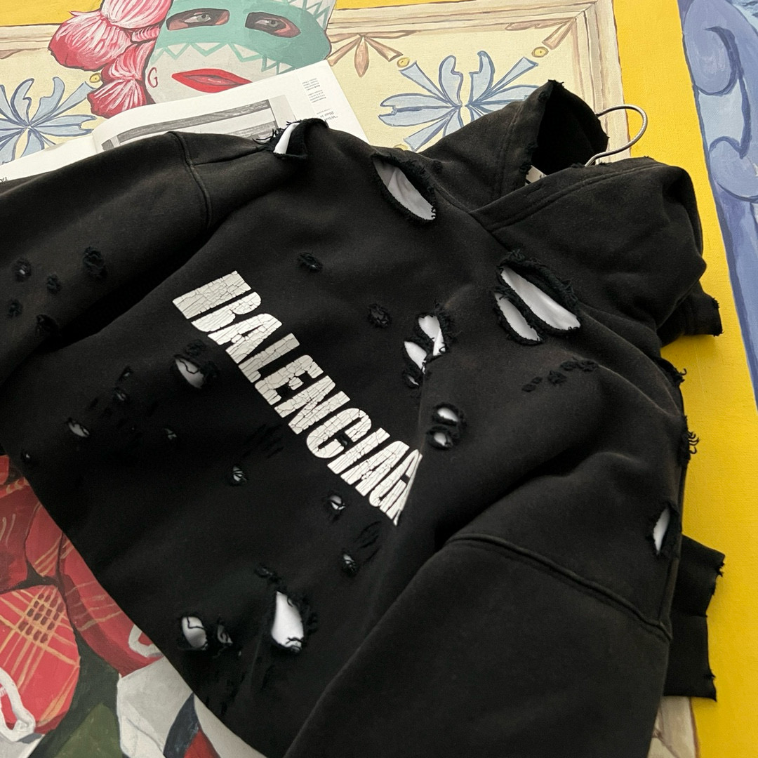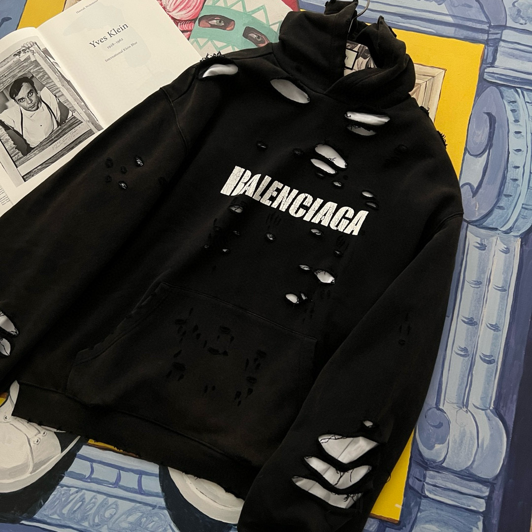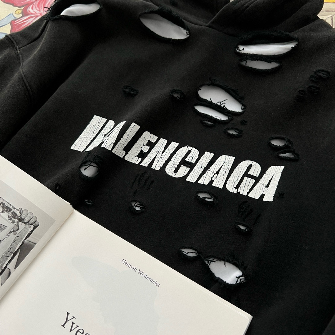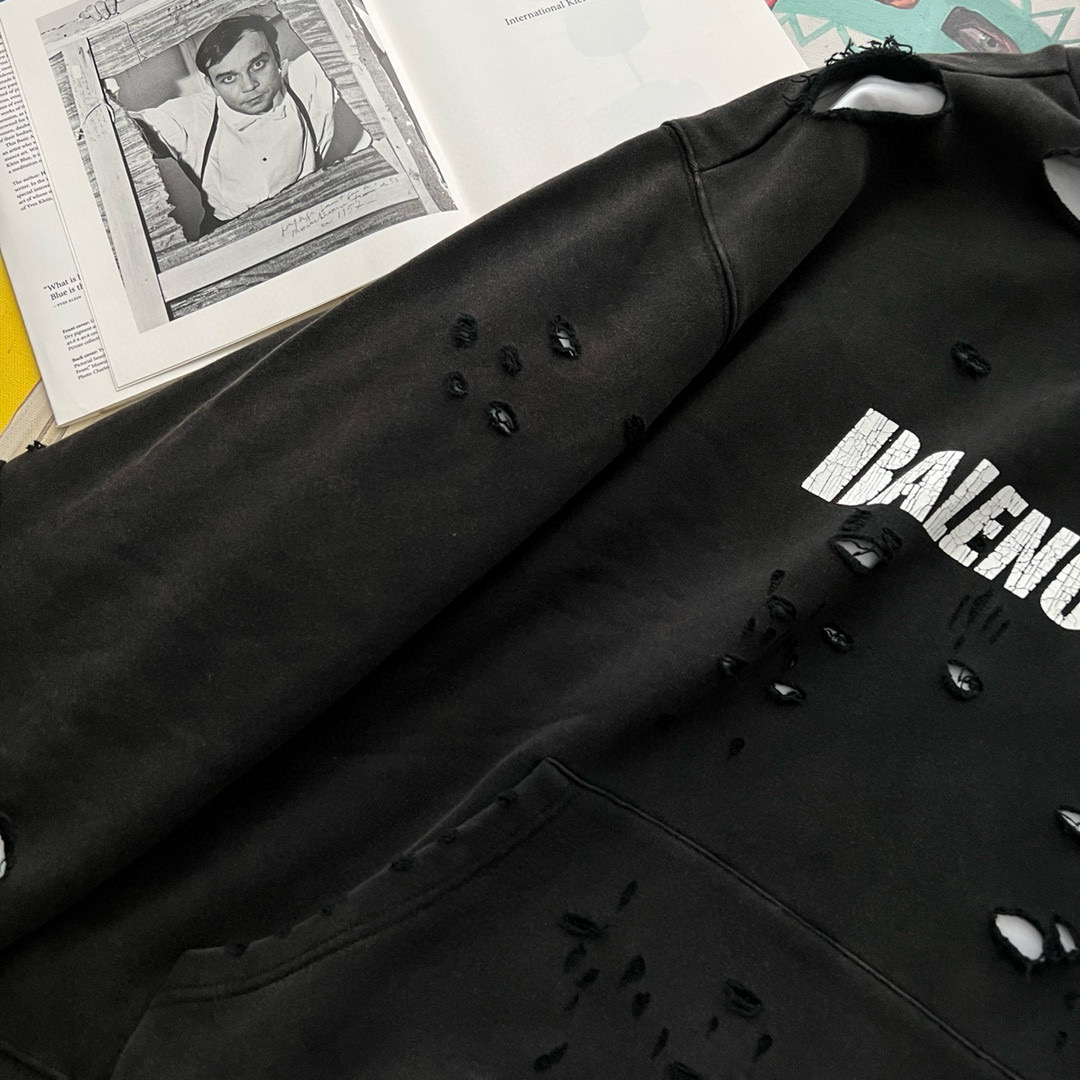 NIGO Balenciaga Men's Summer Black Letter Printed Torn Hooded Sweatshirt Pullover #nigo97624