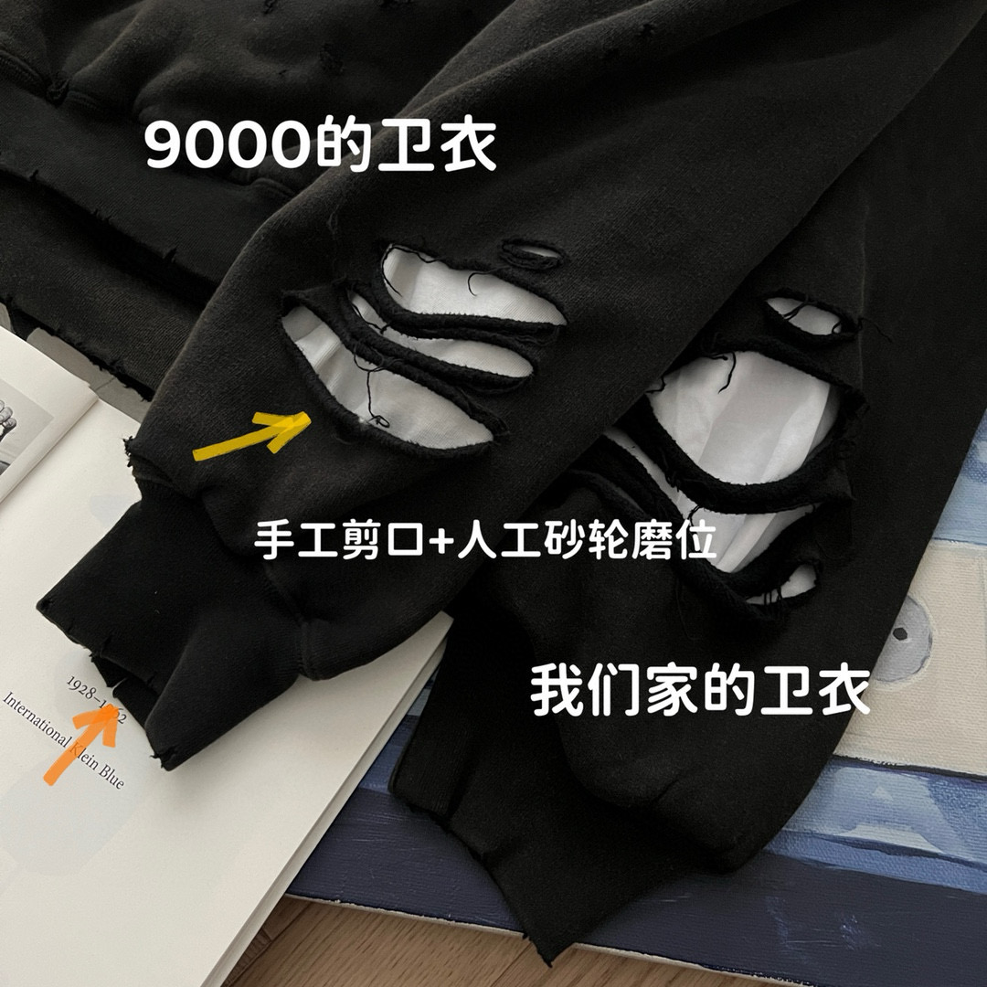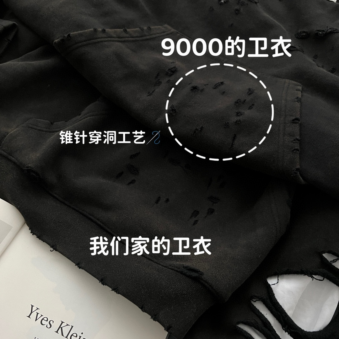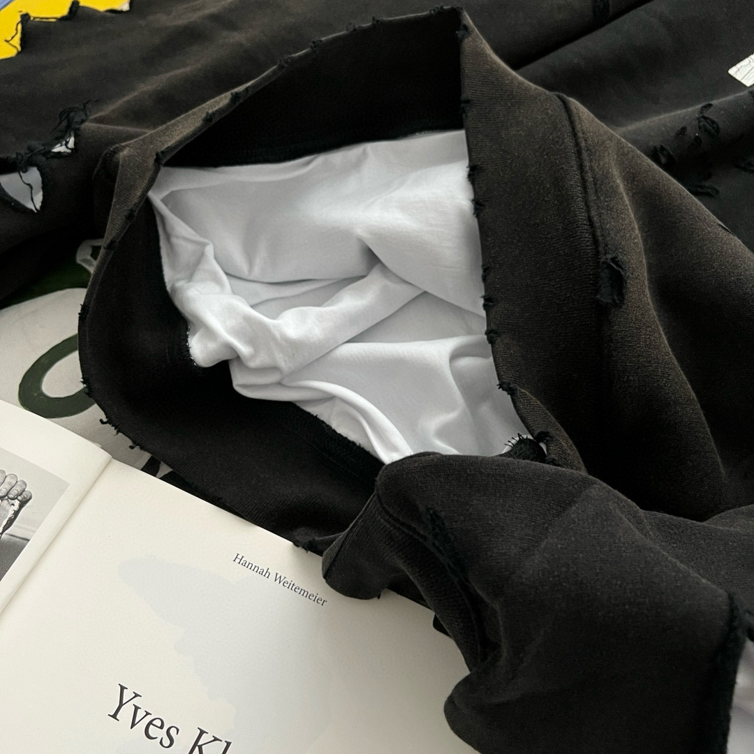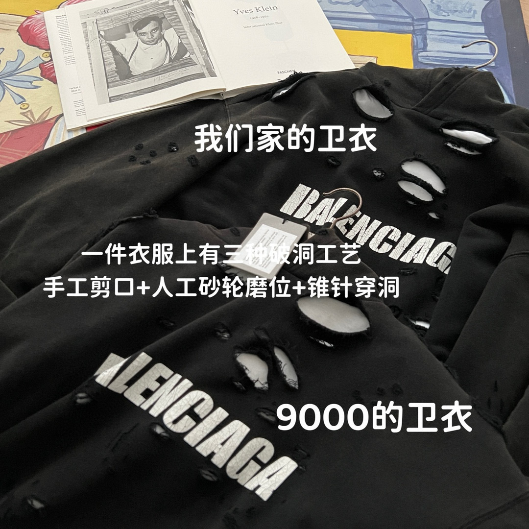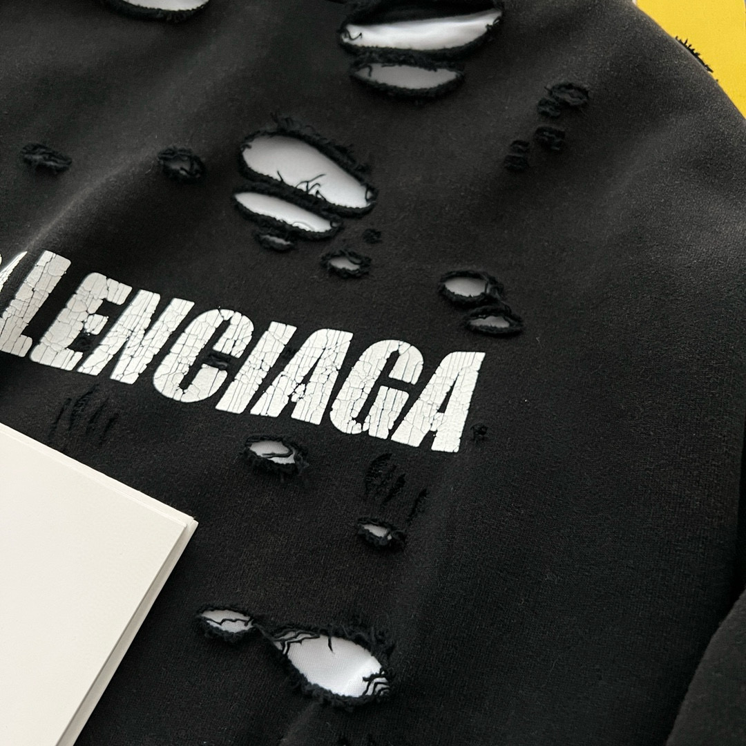 NIGO Balenciaga Men's Summer Black Letter Printed Torn Hooded Sweatshirt Pullover #nigo97624