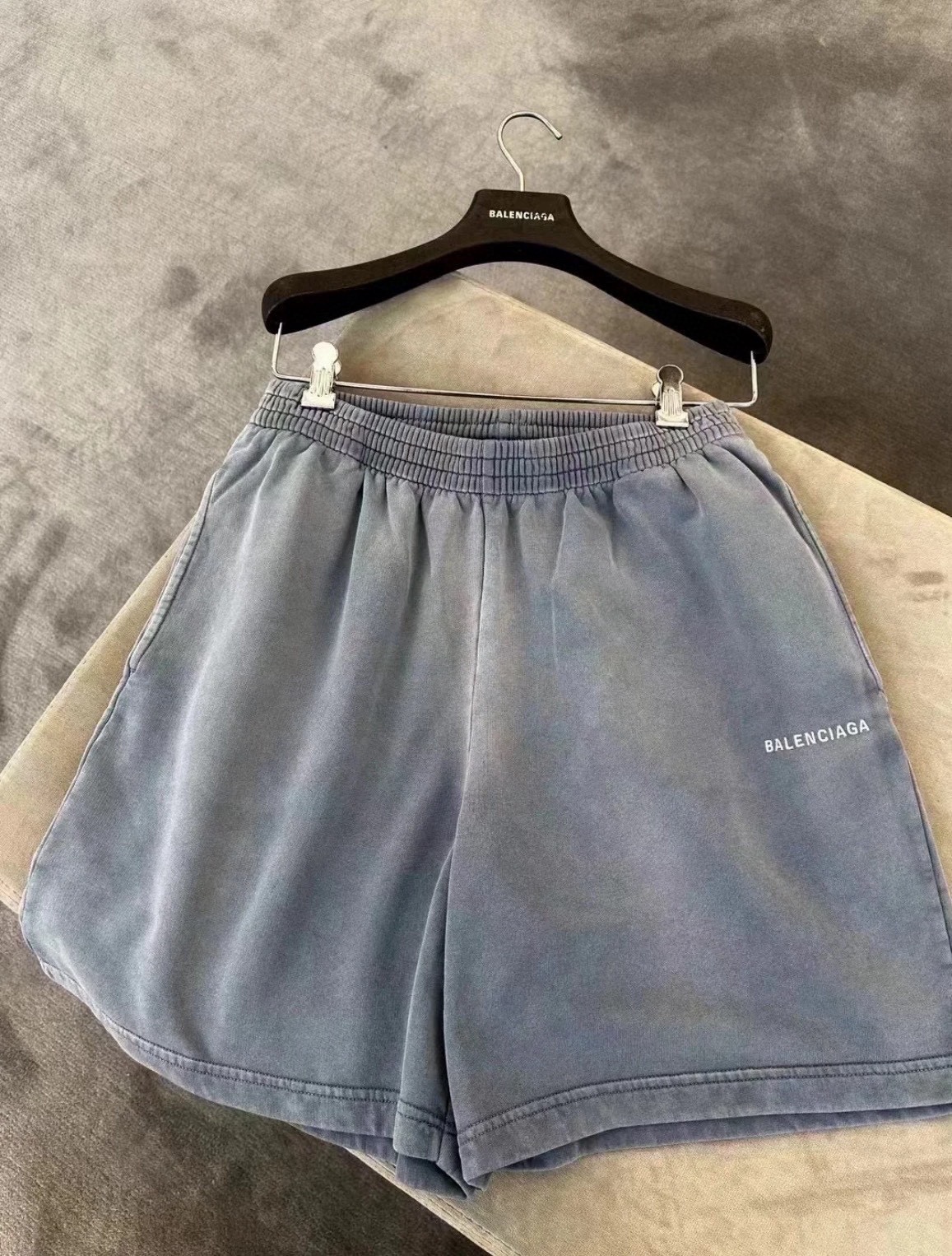 NIGO Balenciaga Men's Summer Blue Logo Embroidered Washed Vintage Stretch Waistband Shorts Pants #nigo72117