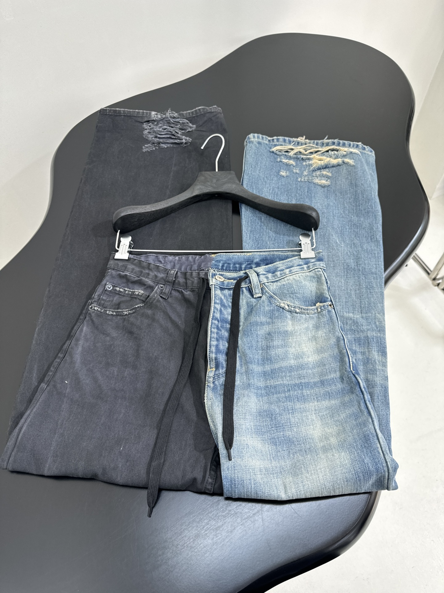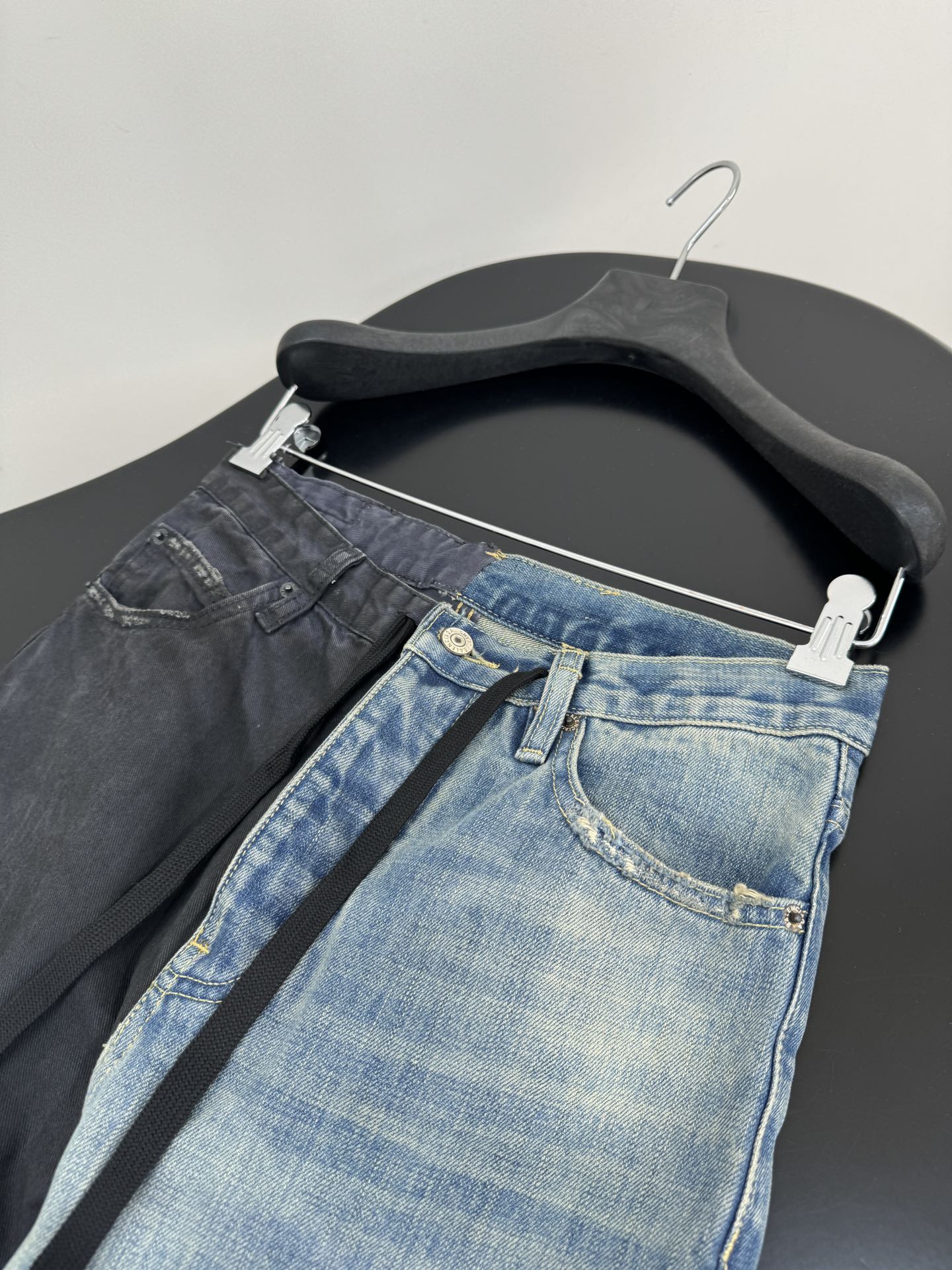 NIGO Balenciaga Men's Women's Colorblocking Denim Patchwork Old Damage Casual Loose Straight Leg Lace-Up Pants Ngvp #nigo1818