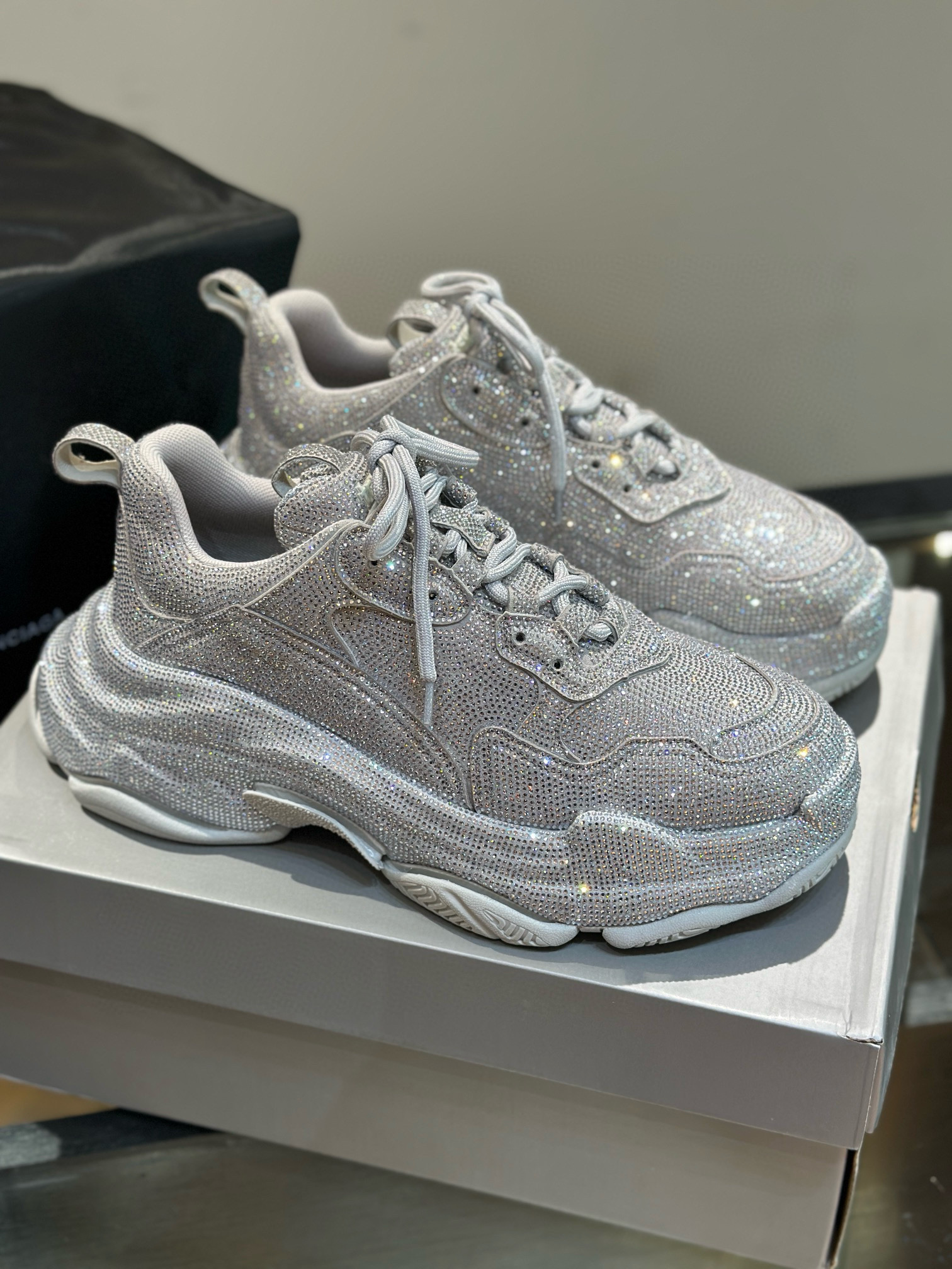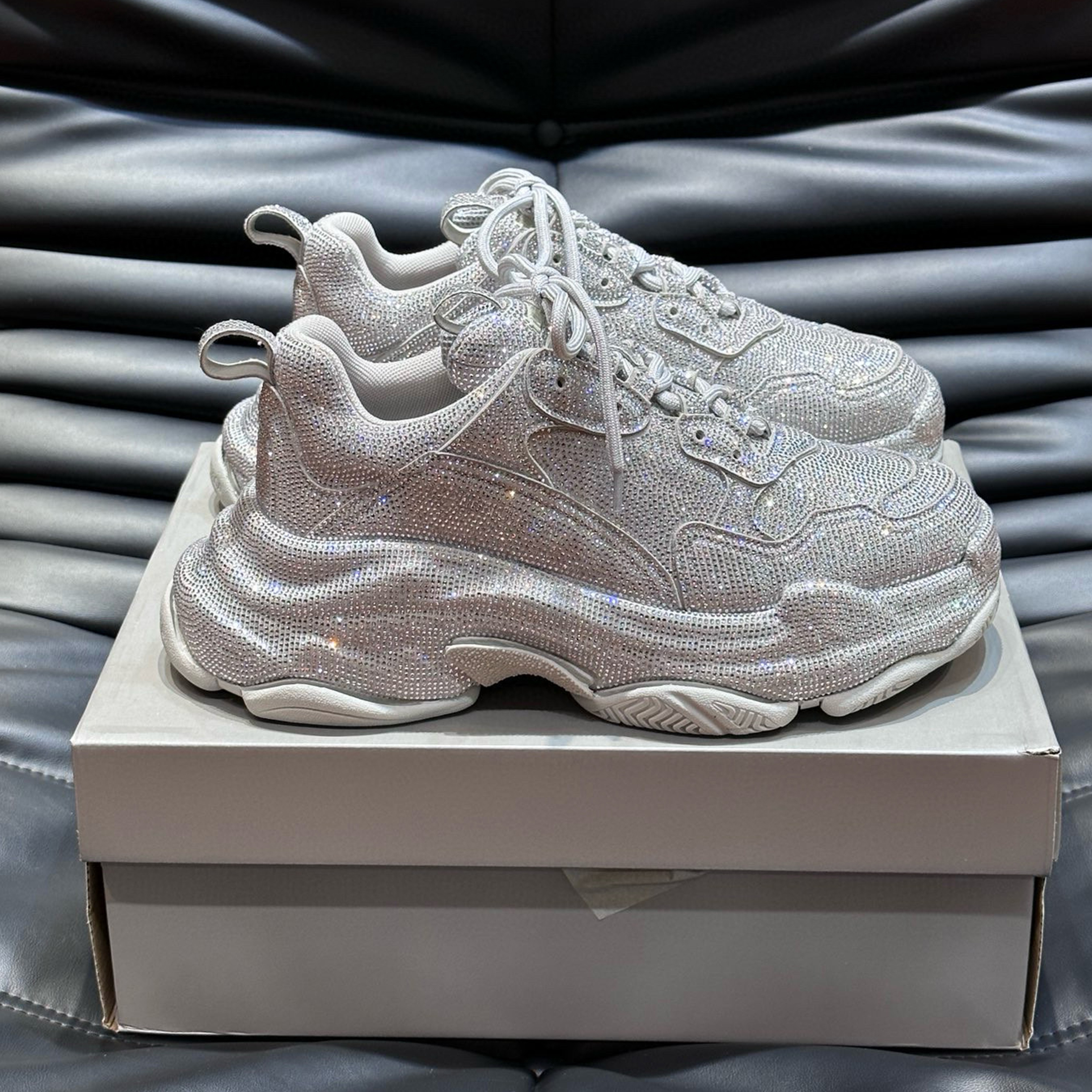 NIGO Balenciaga Men's Women's Fashion Trend Full Diamonds Pop Shoes Casual Comfortable Black Lace-up Sneakers Ngvp #nigo8186