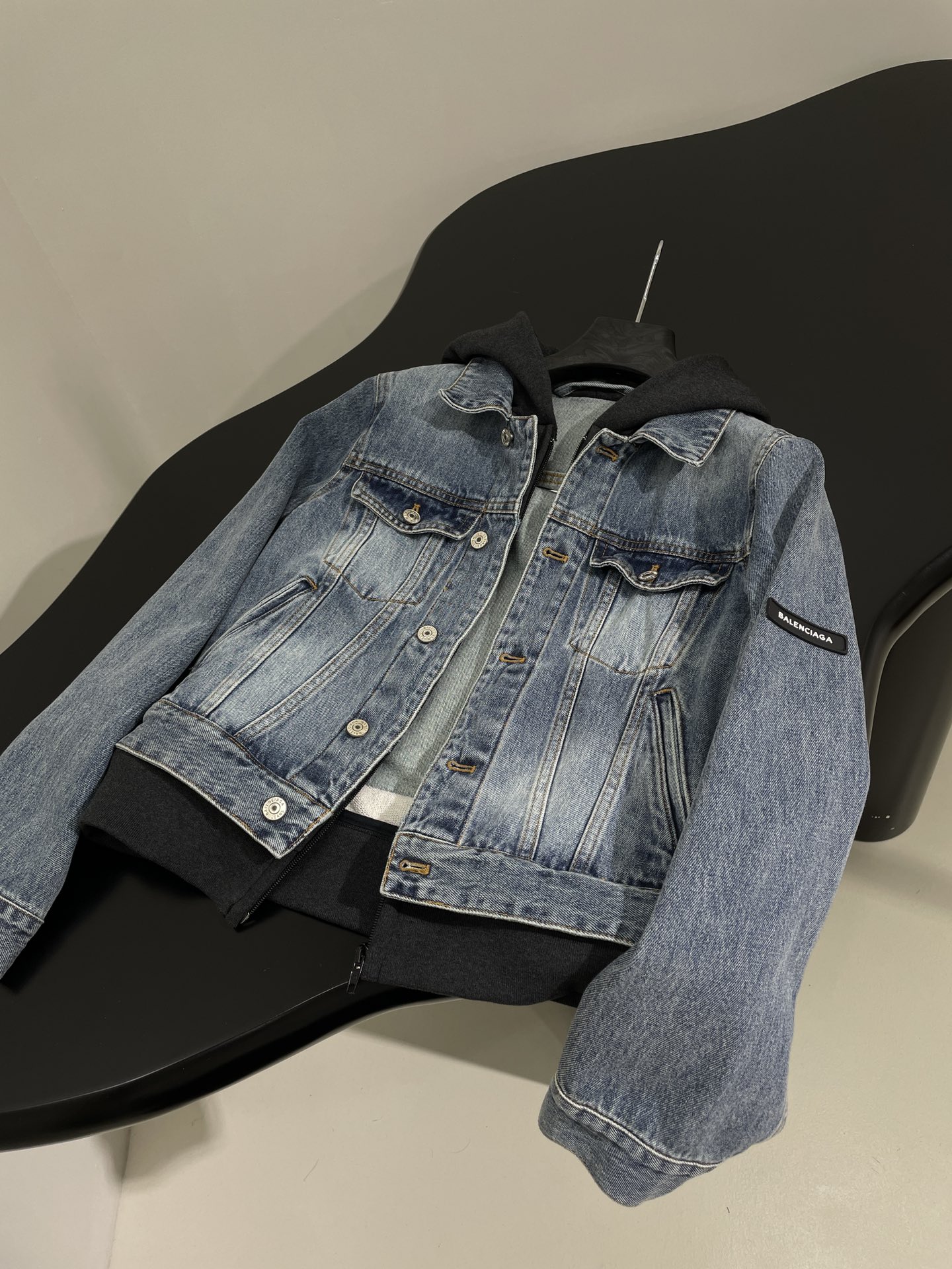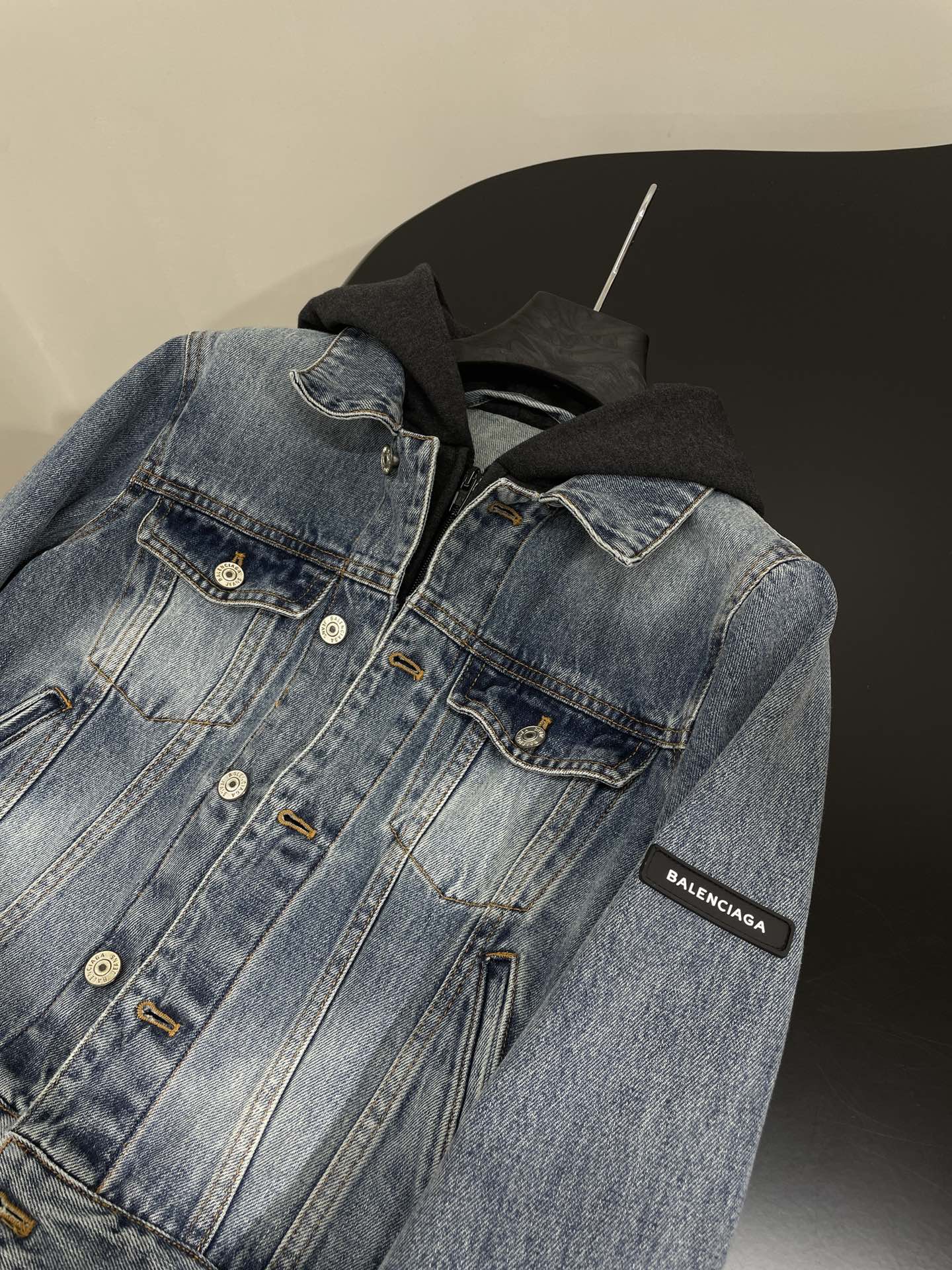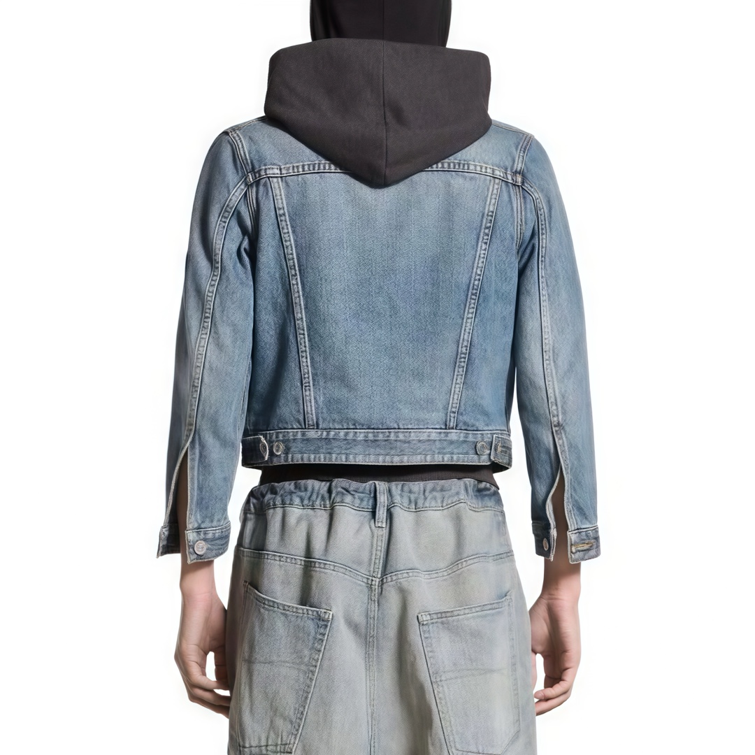NIGO Balenciaga Men's Women's Spring and Autumn Solid Color Lapel Fit Single Breasted Long Sleeve Hooded Sweatshirt Spliced Denim Jacket Coat Ngvp #nigo8749