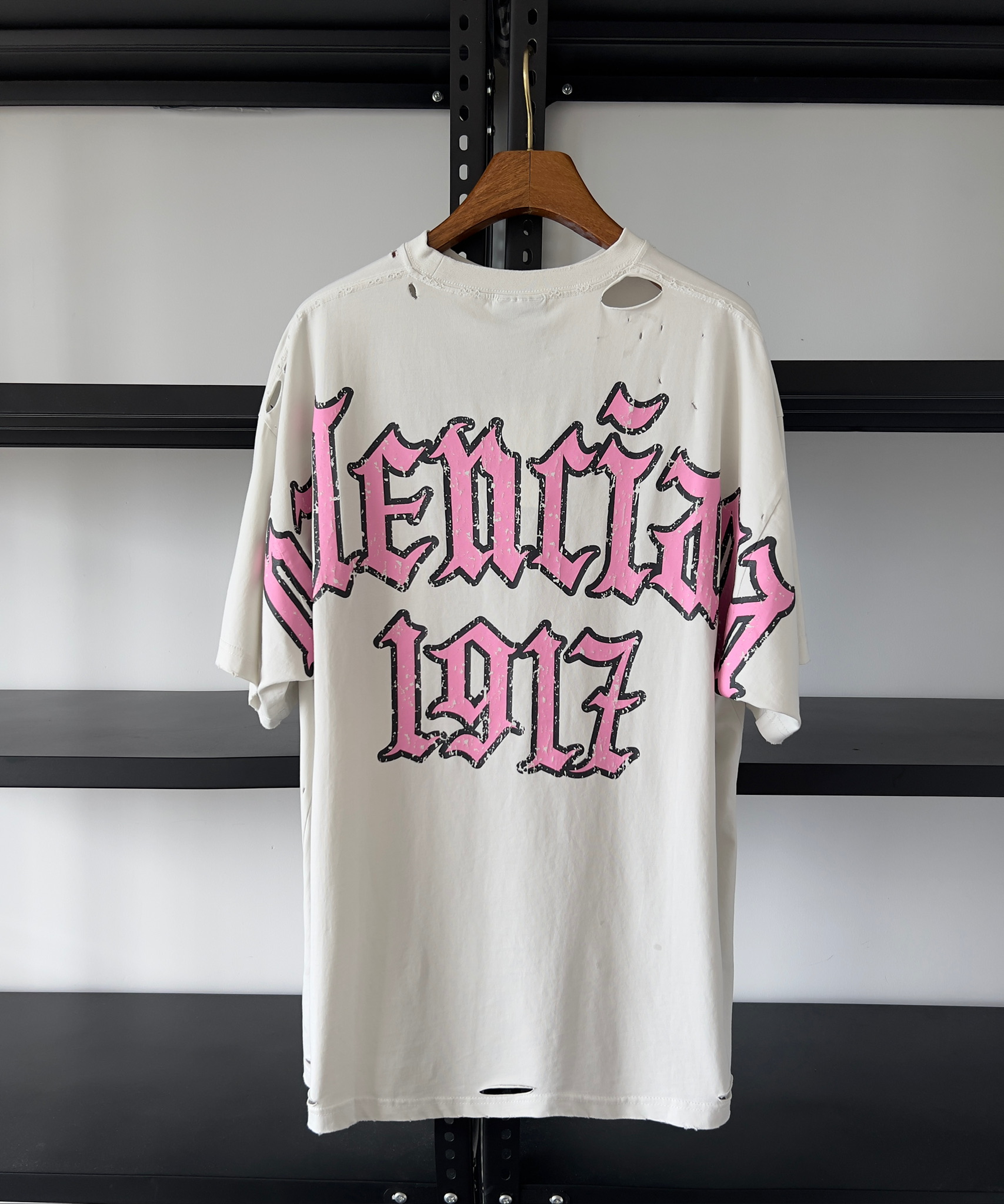 NIGO Balenciaga Men's Women's Summer Retro Back Printed Hole Breaking Round Neck Solid Color Loose Short Sleeve T-Shirt #nigo81296