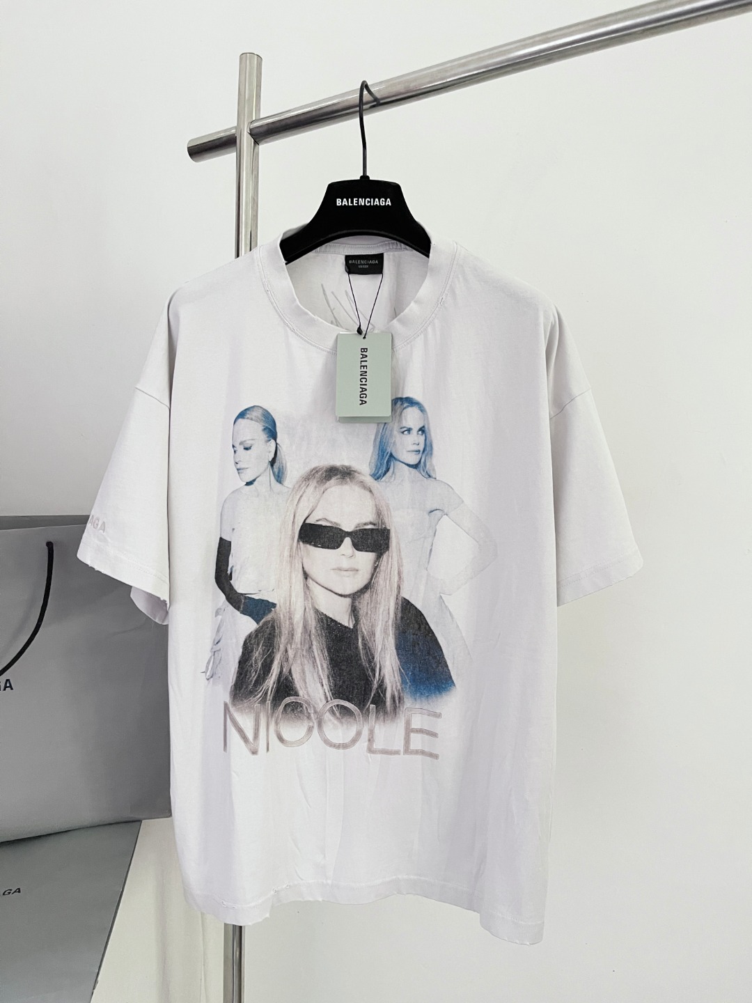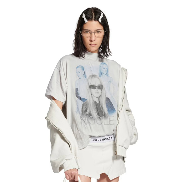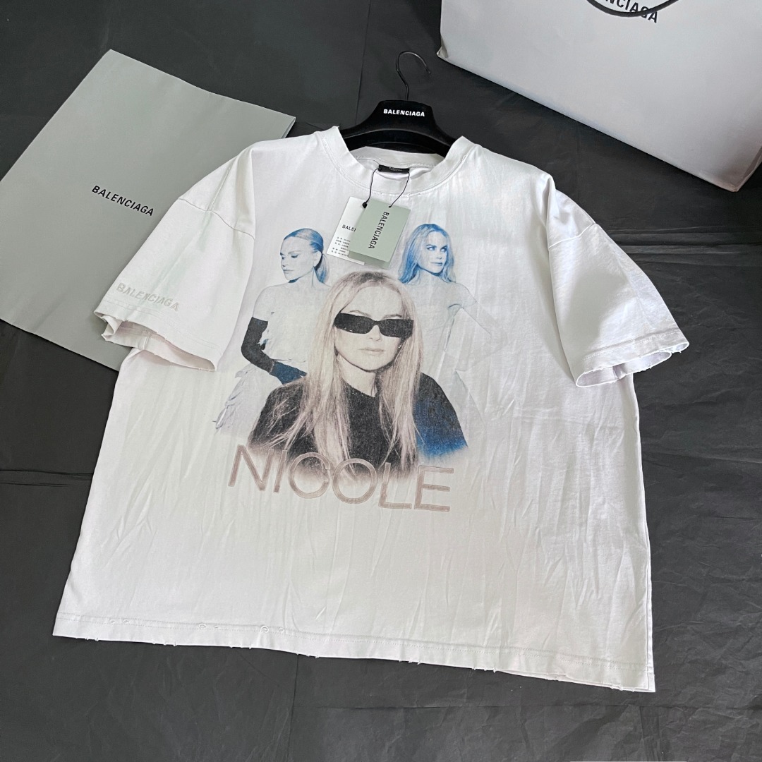 NIGO Balenciaga Nicole Kidman Ambassador Signature Portrait Men's Women's Summer Solid Color Pleated Washed Casual Loose Short Sleeve NICOLE BOXY T-Shirt Ngvp #nigo1482