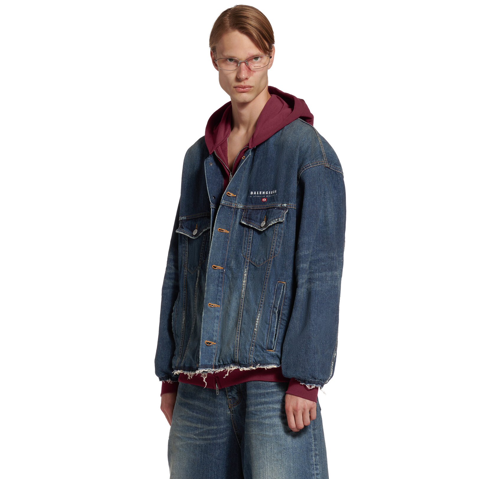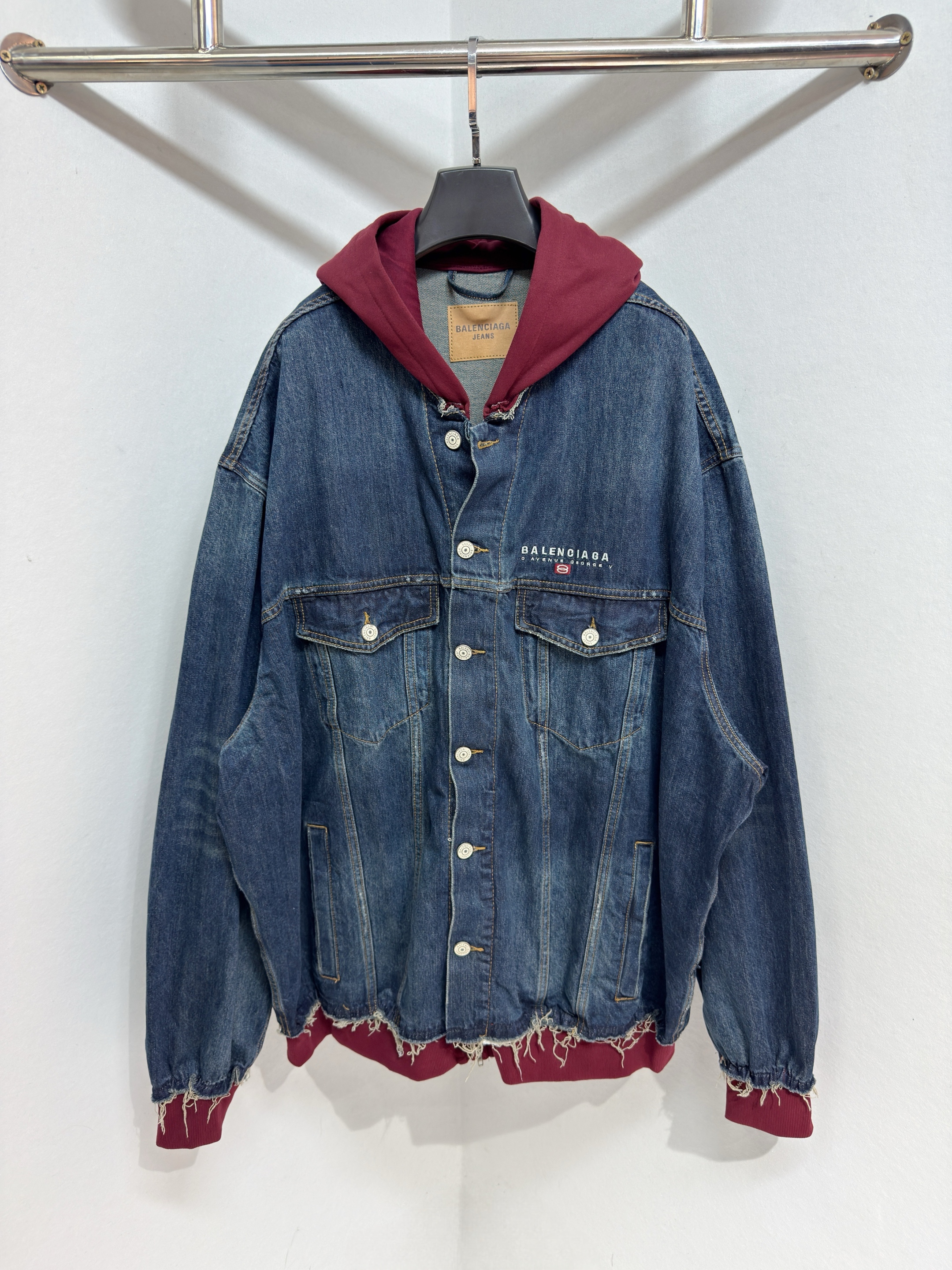 NIGO Balenciaga PATCHED Men's And Women's Spring/Fall Fashion Contrast Color Hooded Single Breasted Button-Up Embroidered Denim Jacket #nigo78995