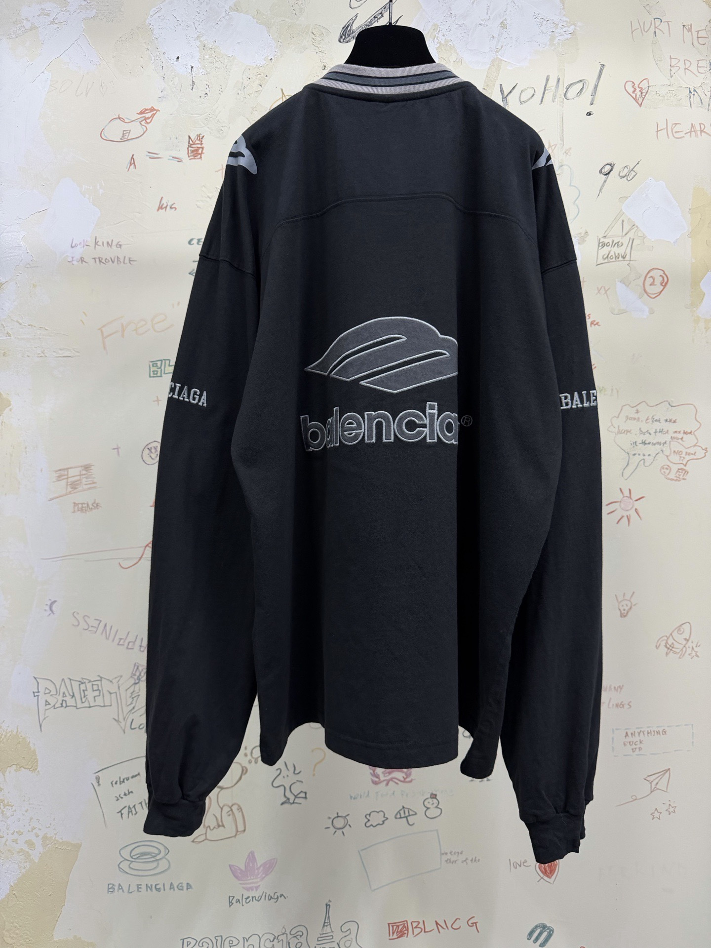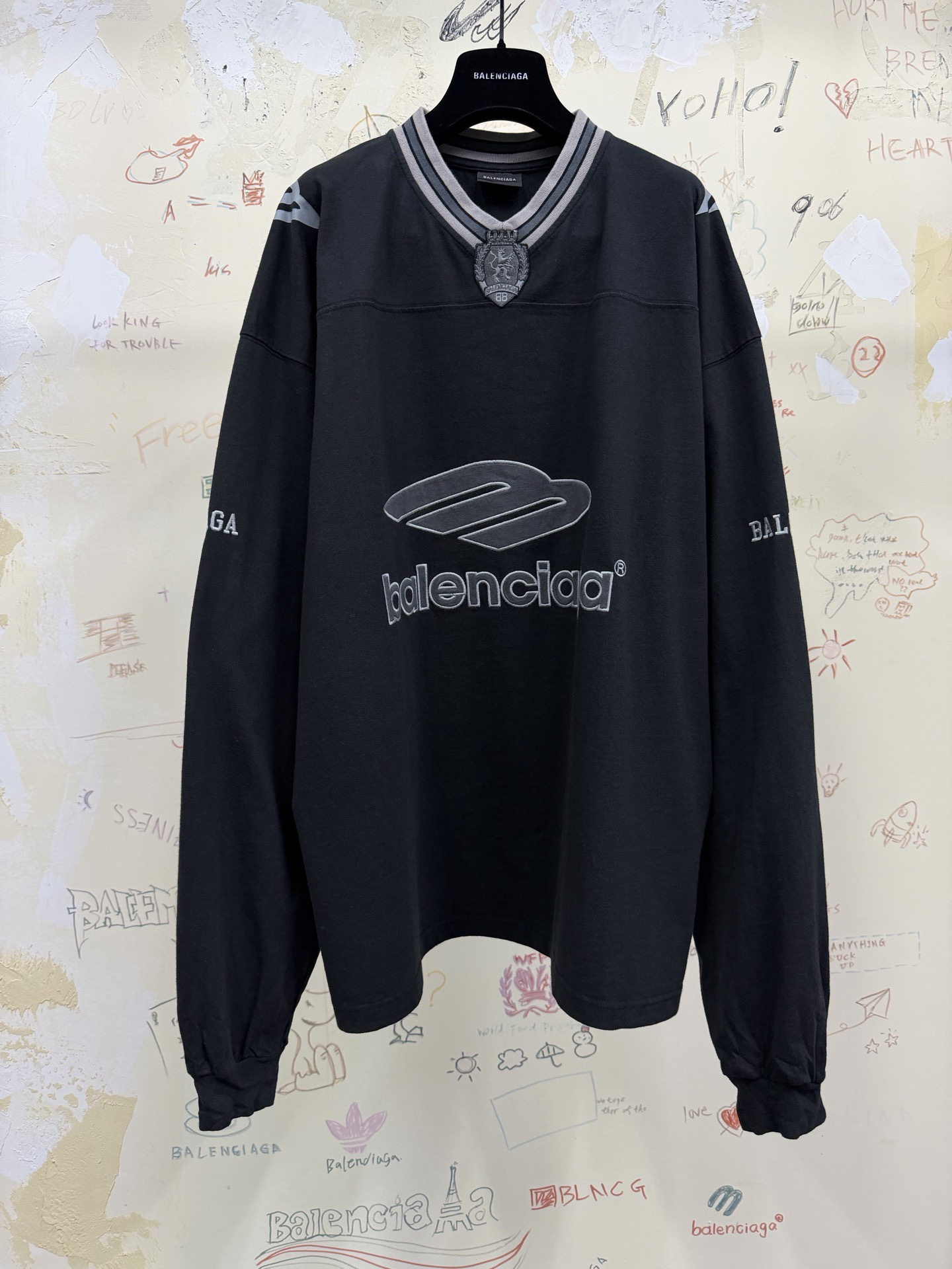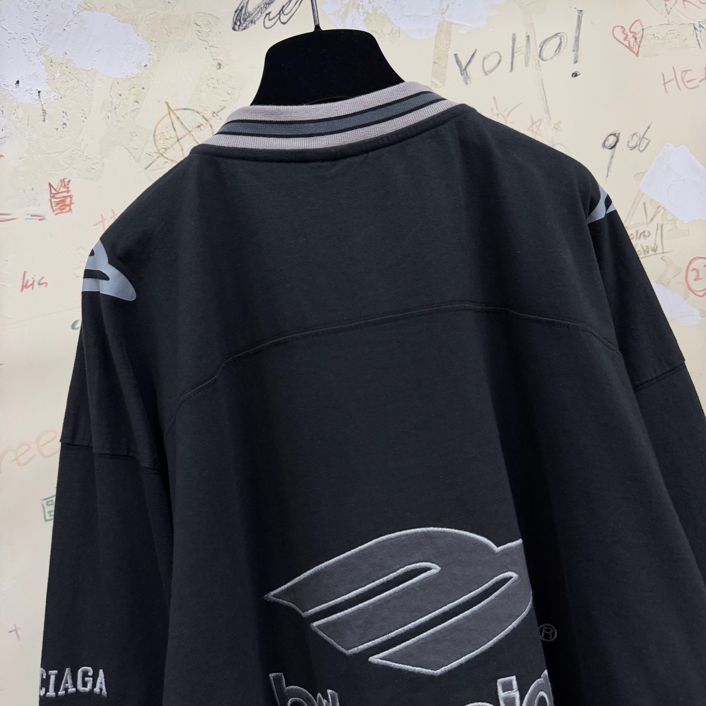 NIGO Balenciaga Top-Quality Version Men's 3b Football Long Sleeve V-neck T-shirt Black Anthracite #nigo336375
