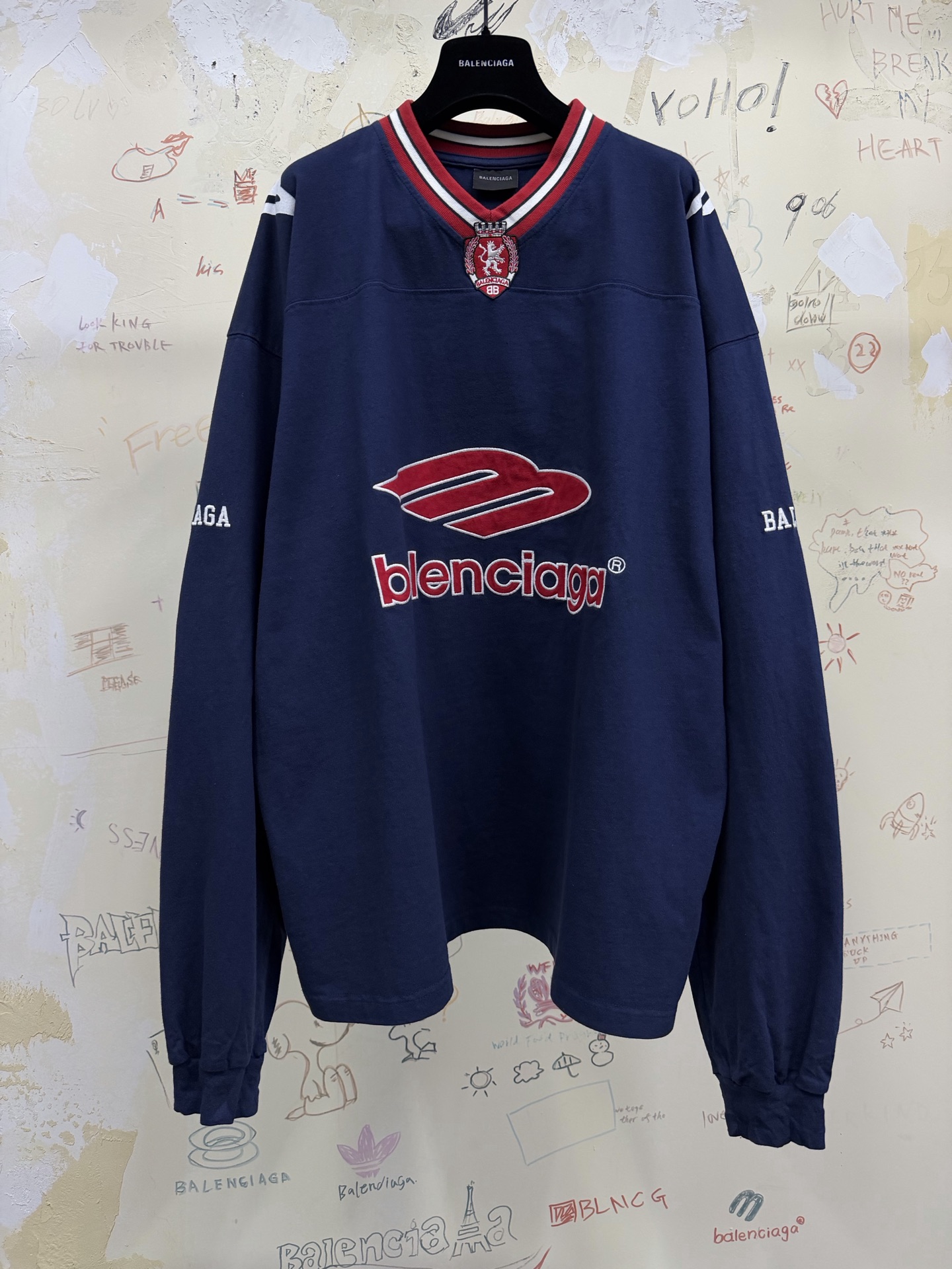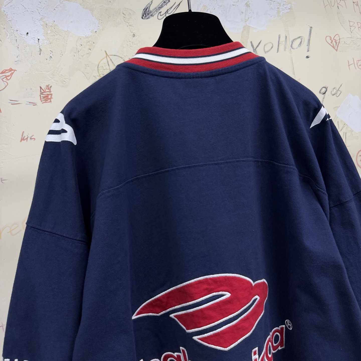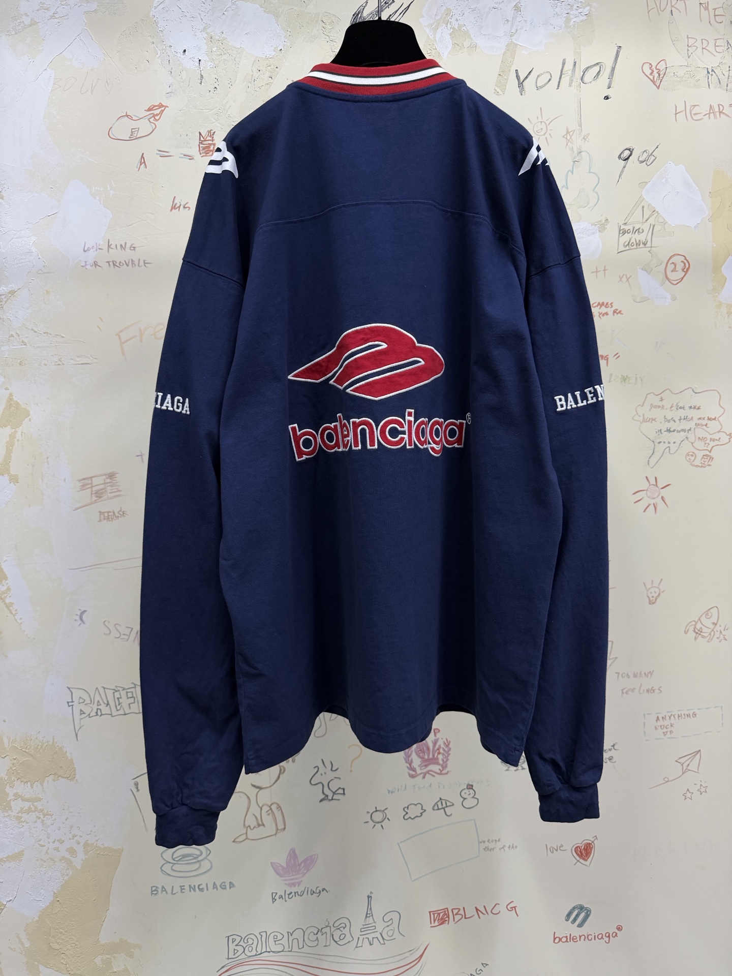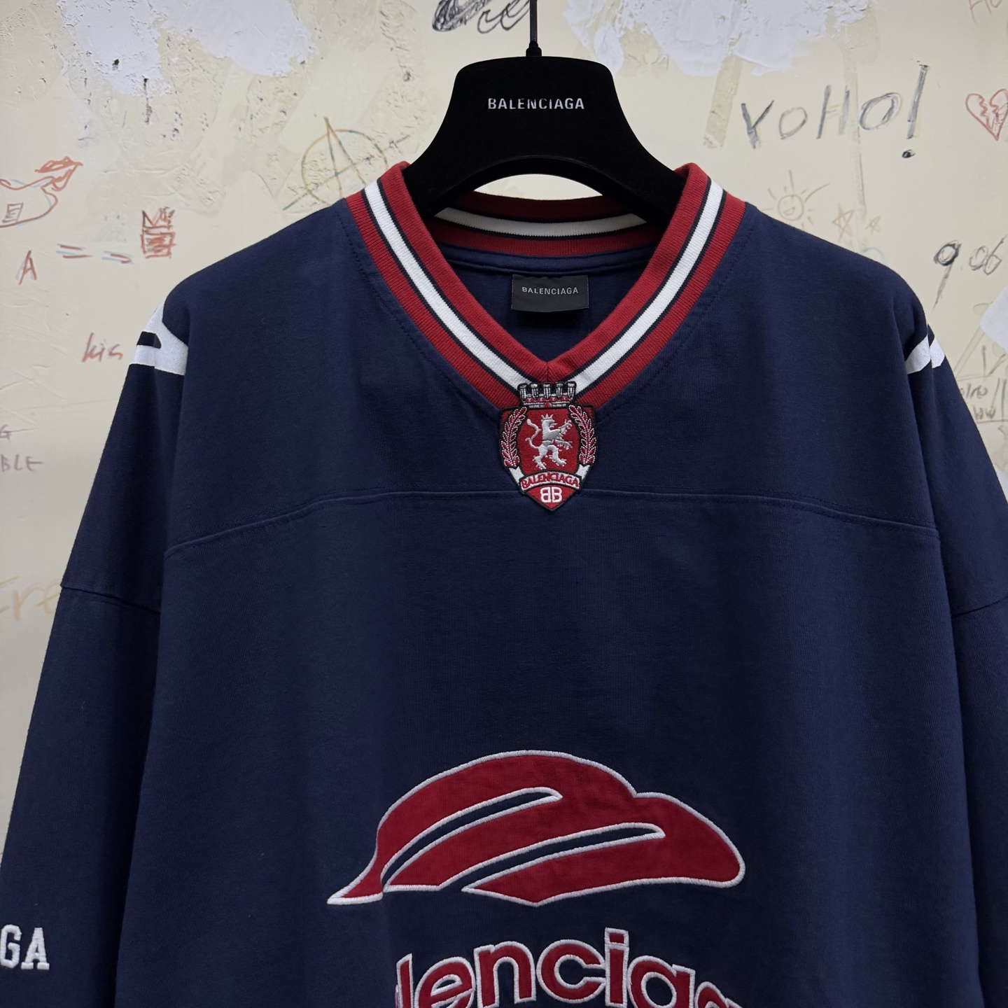 NIGO Balenciaga Top-Quality Version Men's 3b Football Long Sleeve V-neck T-shirt Black Anthracite #nigo336375
