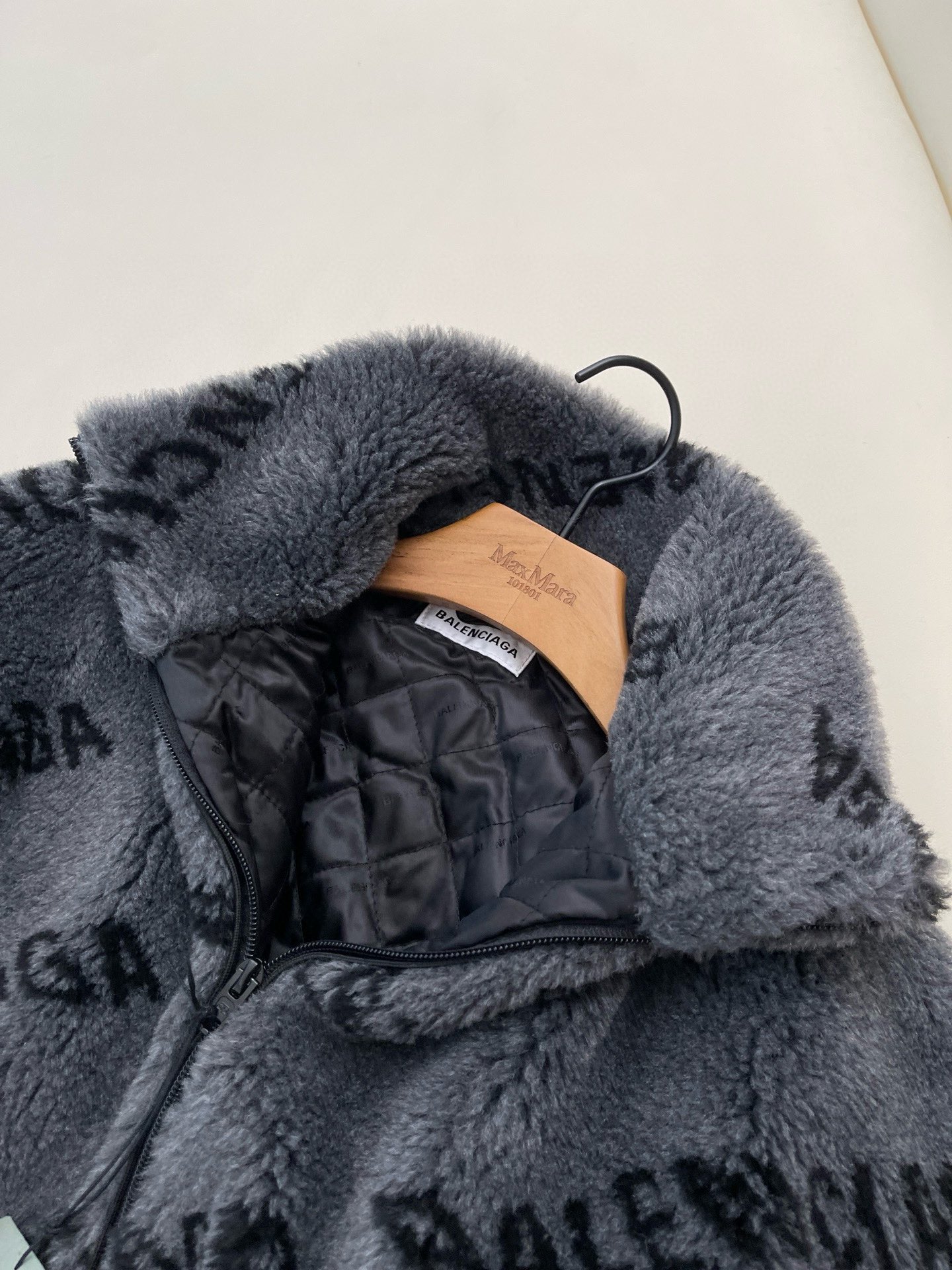 NIGO Balenciaga Women's Autumn and Winter Letter Printed Solid Color Lamb's Wool Zipper Long Sleeve Jacket #nigo73875