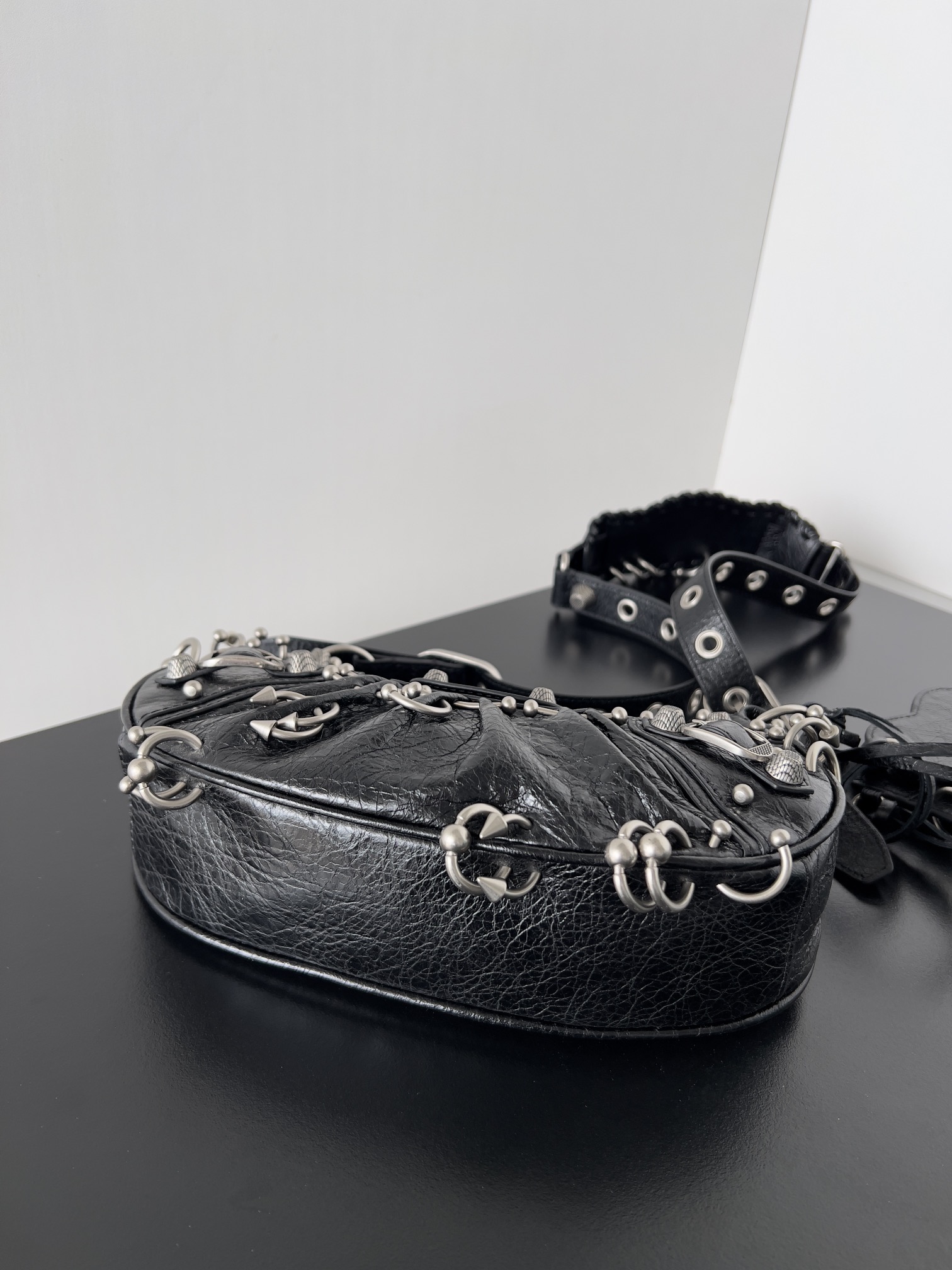 NIGO Balenciaga Women's Black Le Cagole XS Perforated Half Moon Underarm Bag Tote Casual Shoulder Bag 671309210G81000 Ngvp #nigo7915