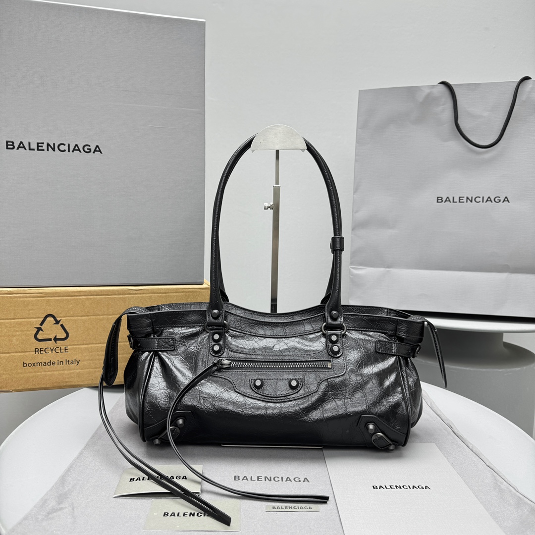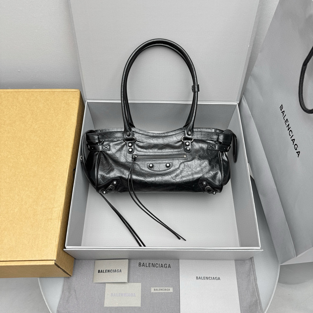 NIGO Balenciaga Women's Le City Bag East-West Motorcycle Bag Solid Color Leather Shoulder Bag Handbag Bags 8457042ABEK1000 #nigo81473