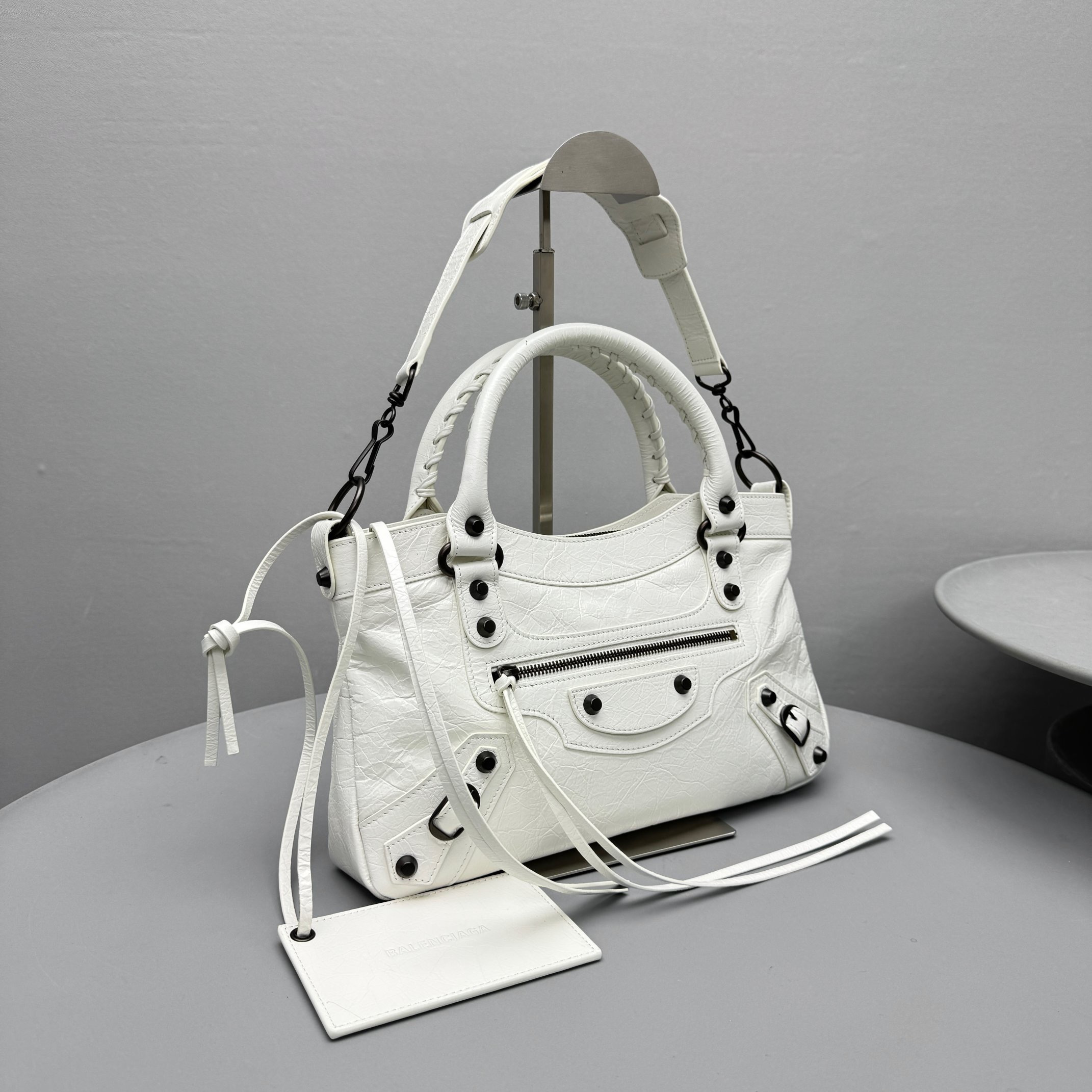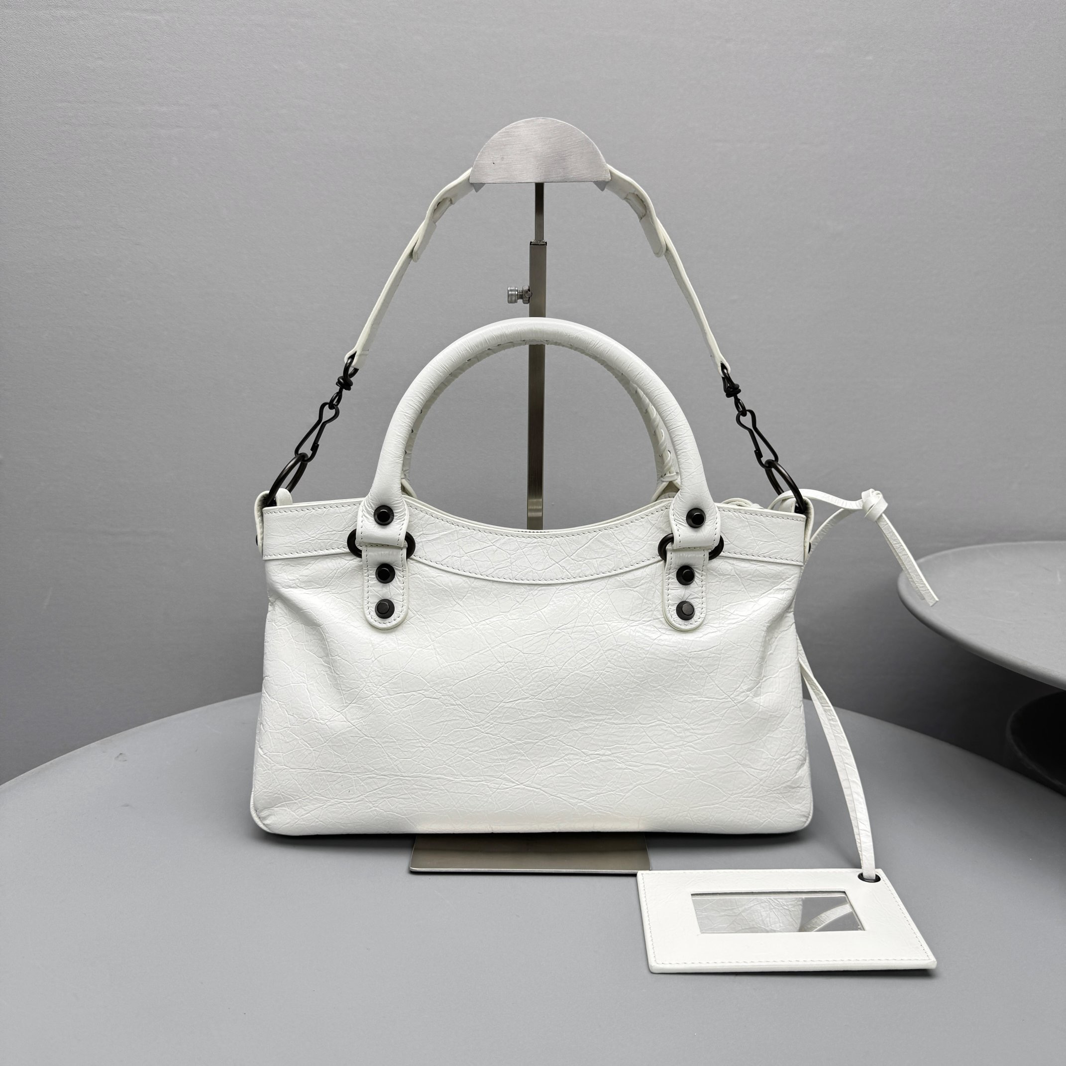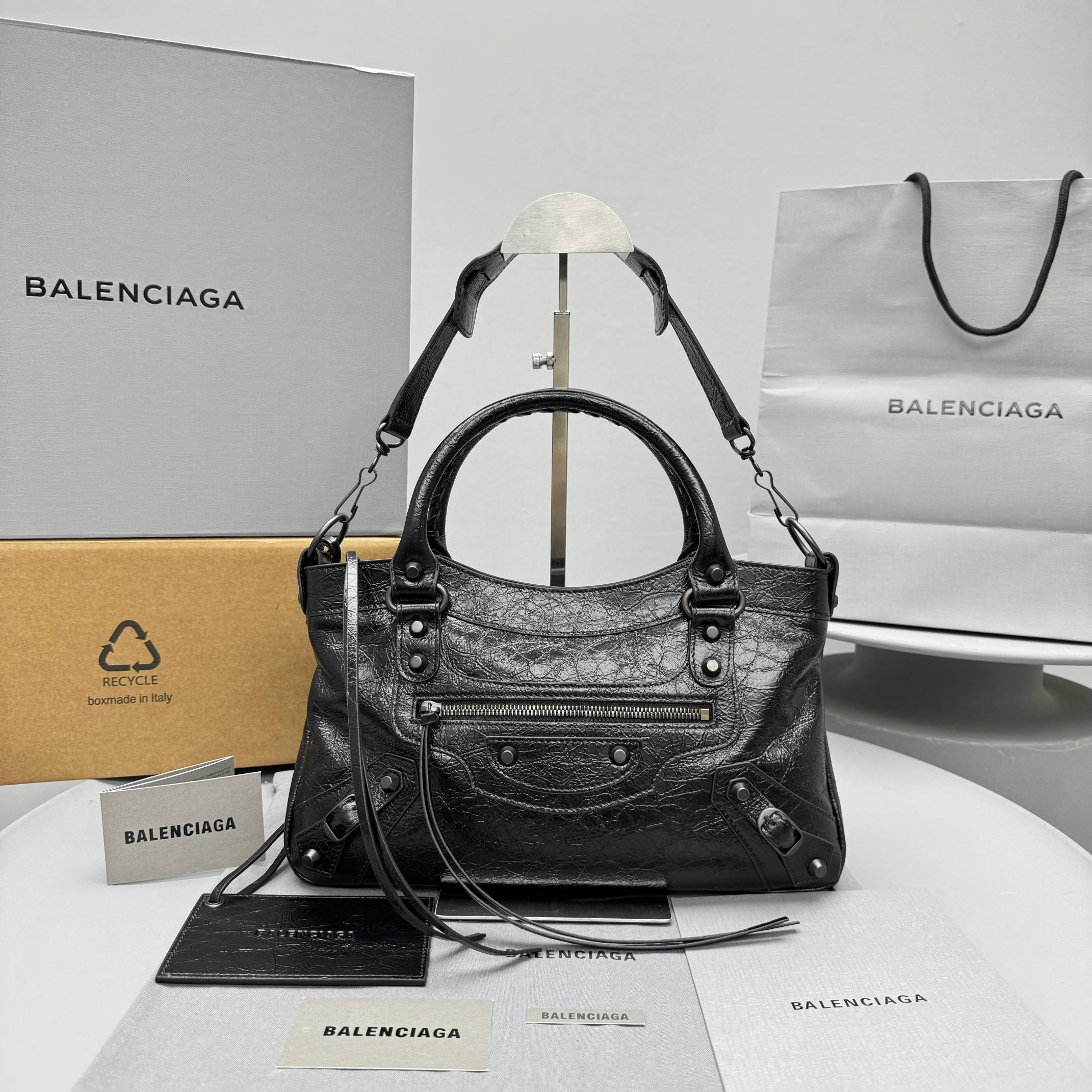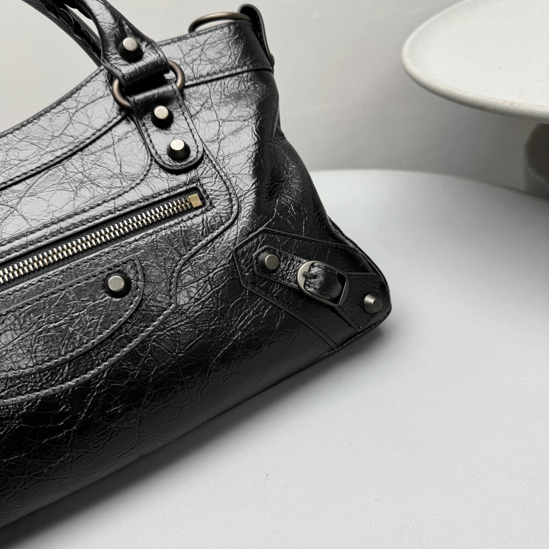 This Balenciaga handbag showcases the brand's exceptional craftsmanship and attention to detail. this piece combines timeless luxury with modern style.
