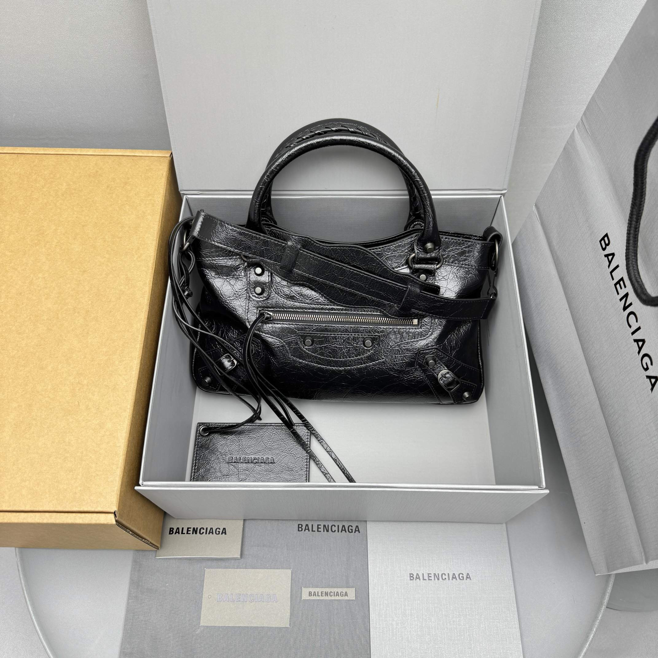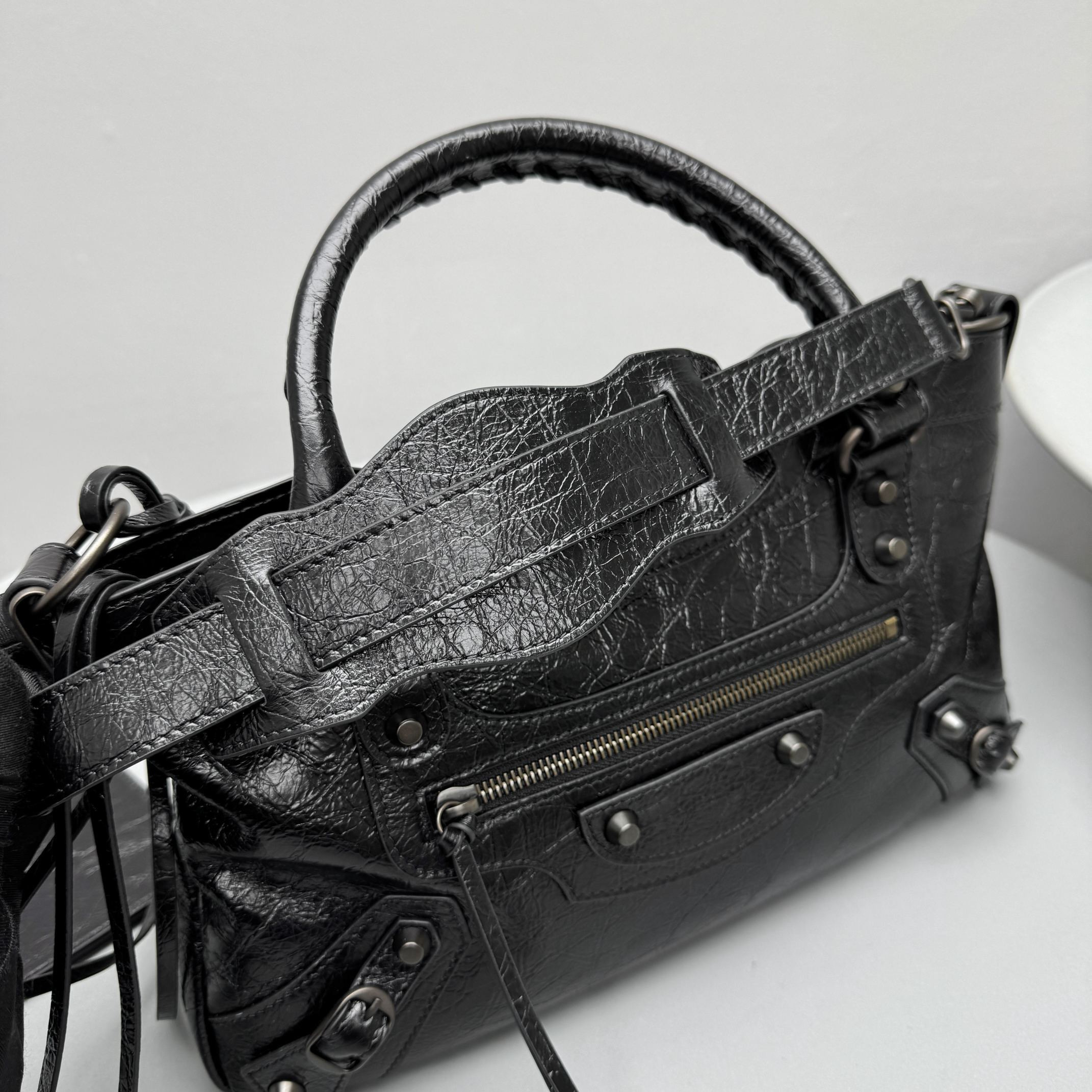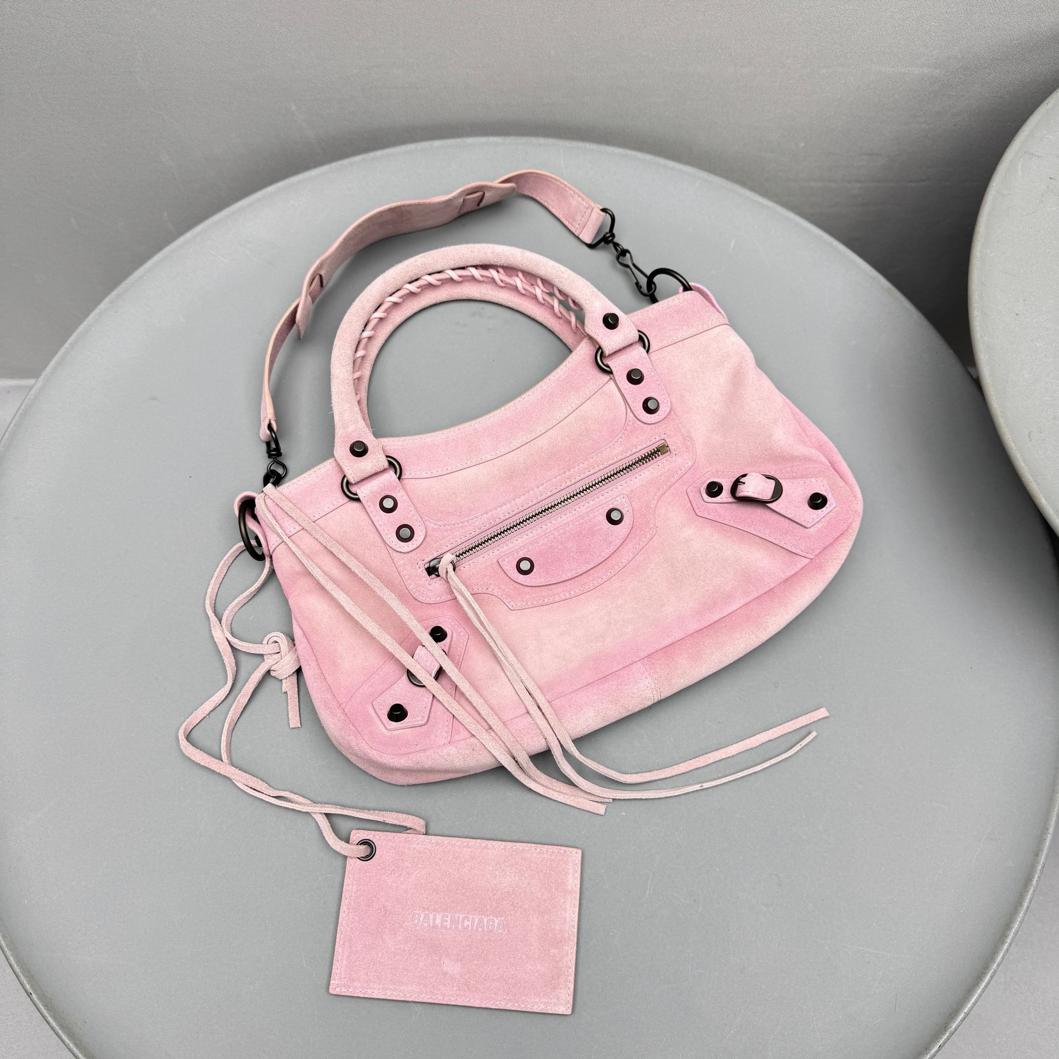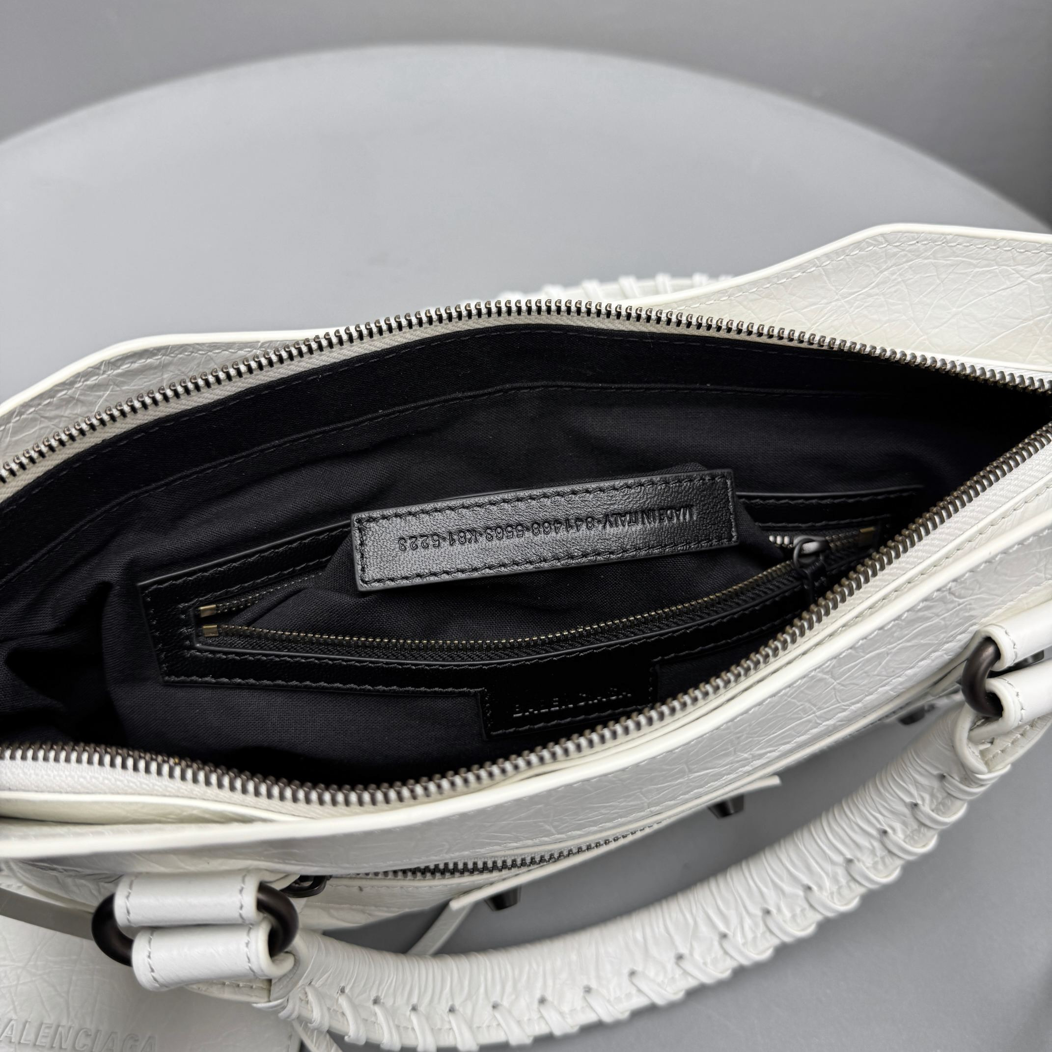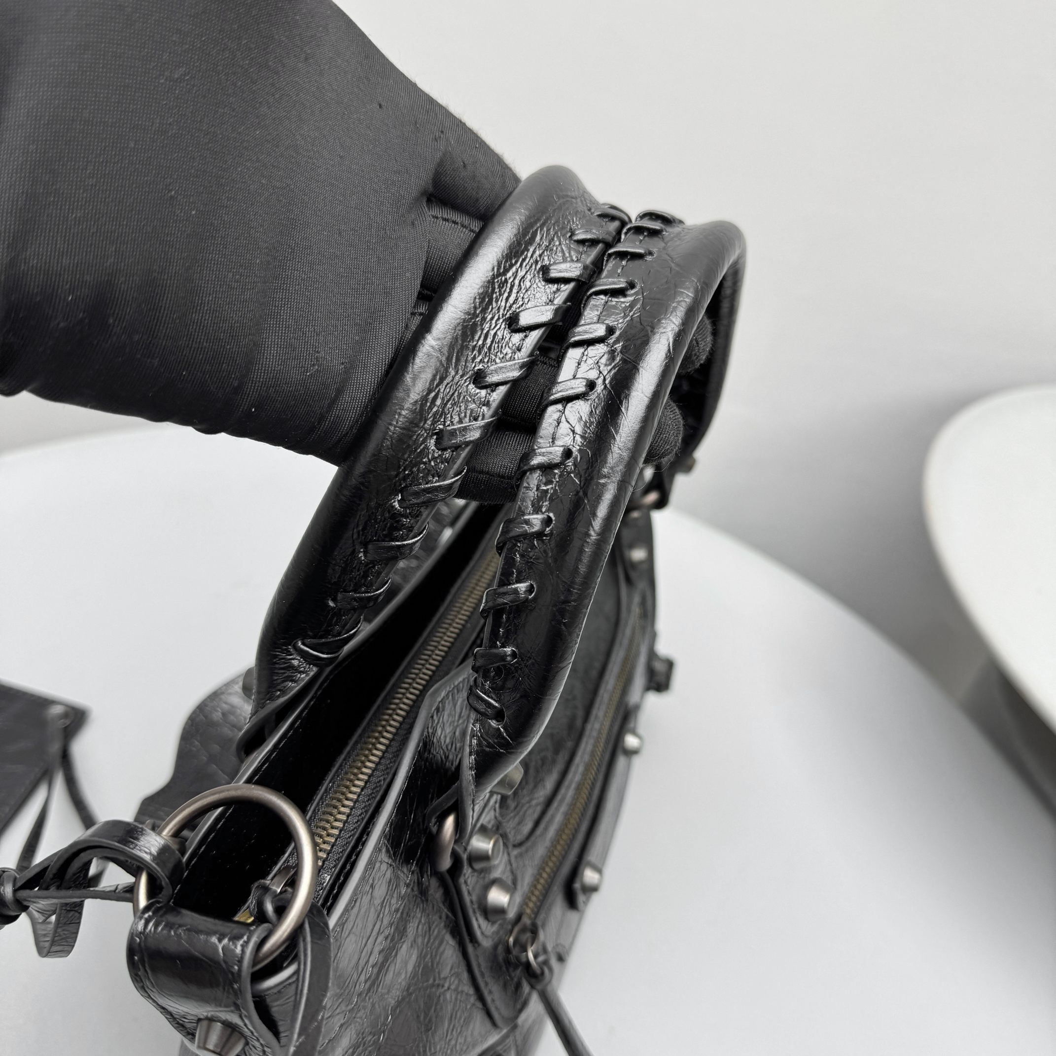 This Balenciaga handbag showcases the brand's exceptional craftsmanship and attention to detail. this piece combines timeless luxury with modern style.
