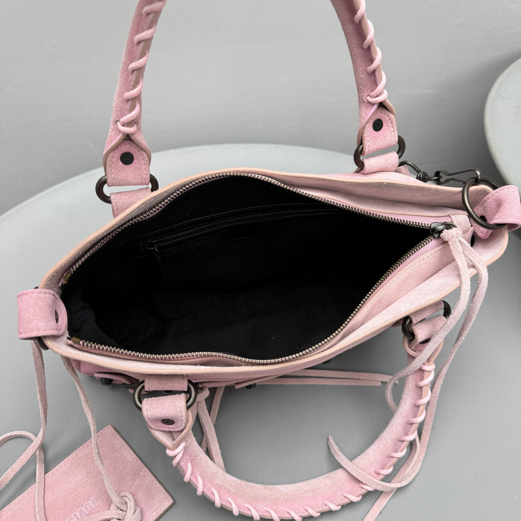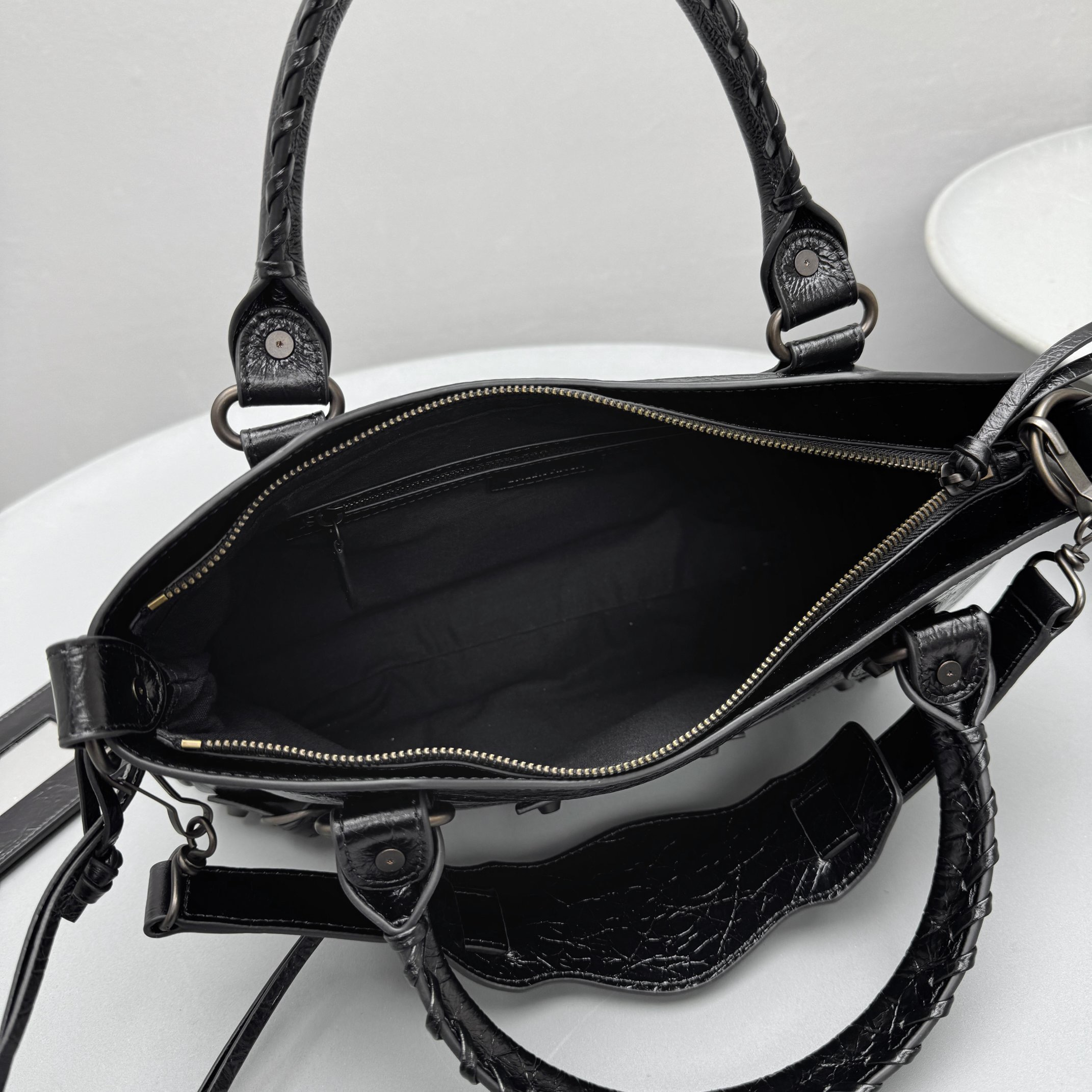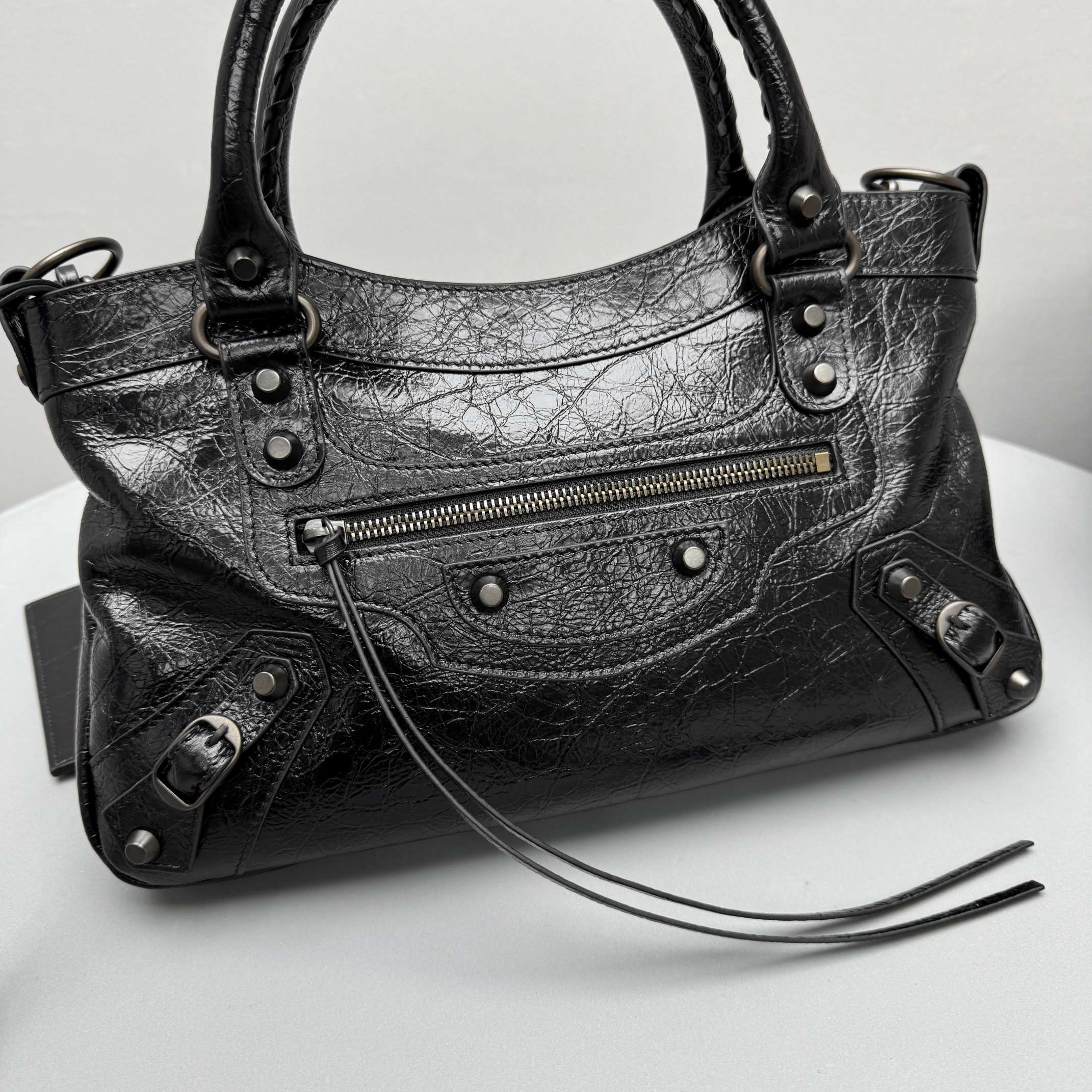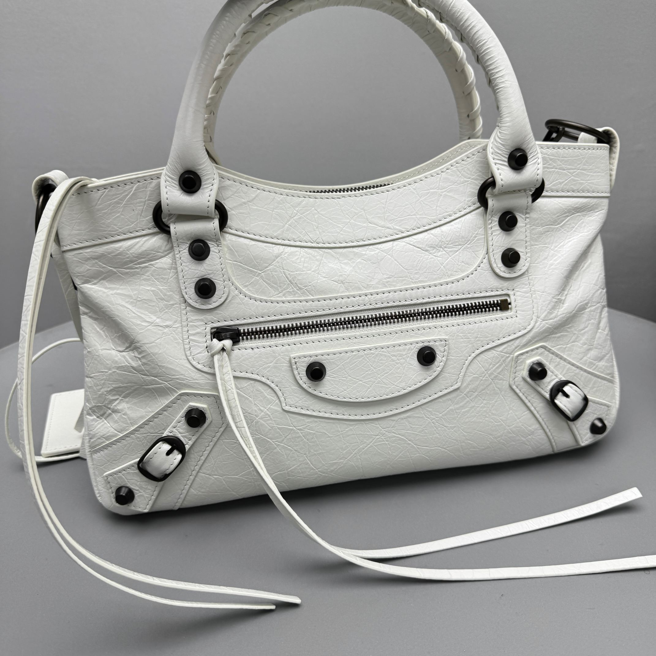 This Balenciaga handbag showcases the brand's exceptional craftsmanship and attention to detail. this piece combines timeless luxury with modern style.