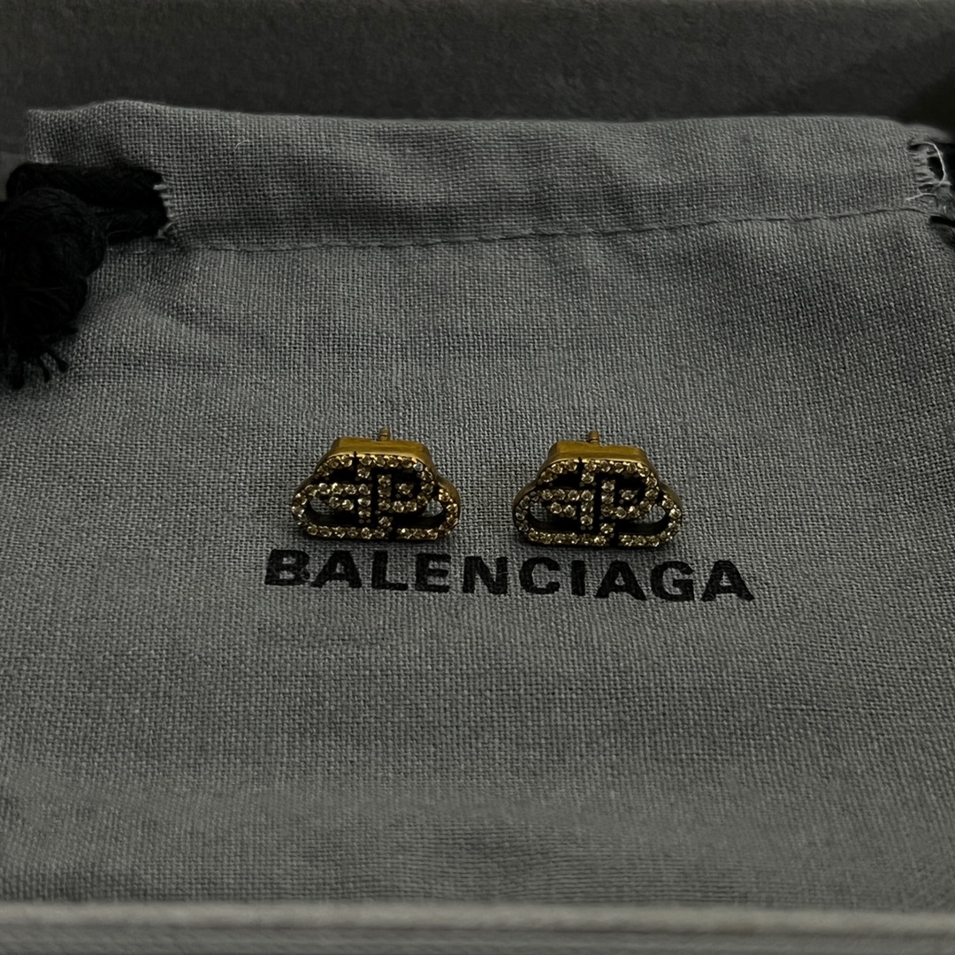 NIGO Balenciaga Women's Metal Brass Full Diamond BB Solid Color Stud Earrings Jewelry #nigo75489