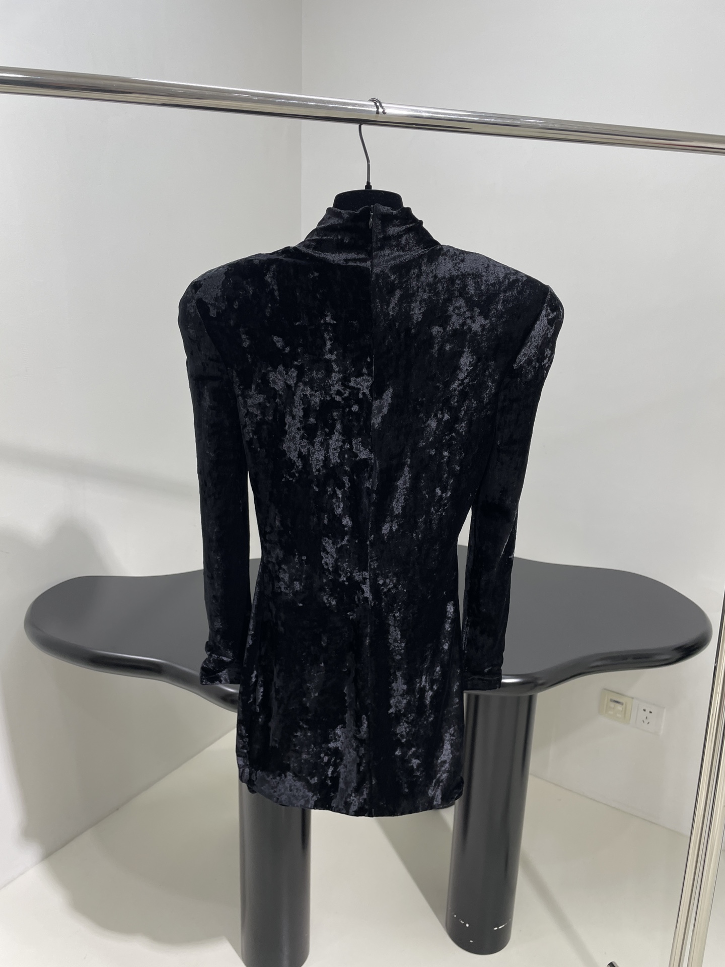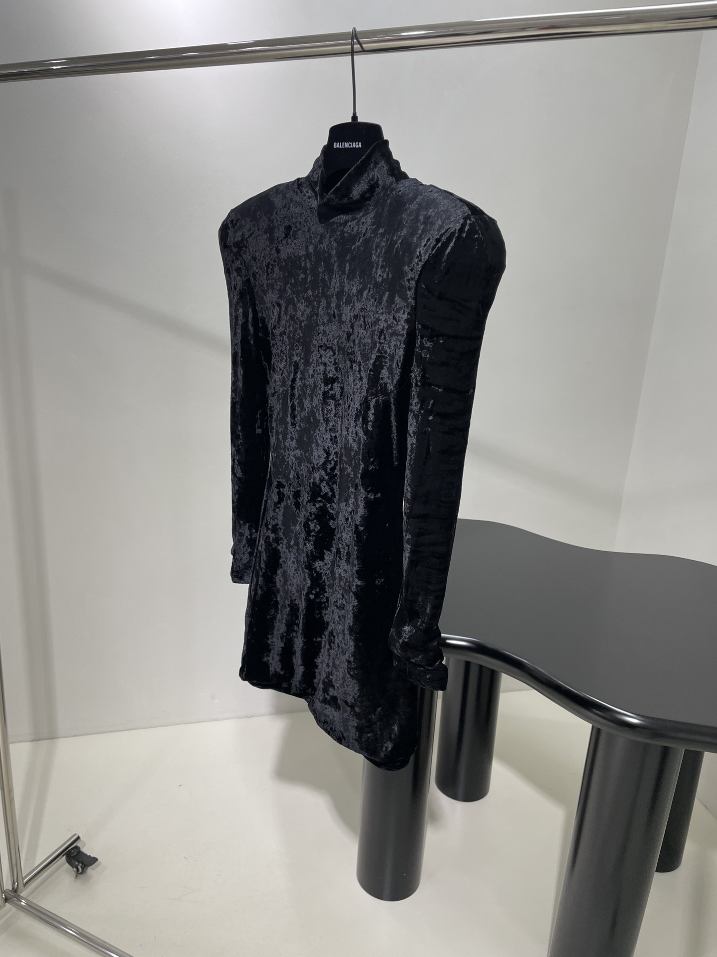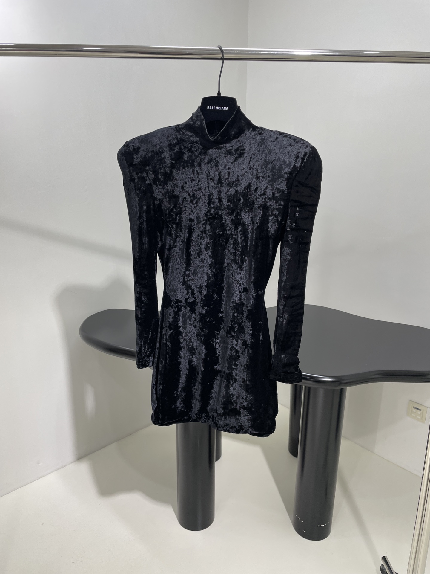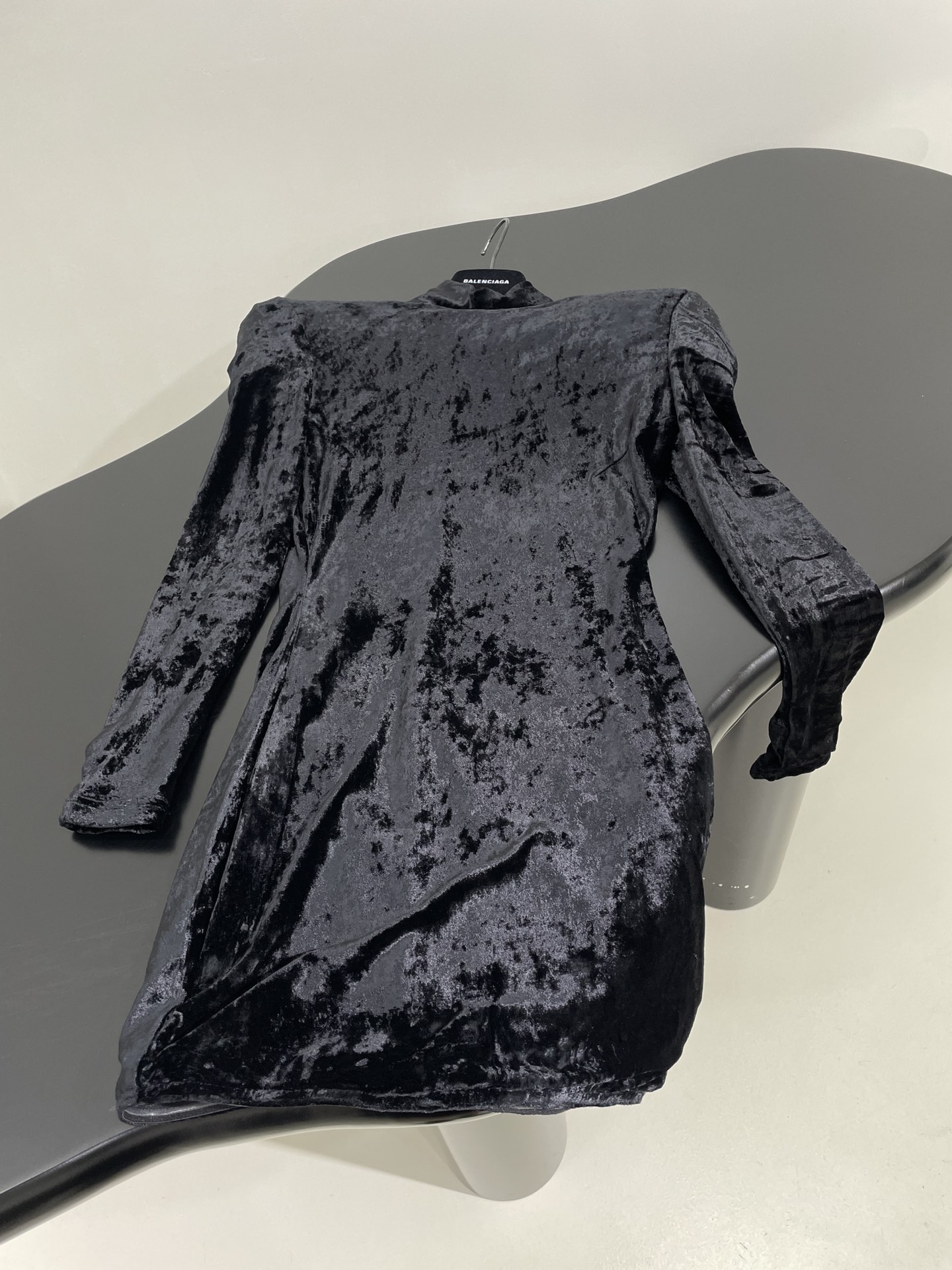 NIGO Balenciaga Women's Spring Summer Autumn Straight Solid Color Velvet High Padded Shoulder Slim Long Sleeve Dresses #nigo81186