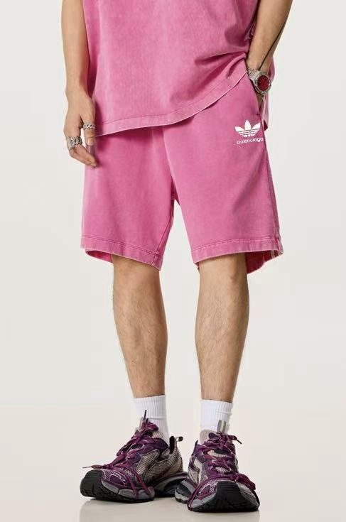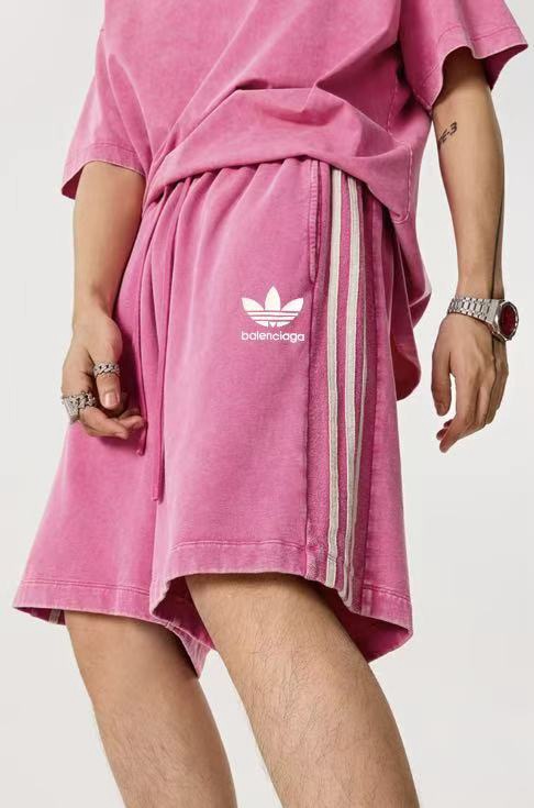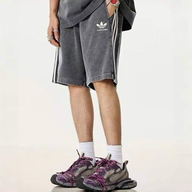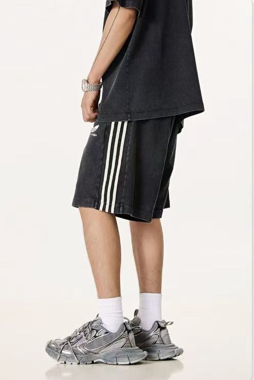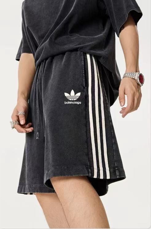 NIGO Balenciaga X Adidas Men's and Women's Summer Solid Color Stretch Waist Tie Cotton Shorts #nigo77323
