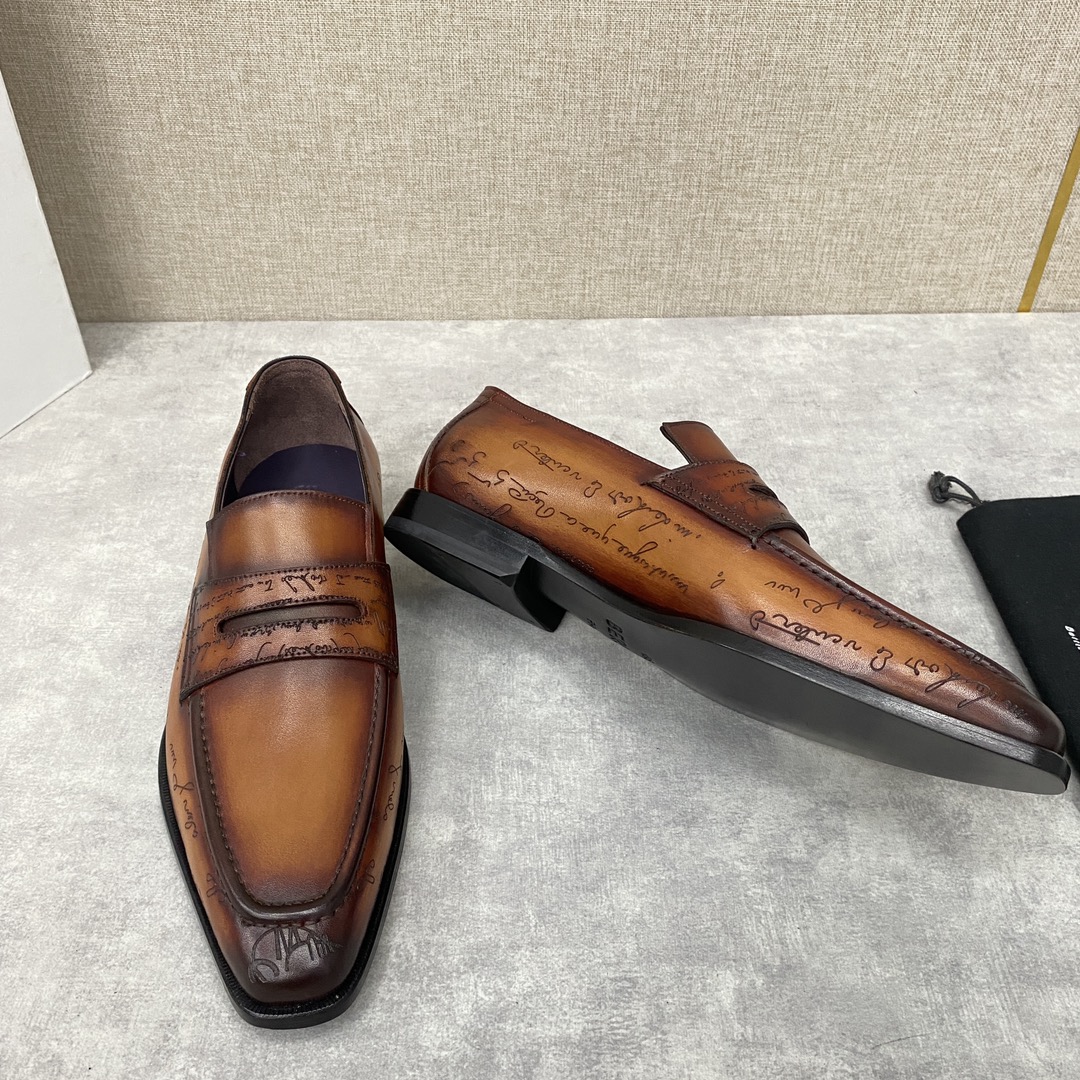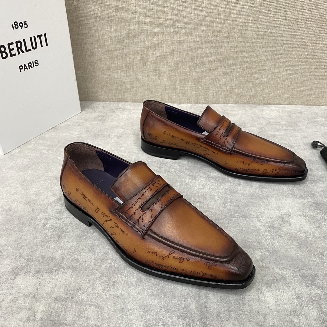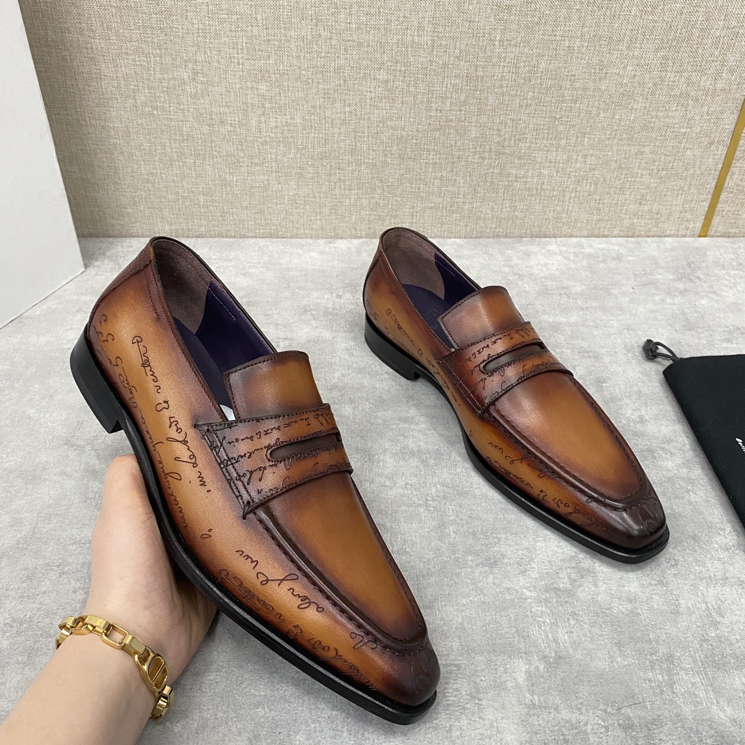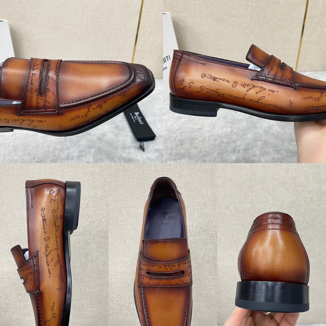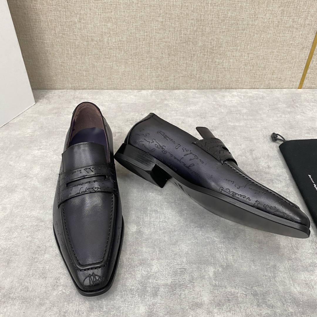 NIGO Berluti Men's Spring Summer Autumn Logo Print Fashion Andy Loafers Solid Color Leather Shoes #nigo71746