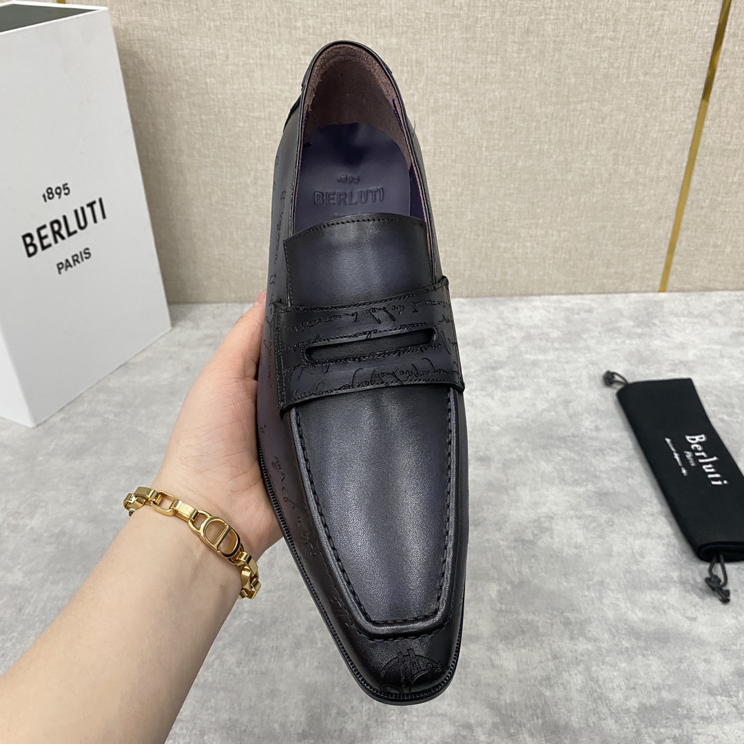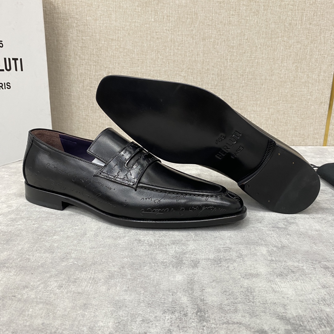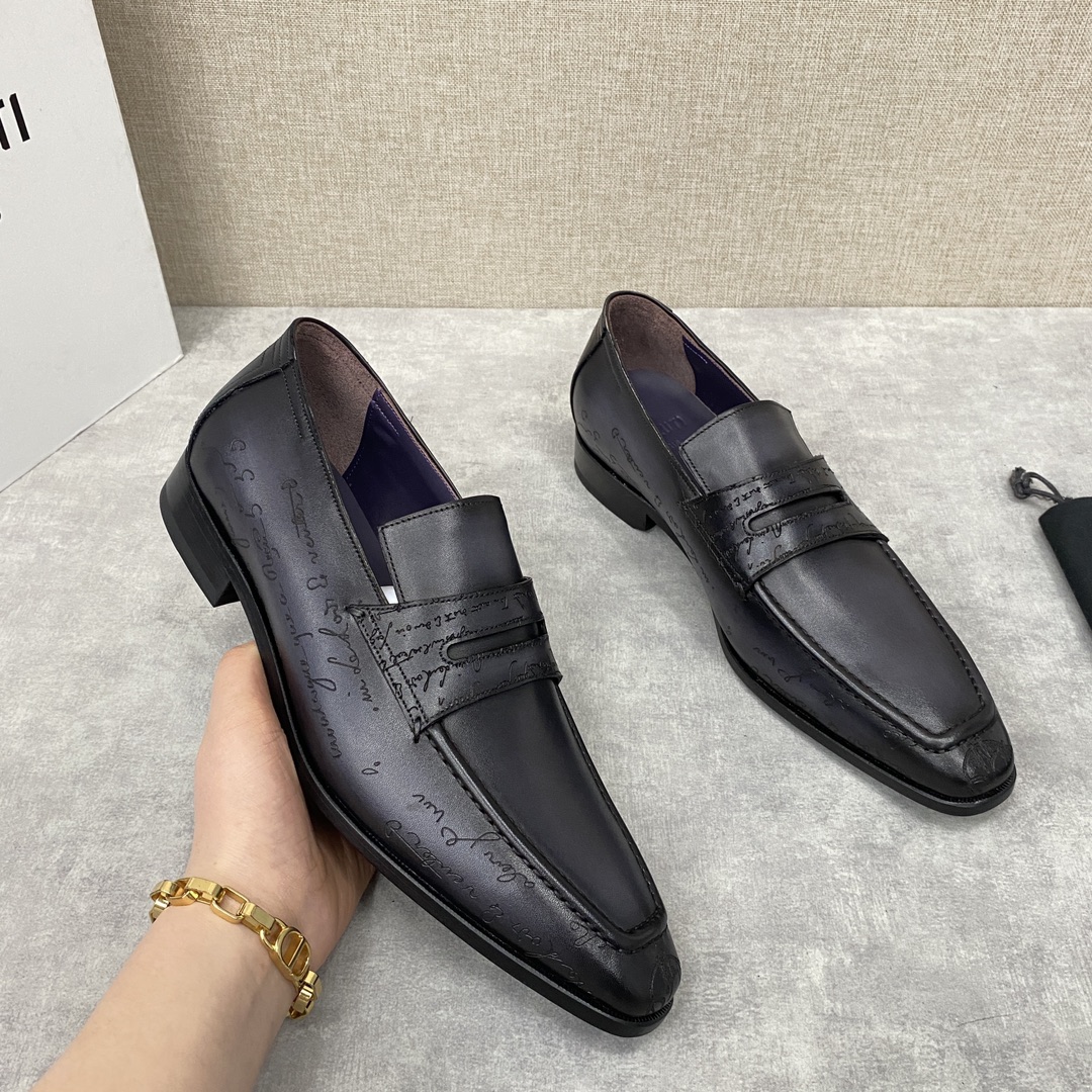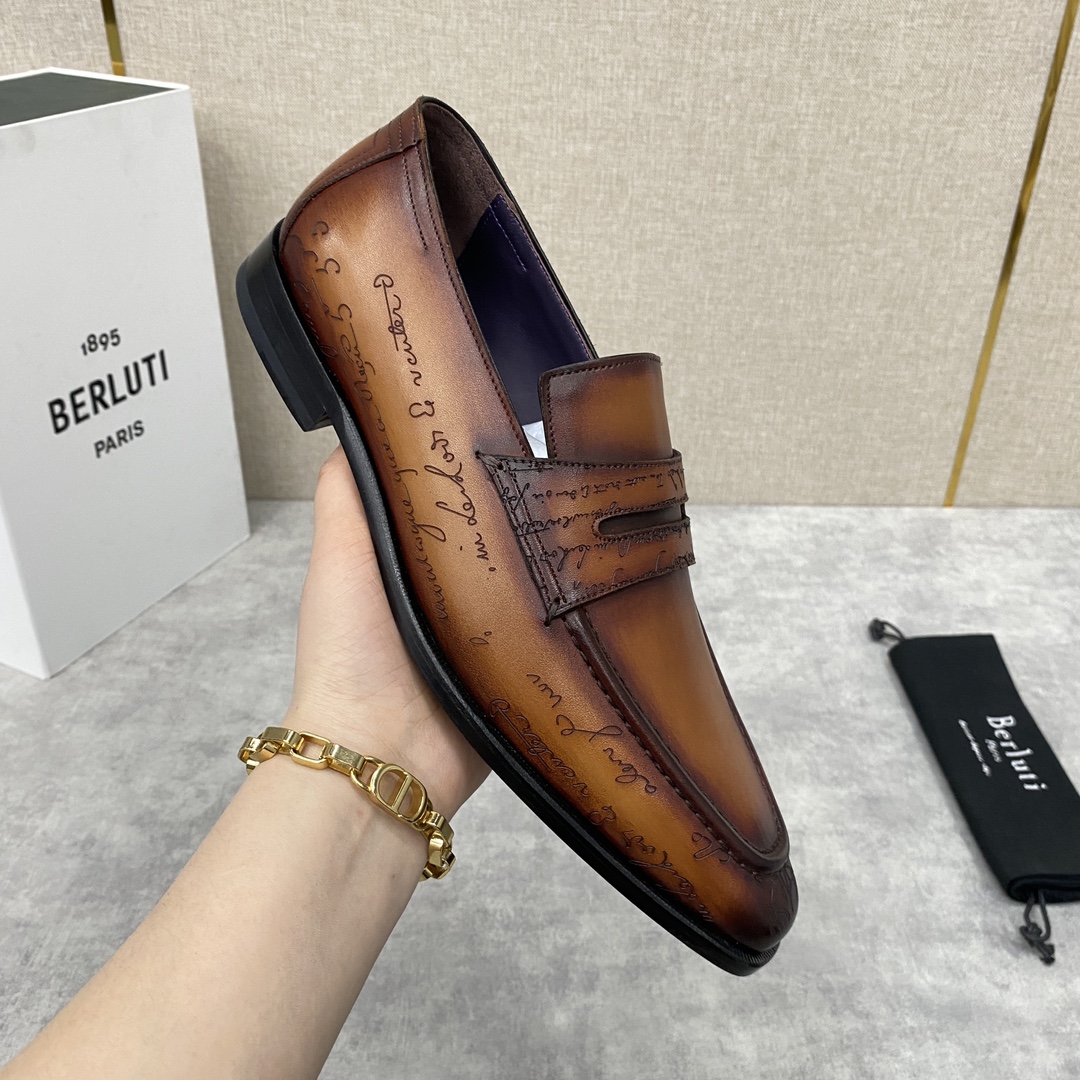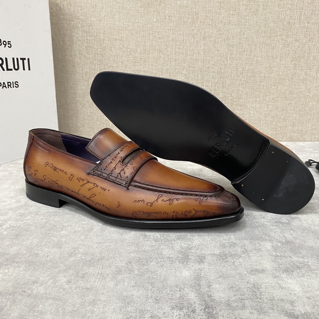 NIGO Berluti Men's Spring Summer Autumn Logo Print Fashion Andy Loafers Solid Color Leather Shoes #nigo71746
