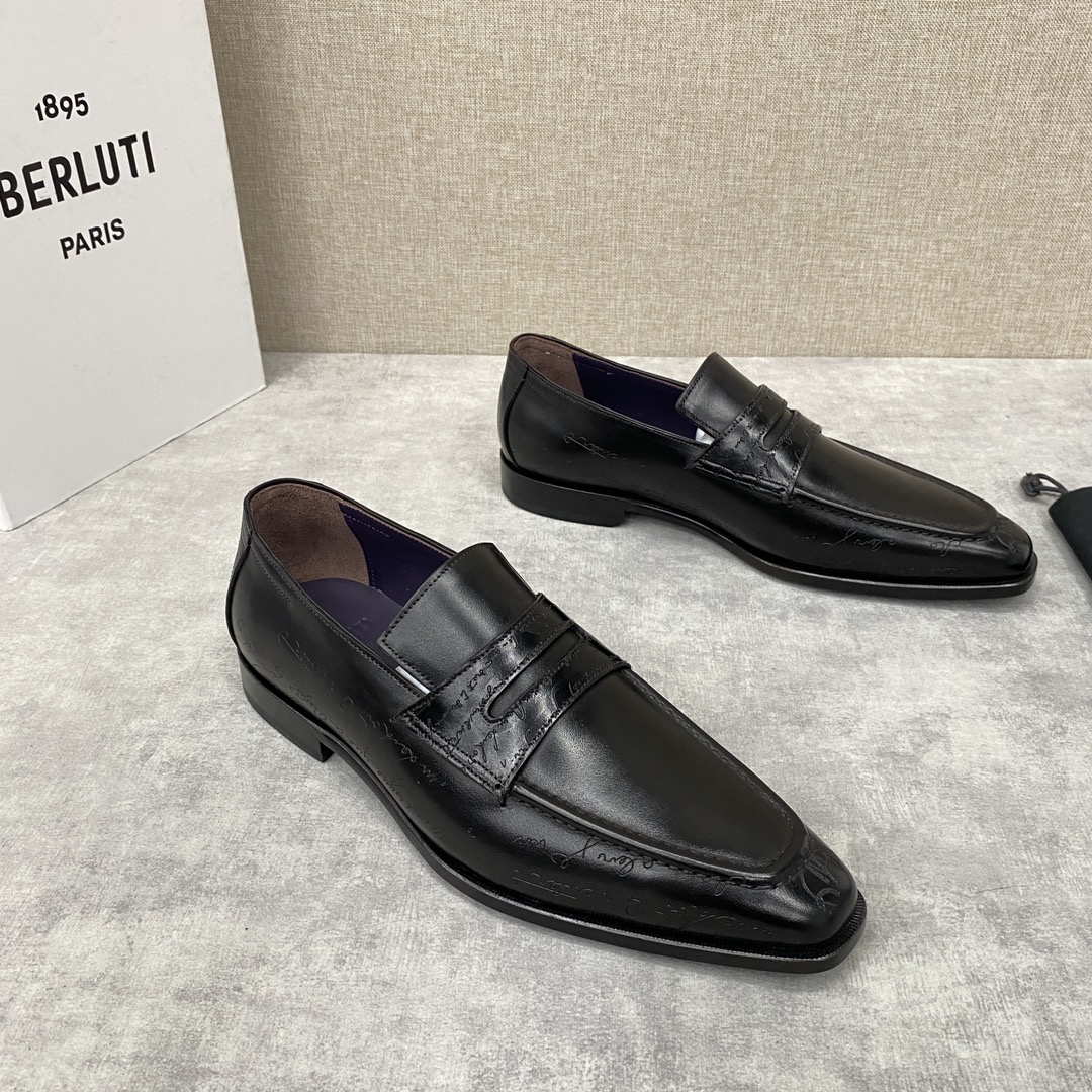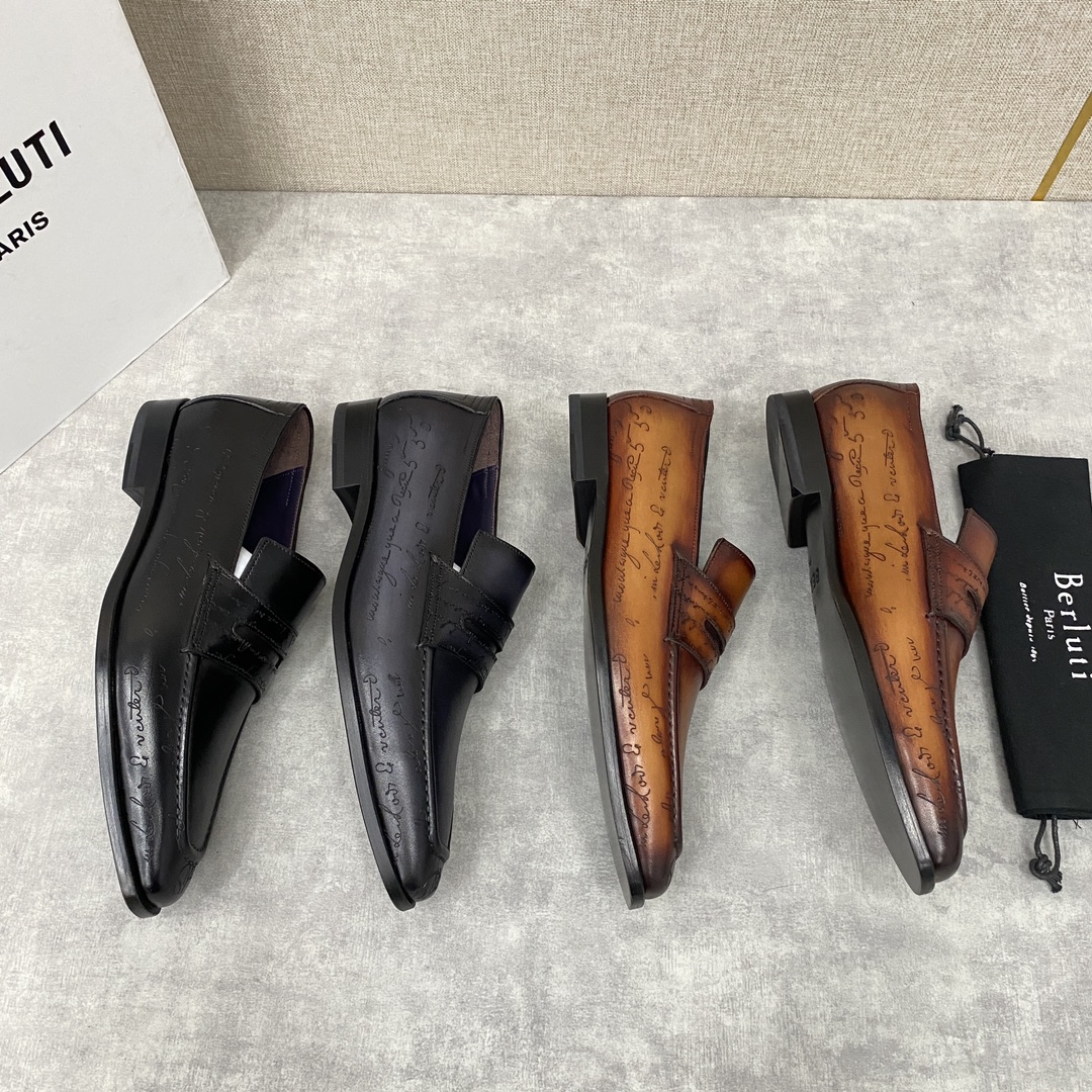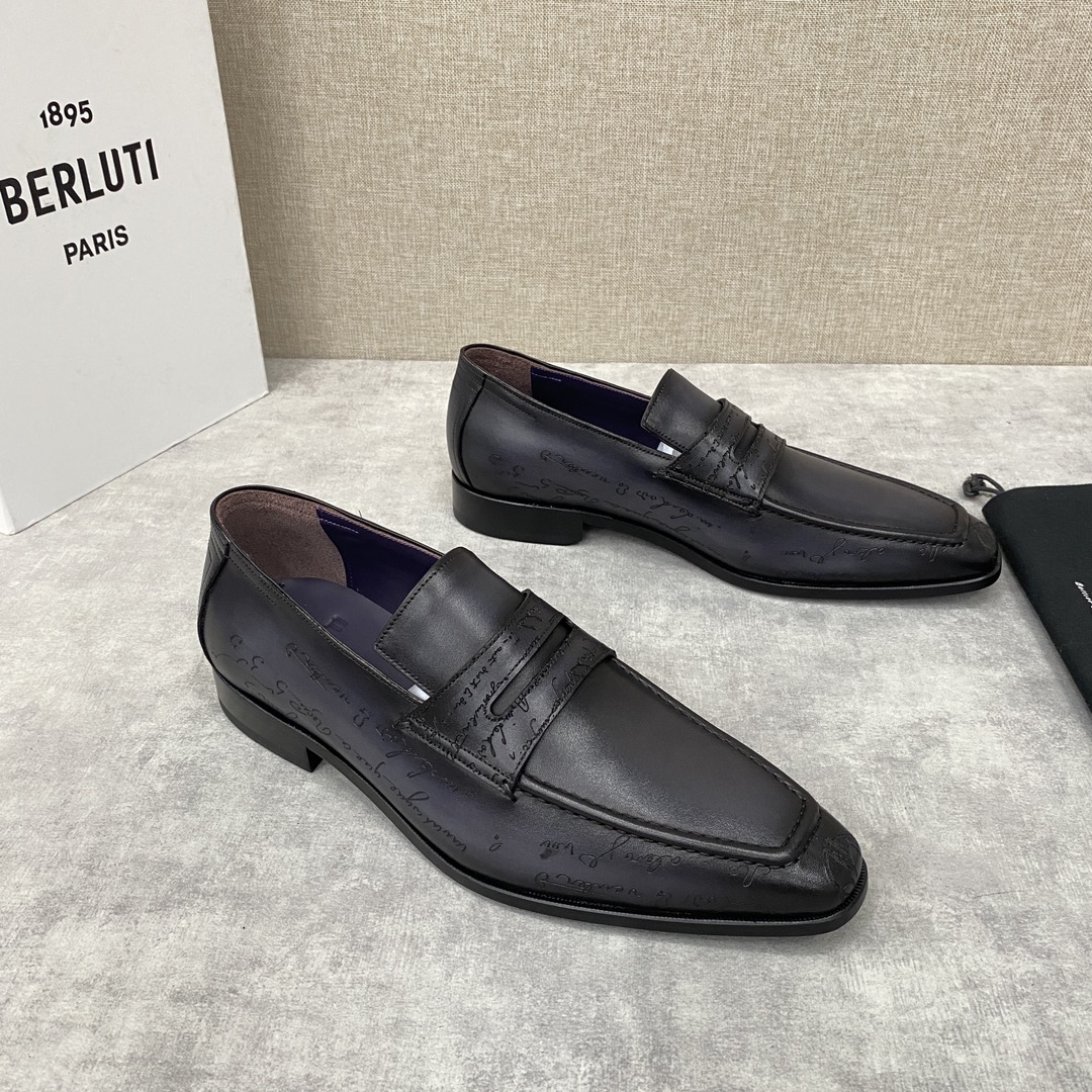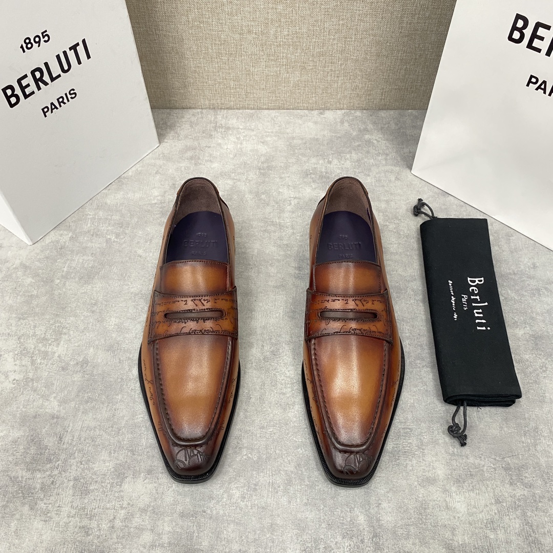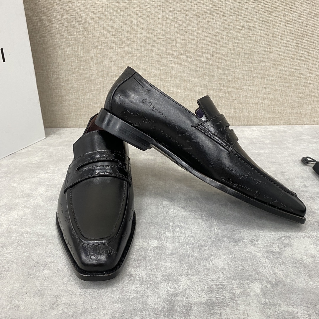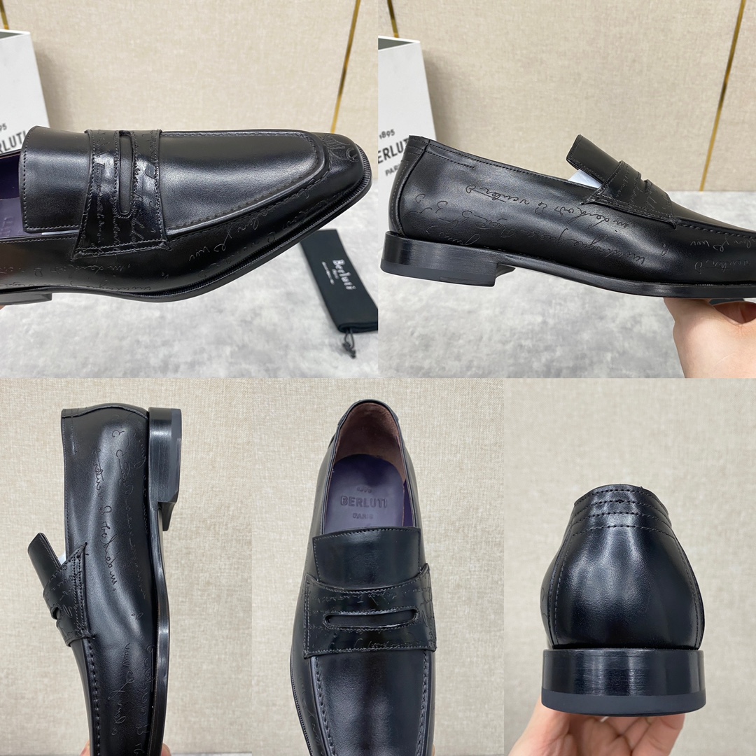NIGO Berluti Men's Spring Summer Autumn Logo Print Fashion Andy Loafers Solid Color Leather Shoes #nigo71746