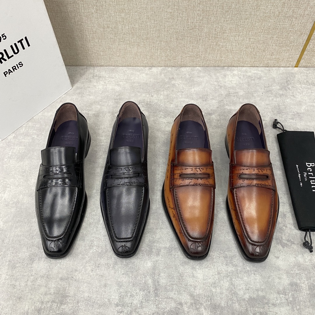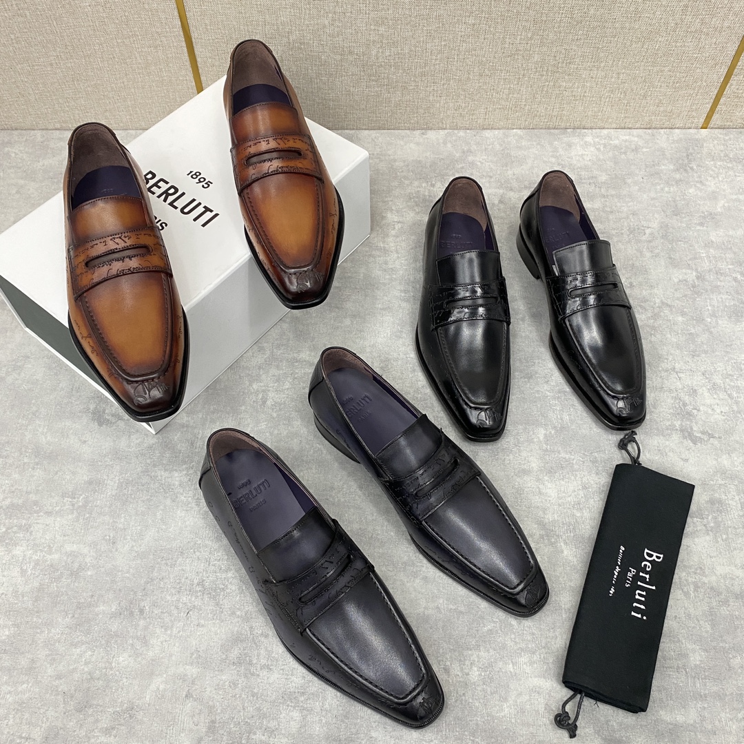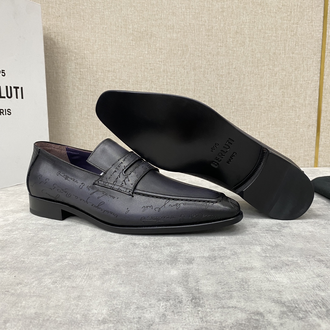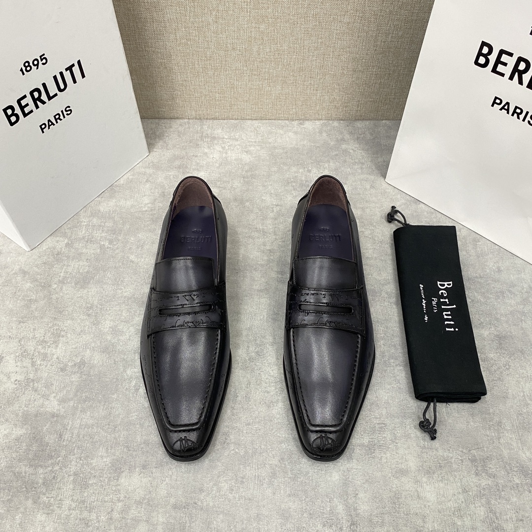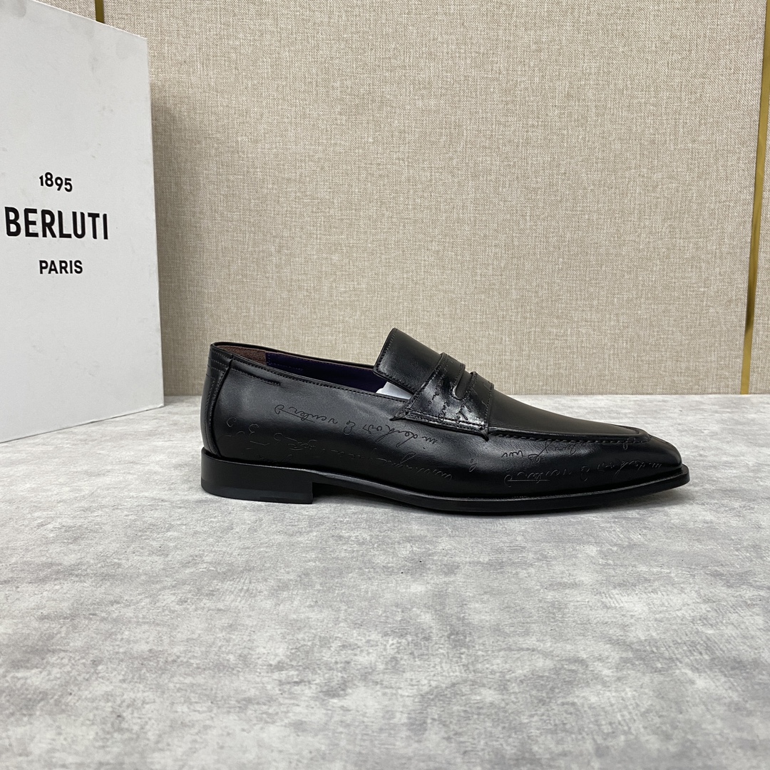 NIGO Berluti Men's Spring Summer Autumn Logo Print Fashion Andy Loafers Solid Color Leather Shoes #nigo71746