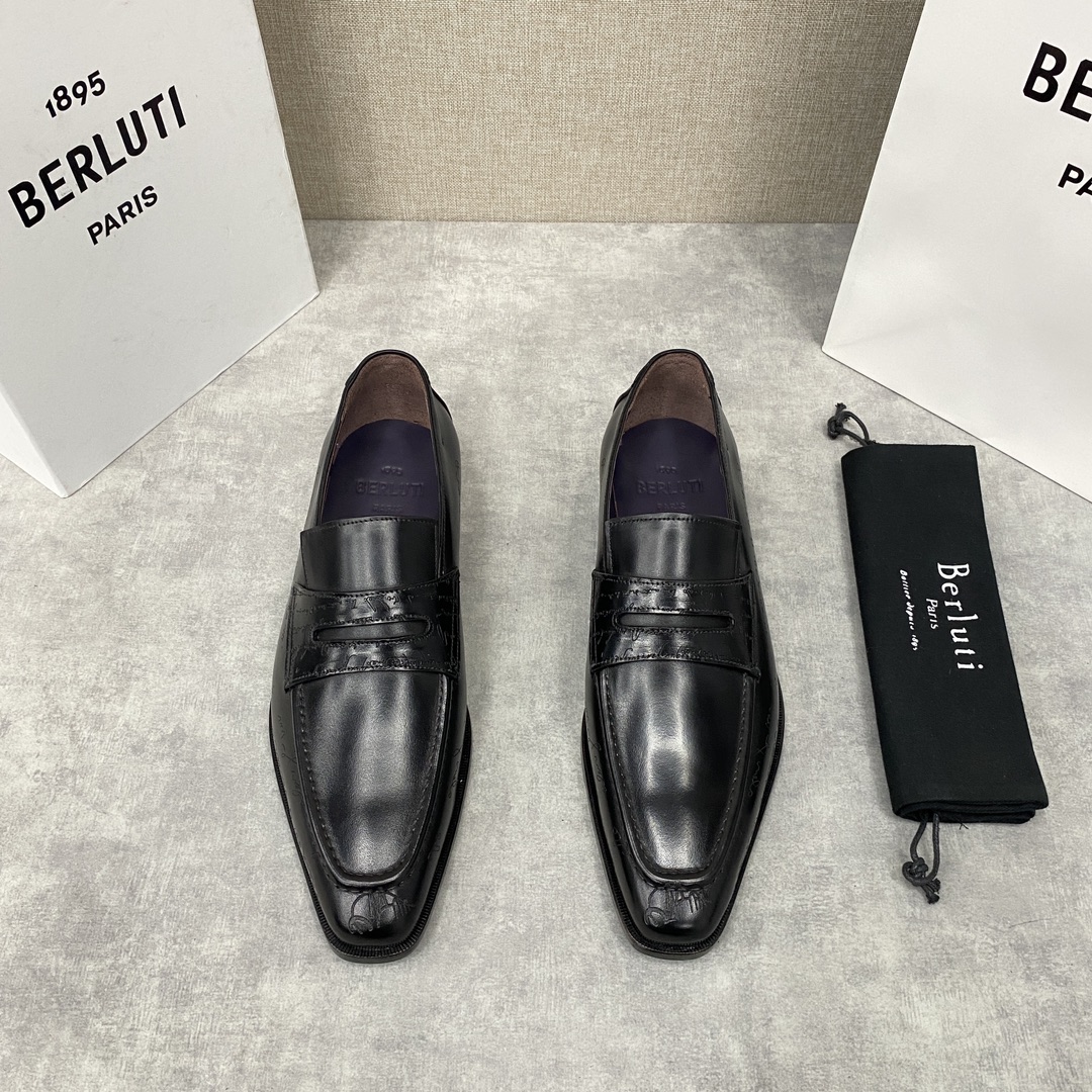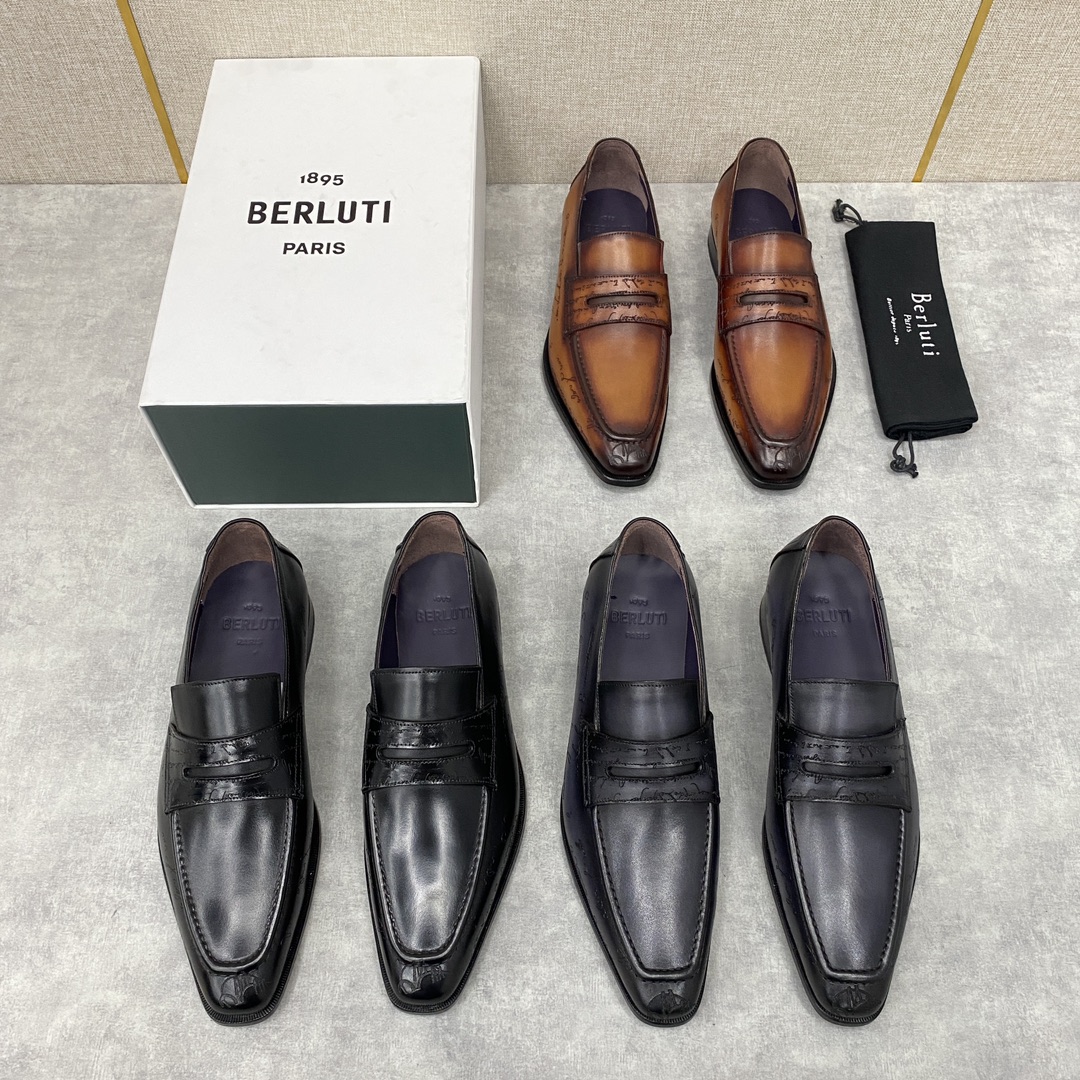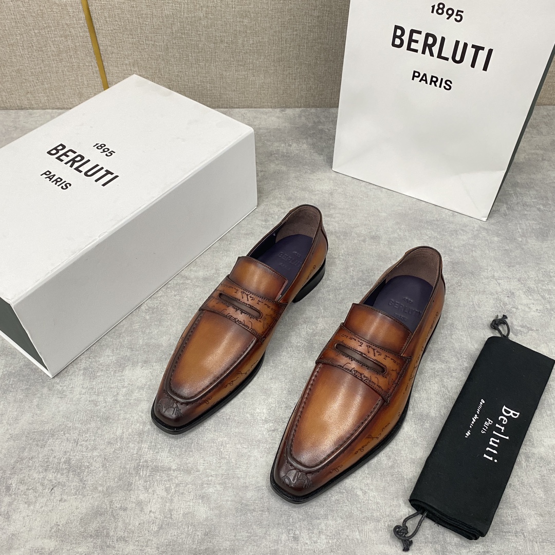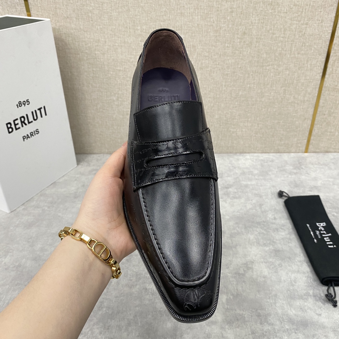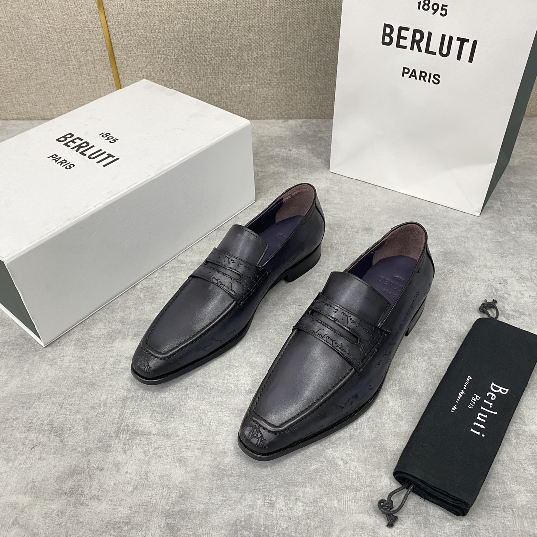 NIGO Berluti Men's Spring Summer Autumn Logo Print Fashion Andy Loafers Solid Color Leather Shoes #nigo71746