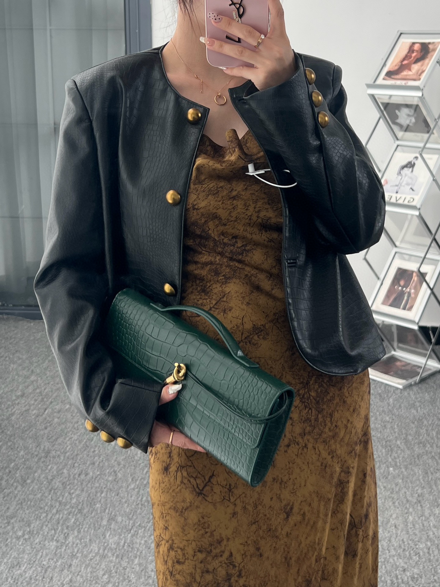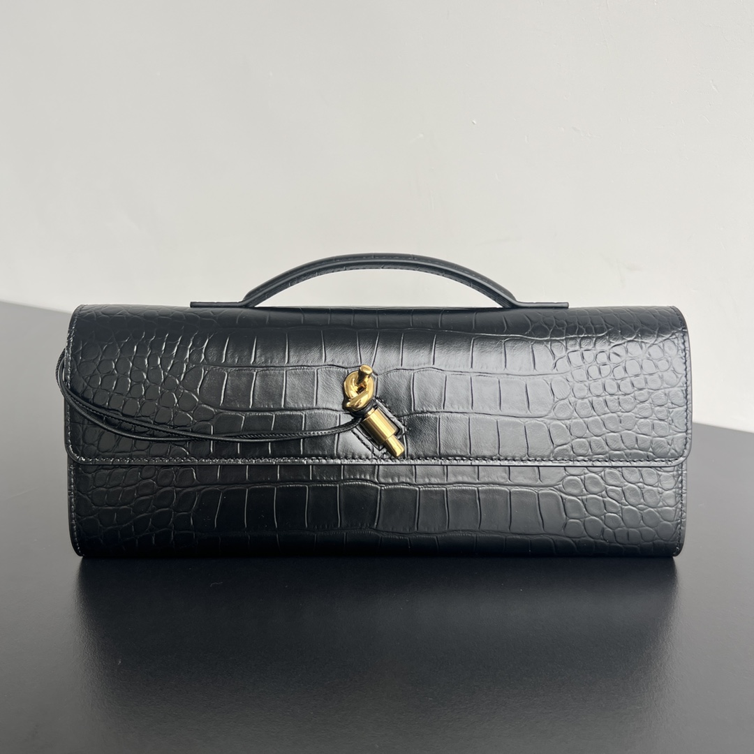 NIGO Bottega Veneta Andiamo Women's Solid Color Crocodile Leather Clutch Bag With Metal Clip Closure Bags #nigo75797